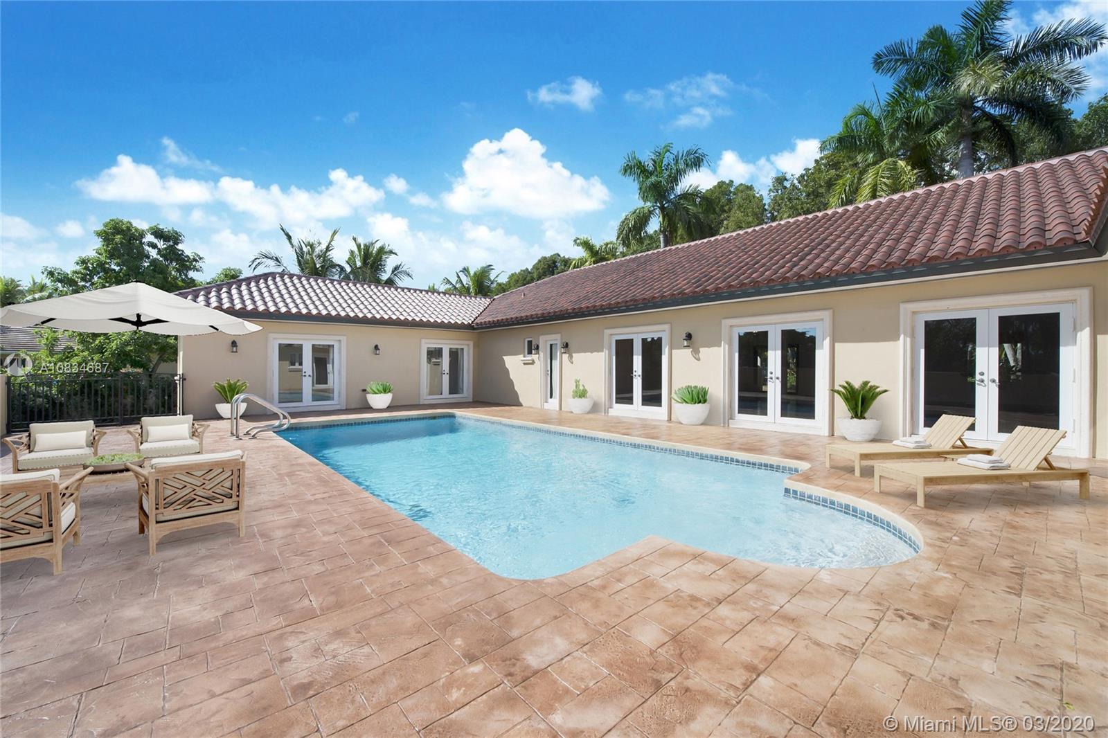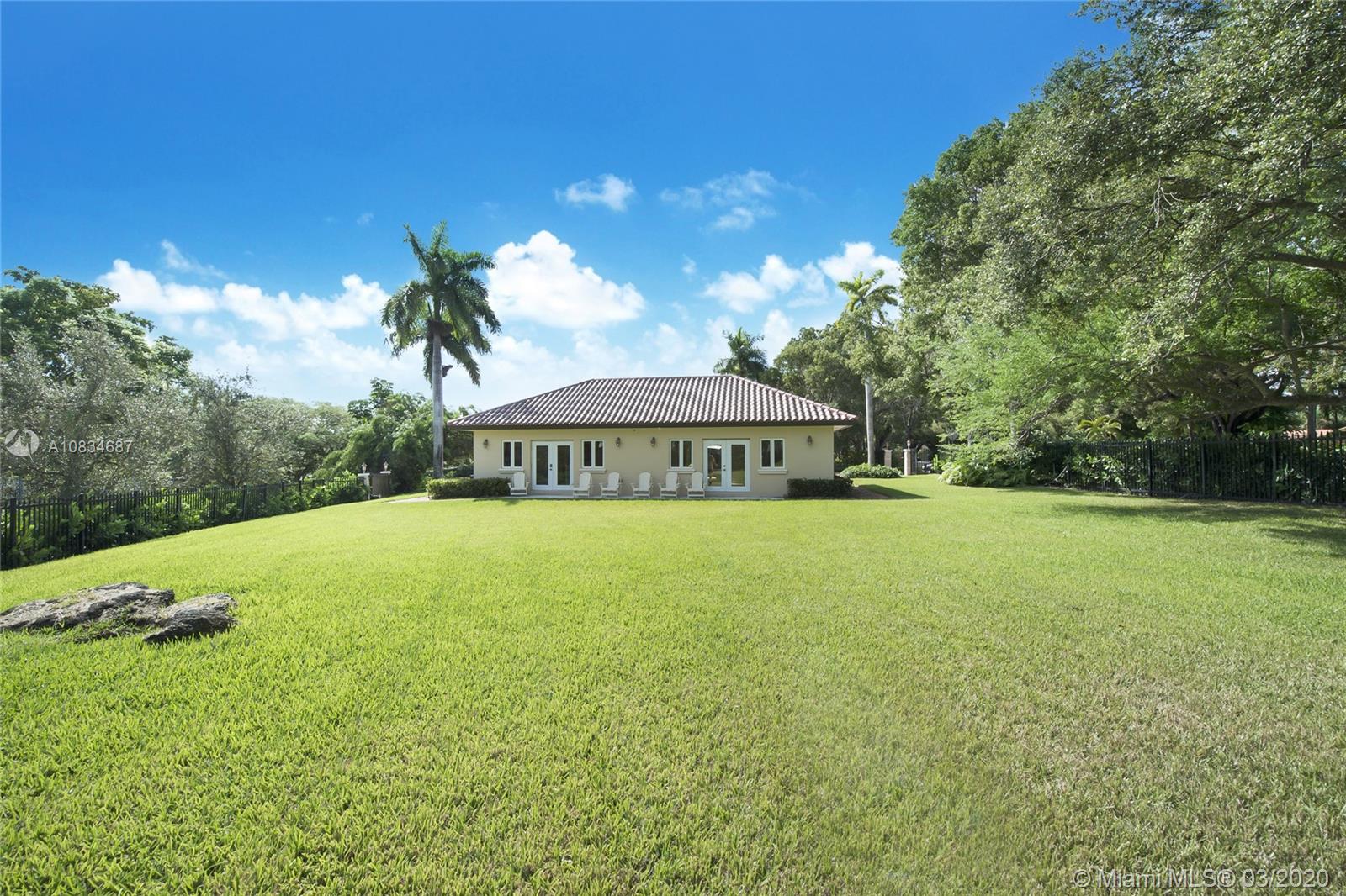 Enchanting Euro-style residence located on historic Old Cutler Rd in the Gables-by-the Sea area. Walled + gated for privacy, the home offers a split BR plan and expansive living areas. Sited on a 37,000 SF lot, it offers access from the rear road in addition to the main entry on Old Cutler. The measured openness of the interior and the significant use of windows/doors (impact) blend inside and outside living. Newly expanded/added is the 5th BR with en-suite bath + another 2-car garage. Access to this newly added area is via the heavenly loggia connecting both areas of the estate. Schools + parks are all a short distance away! No flood zone! Virtual walkthrough now available! https://my.matterport.com/show/?m=a6oUTHqiumm&brand=0