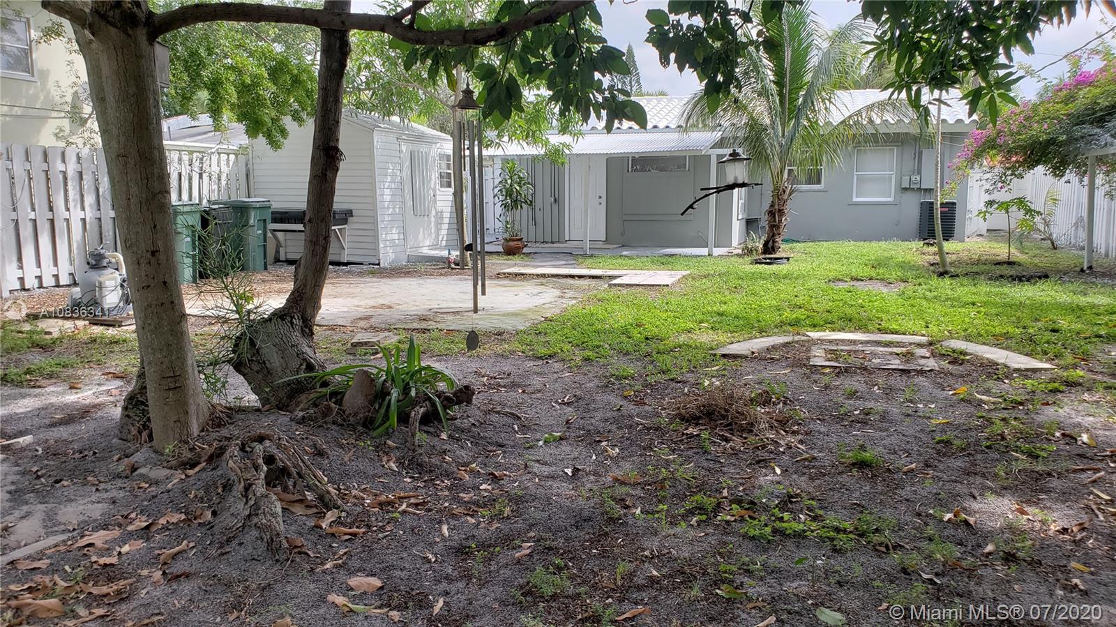 Amazing Single family with a drive way and a large back yard fenced in a desirable area. New flat roof, marble floor throughout, 2-bedroom, 1 bath and an extra room can be a office or studio facing to gorgeous huge green back yard. Huge backyard perfect to a pool or spa, has a nice fenced area and a little shed for your dog and one for your tools. Freshly painted in interiors and exteriors with bright and neutral colors. BEACH TIME no worries you're only 12 minutes away, Wal Mart Supercenter 13 minutes, Las Olas 16 minutes. Come see it....... is worth your time! Location, location, location. Ease to show, call or text Listing Broker.