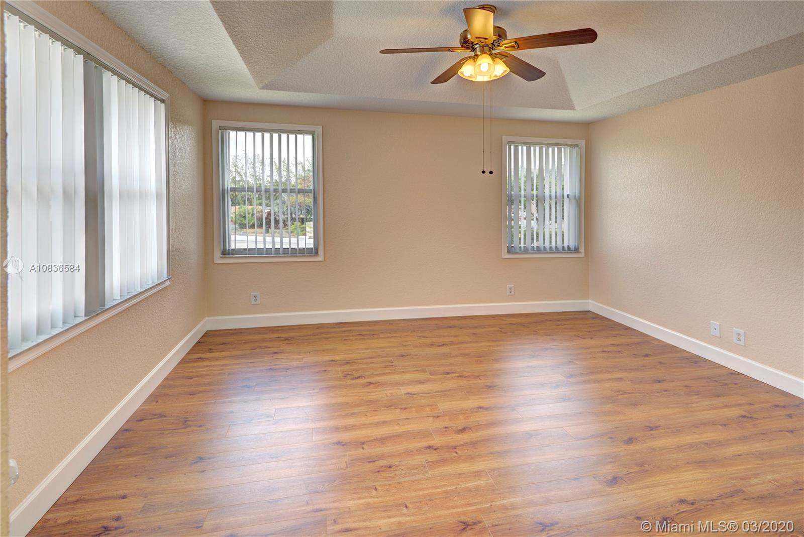 Come fall in love with this Charming 3 Bedroom 2.5 Bathroom plus large bonus 4th room. This home is immaculate & offers extraordinary value. Nestled on an over-sized lot. Inside features a bright & spacious floorplan. Large Kitchen that opens to a spacious Family Room. Sizable Master Suite with a large walk-in closet and a spacious Master Bath with jacuzzi tub and shower. The guest rooms are generous in size & there's a large den, perfect for a kid's game room or office. The backyard is Oversized with fruit trees. All of the windows & doors have Hurricane Shutters for BIG insurance savings! This home has it all and it is the Absolutely the best bang for the buck located in a great golf course community that has country club amenities!