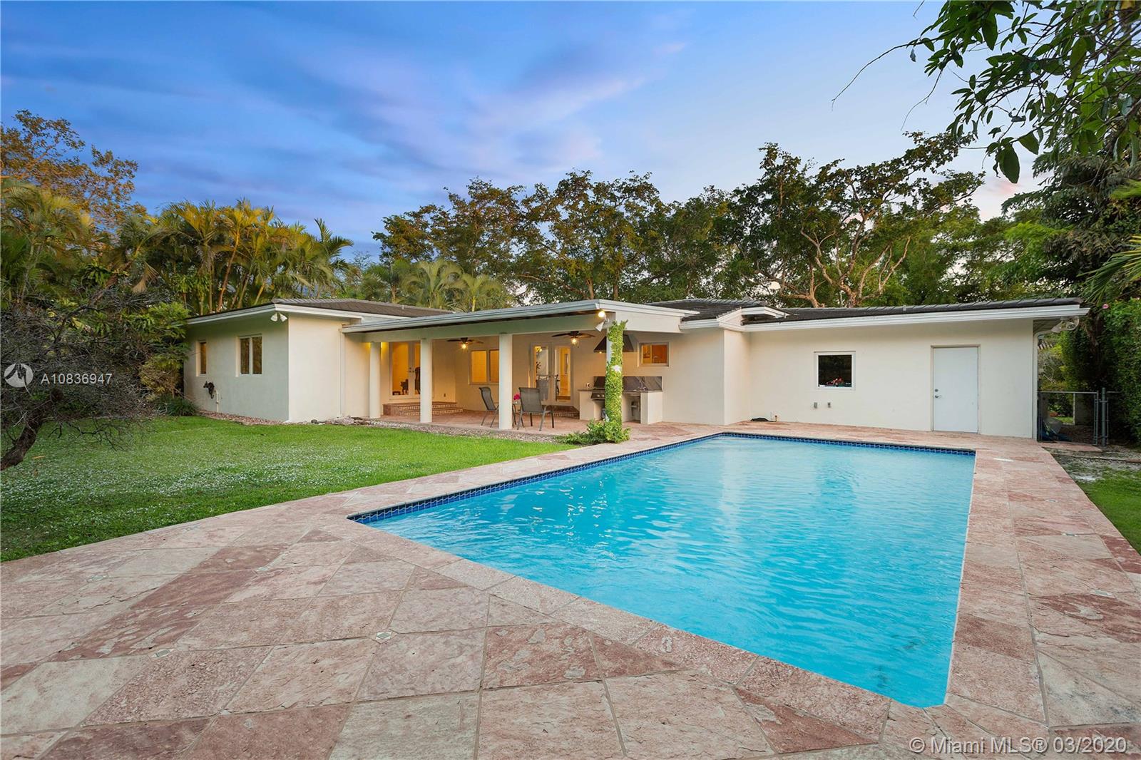 Nestled in one of the Gables beautiful tree lined streets and desired neighborhood, this 4-bedroom, 4-bath home is a beautiful South Gables sanctuary. Set on a 12,500 sq.ft. lot, it has a large kitchen with a generous work station that could be converted to a breakfast nook. It boasts a large master suite and en suite. It has impact windows and doors, beautiful wood floors complemented by Terracotta floors in the dining room... it has a large back yard with a generous, newly refinished pool and private covered patio and BBQ area, a two car garage and a beautifully landscaped entrance. 5 minutes to Downtown Coconut Grove, South Miami and Merrick Park. This is a great place to live