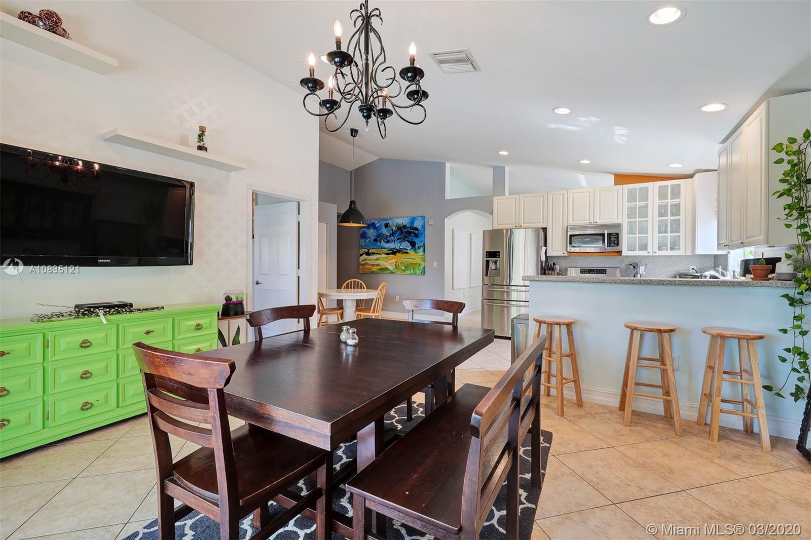 Gorgeous pool home in Pembroke Falls, vaulted ceilings, open floor plan, plenty of natural light, wide-open kitchen overlooking a large Family Room and the pool area. Gas stove, Split bedroom plan, Great size Master bedroom with vaulted ceilings and newer Porcelain flooring, walk-in closet, beautifully remodeled master bath, covered patio, a sparkling pool, and a private backyard. Accordion shutters throughout.