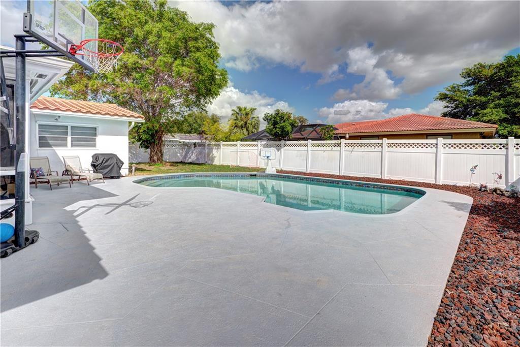 This beautiful single family home is a must see! This home has it all!! Barrel title Roof is only 5 years old, Shutters for every window, all doors hurricane impact including new garage door. Ac 2017, new pool pump, stainless steel appliances and flooring.