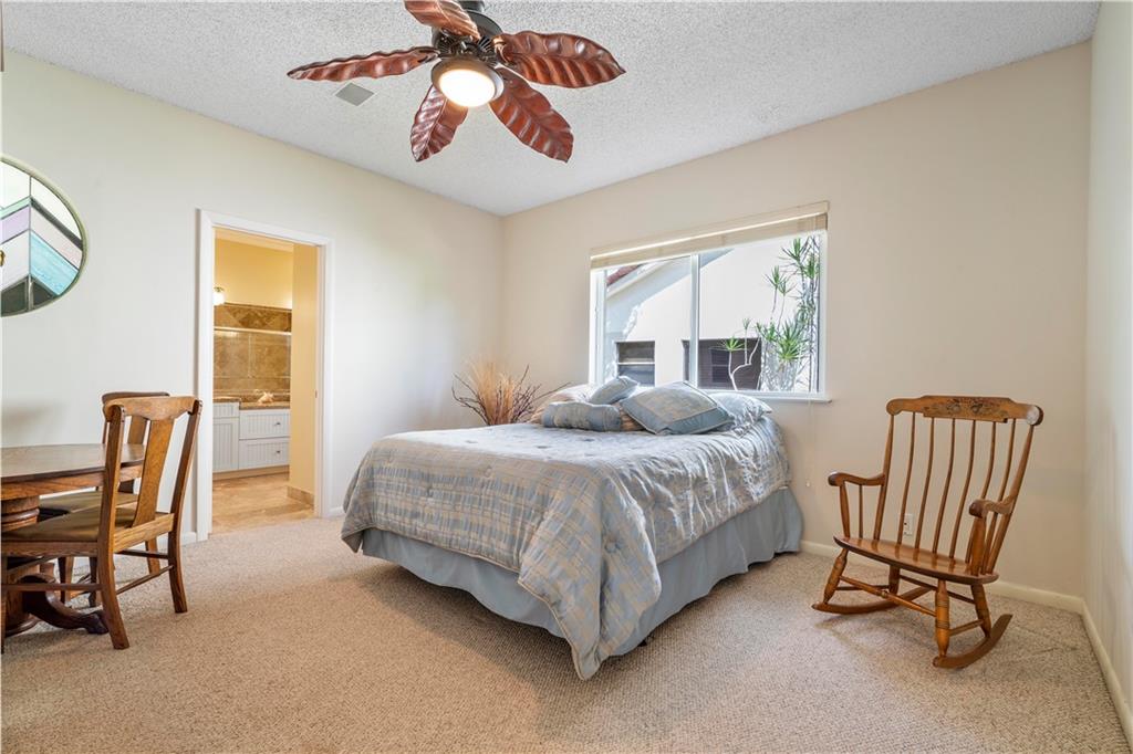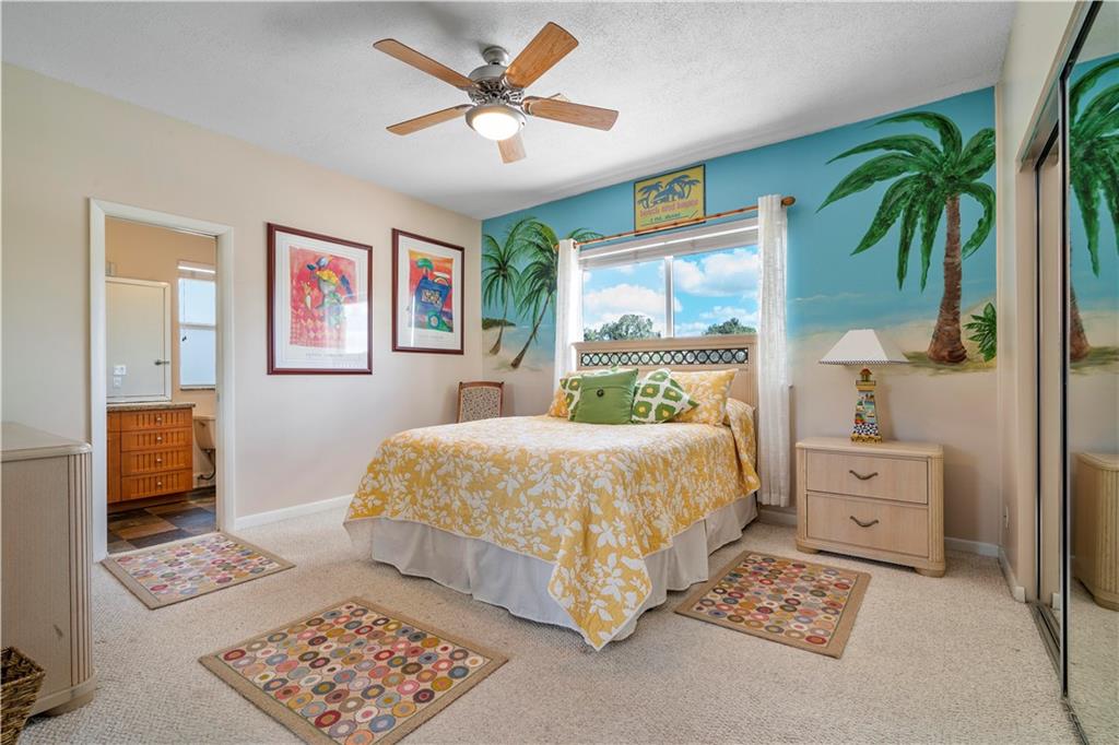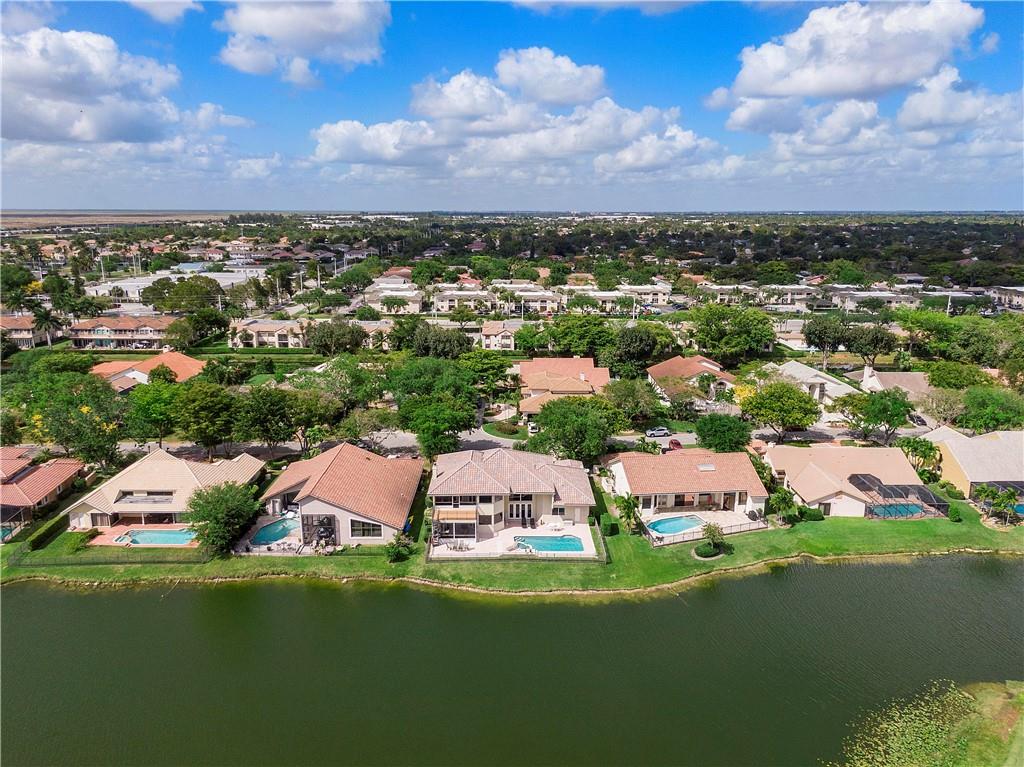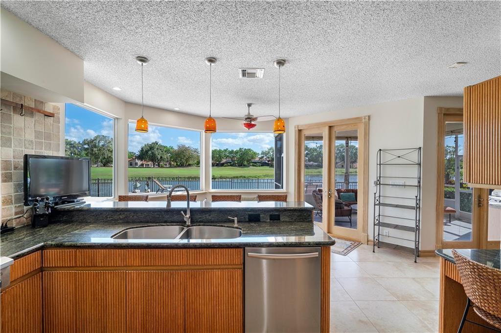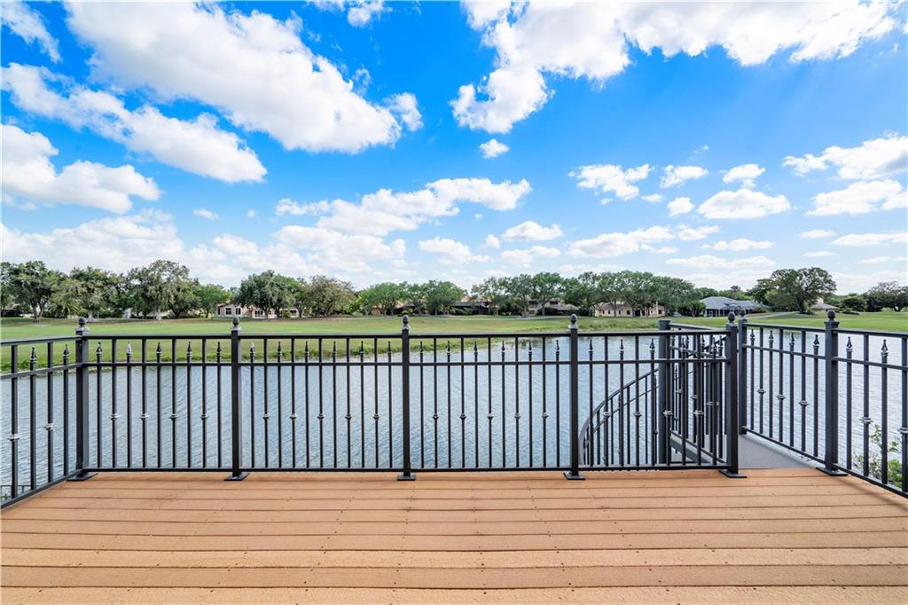 Spectacular 5 Bed 3 full and 2 half bath custom home on wide waterfront lot with panoramic golf course views. Rolling greens and flowing waterway provides million dollar views from living areas, pool, over sized patio and 2nd floor balcony. Chef's Kitchen has granite counters, stainless steel appliances including, 4 Burner Gas Cook-top, side by side refrigerator and more!! All Impact Windows and Doors! (Except 3 Windows in Front). Interior freshly painted. All bathrooms remodeled. Spacious family room with custom entertainment style wet-bar. Gorgeous bamboo wood and lucite staircase to 2nd Floor master suite & large sitting room. Built in closet systems. Neutral marble,bamboo wood and tile floors. Huge circular drive, 3-Car Garage,3-zone A/C. Security & central vac systems.