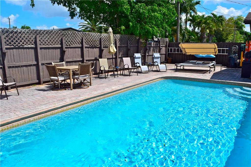Beautiful remodeled pool home offering open floor plan. The amazing home features an updated & expanded kitchen w/granite countertops, center island/bar top, newer appliances including gas stove, lots of counter & cabinets space & wine rack. Tile throughout living areas w/ wood/laminate flooring in bedrooms. Knockdown textured walls & ceilings (no popcorn). Crown molding. Master bedroom features custom walk-in closet w/ remodeled master bath. This home also features a private backyard paradise offering sparkling pool w/ expanded paver pool deck great from entertaining or relaxing pool side. All impact doors throughout including 3 sets of french doors (no sliders) + accordion hurricane shutter. Other great features included pavered circular driveway & custom block wall. A must see. No HOA