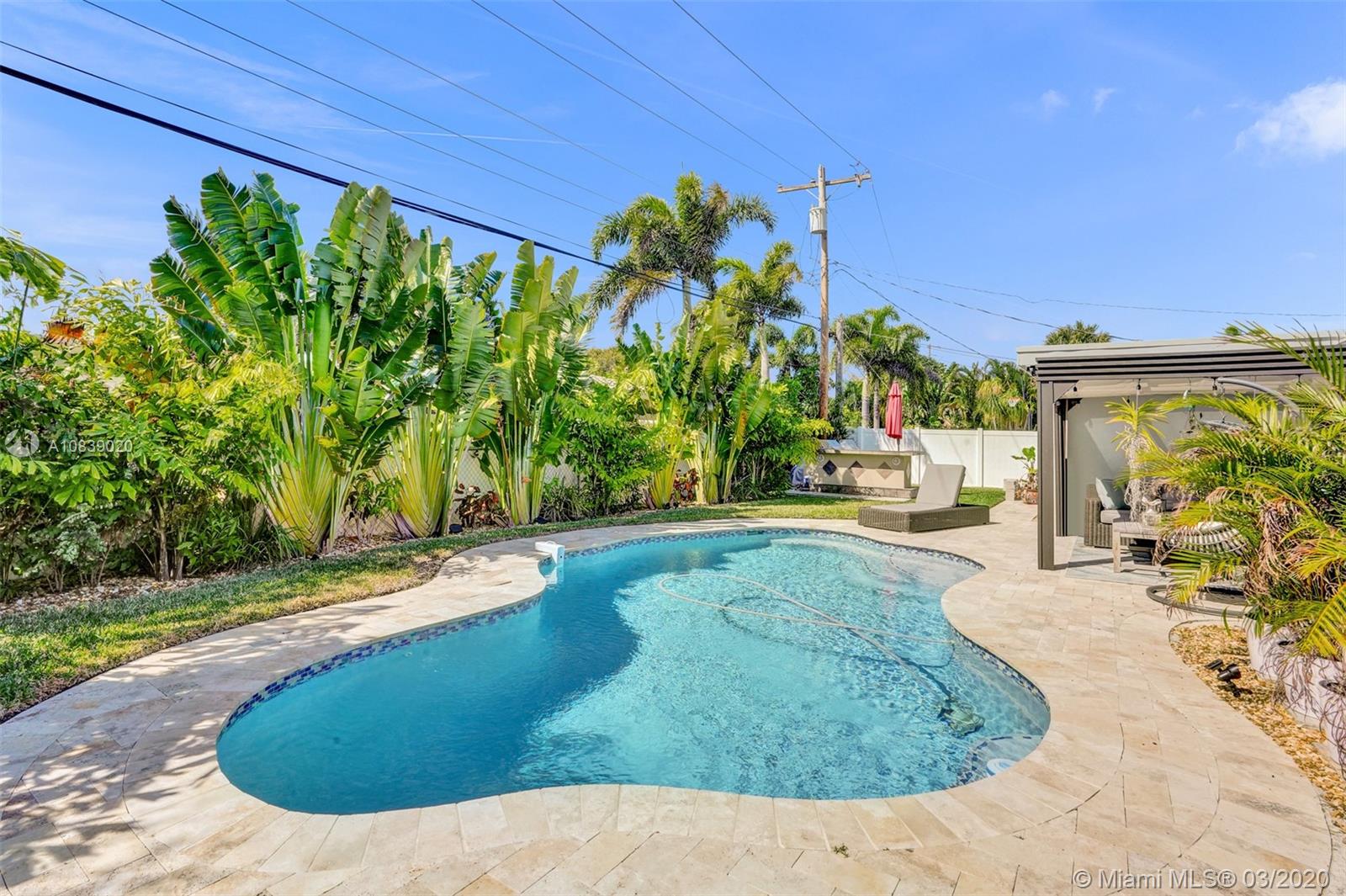 TENDER, LOVING CARE. Are you looking for a move-in ready home? Imperial Point is insulated w/ great neighbors, quiet streets & sidewalks perfect for evening strolls or walking the dog. This home has been tastefully updated: New Impact windows, elegant high-end kitchen remodel, new custom tile floors by Floors w/ Distinction and a barrel tile roof. This home has a fantastic amount of storage: full pantry/ laundry, carport & guest-storage closet. The 3rd bedroom was opened & converted to a full sized rear-living area w/ large impact slider & walk-in closet. The backyard is priceless. New free-form pool w/ infinity edge pavers. Fully operational summer kitchen for entertaining & a covered pergola for unwinding after a long day. You're home away from home. (virtual/ facetime tours available)
