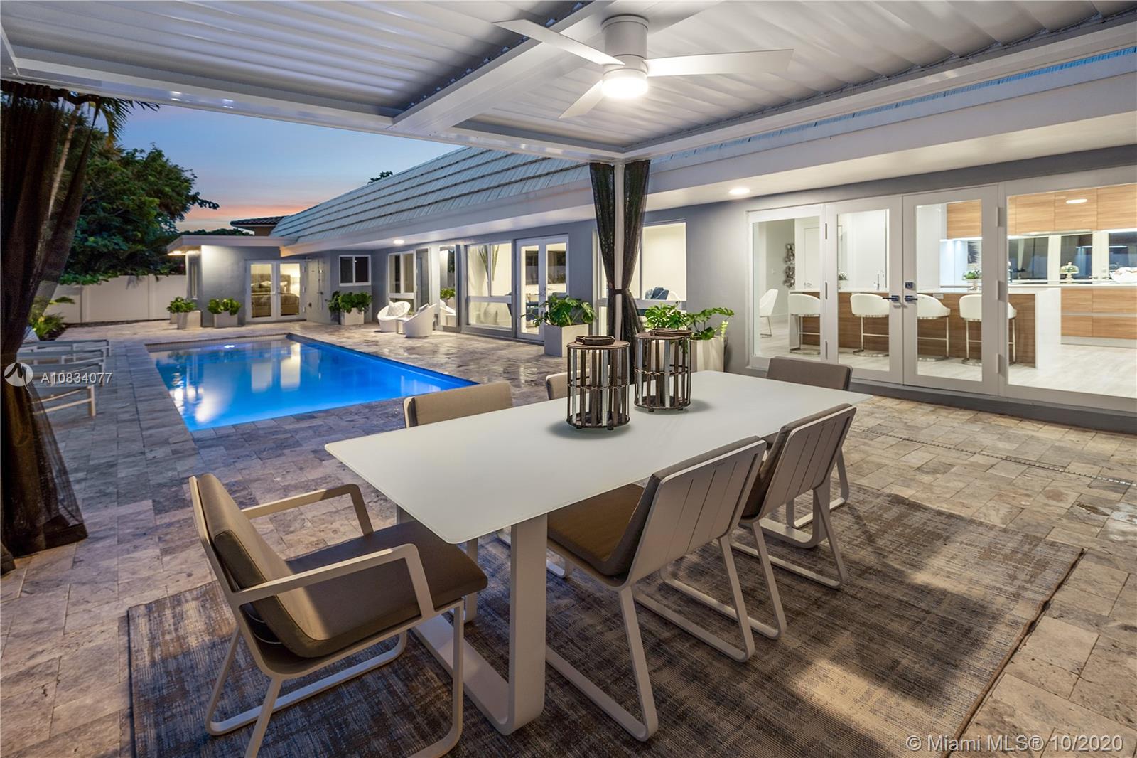 Stunning Hamptons beach contemporary in prestigious Harbor Beach – space and privacy to get away from it all. Less than 500 meters from the ocean, a short walk puts your feet in the sand at the neighborhood-only private beach club. The 4 bdrm 4.5 bath, new to-the-studs renovation, features TWO large master suites and en-suite bath and custom closets in ALL bdrms. Open-plan gourmet kitchen is adorned with appliances by Fisher&Paykel, Wolf, and Sub-Zero. Private outdoor area features heated salt-water pool, outdoor shower, electric louvered pergola, and 7+ft. grill island. 600+sqft garage w/AC for all your toys. Unique double-layered roof newly coated for energy efficiency. Upgrades also incl: new plumbing/electric, hurricane windows. Neighborhood marina slips available.