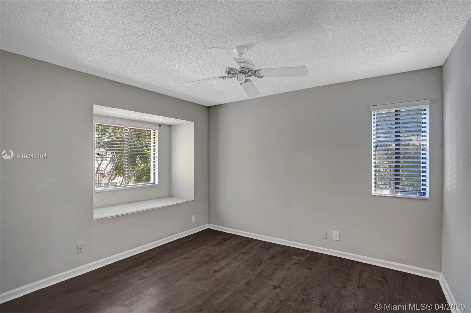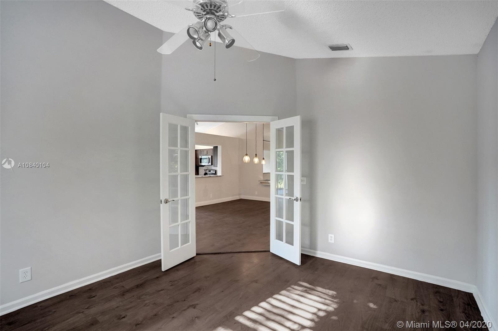 PRICE TO SELL! MOVE-IN READY, Corner updated 3 bedrooms, 2 bath coach home with 1 car garage located in the desirable area of Plantation. The unit boasts vaulted ceilings with open large floor plan, lots of natural light, and wood floors throughout. Updated stunning modern kitchen cabinetry with quartz countertops. Modern plantation shutters in the living & kitchen area. The vast living area opens up to a balcony with a water view that connects the master suite with his and hers walk-in closets. The 2nd bedroom has beautiful double french doors & can be an office or a den. The second bathroom updated with quartz countertop vanity and exquisite marble shower tile. The square footage was taken from Condo association docs which differ from the Broward County tax roll. New AC