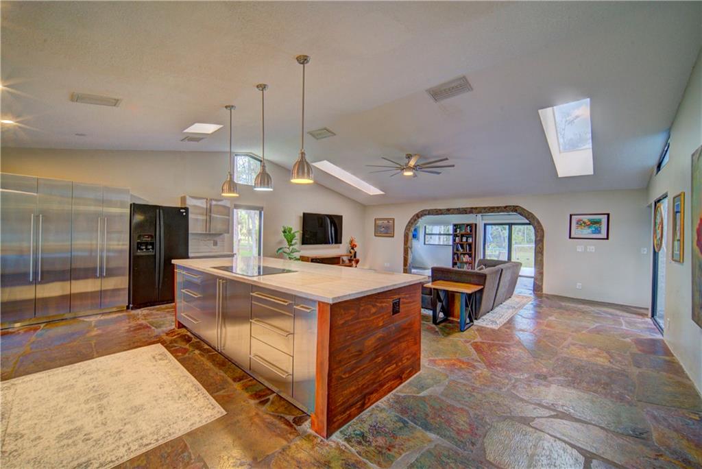 LOWEST Priced Pine Tree Estates Home For Sale! Tropical Oasis Awaits You & Your Family! Totally Remodeled Home w/Over $190,000 In Upgrades Including Newer Roof & Impact Windows & Doors, Spacious Kitchen w/Stainless Steel Cabinets, Granite Countertops, Huge Island, Custom Slate Floors Throughout, Both Updated Baths, Oversized Private Fenced-In 1.07 Acre Lot w/50 Tropical Fruit Trees, Custom New Front Door, Updated Landscaping, Room For Pool, Lots Of Natural Light w/Atrium & Skylights, Upgraded Addition Of Dining Room & Entryway, Newer Septic Drain Field, Expanded Back Patio Area Perfect For Entertaining! No Homeowner's Association, Perfect For RV & Boats, Calm & Serene Home Feels Like Nature Is Inside & Out, 2-Car Garage, Updated A/C Unit & Light Fixtures, Could Be A Self-Sustaining Home!