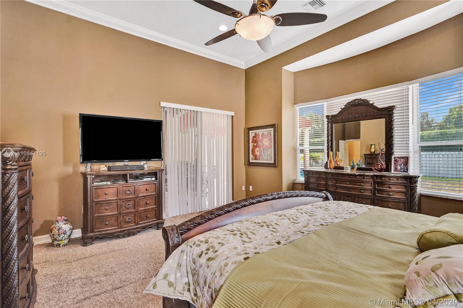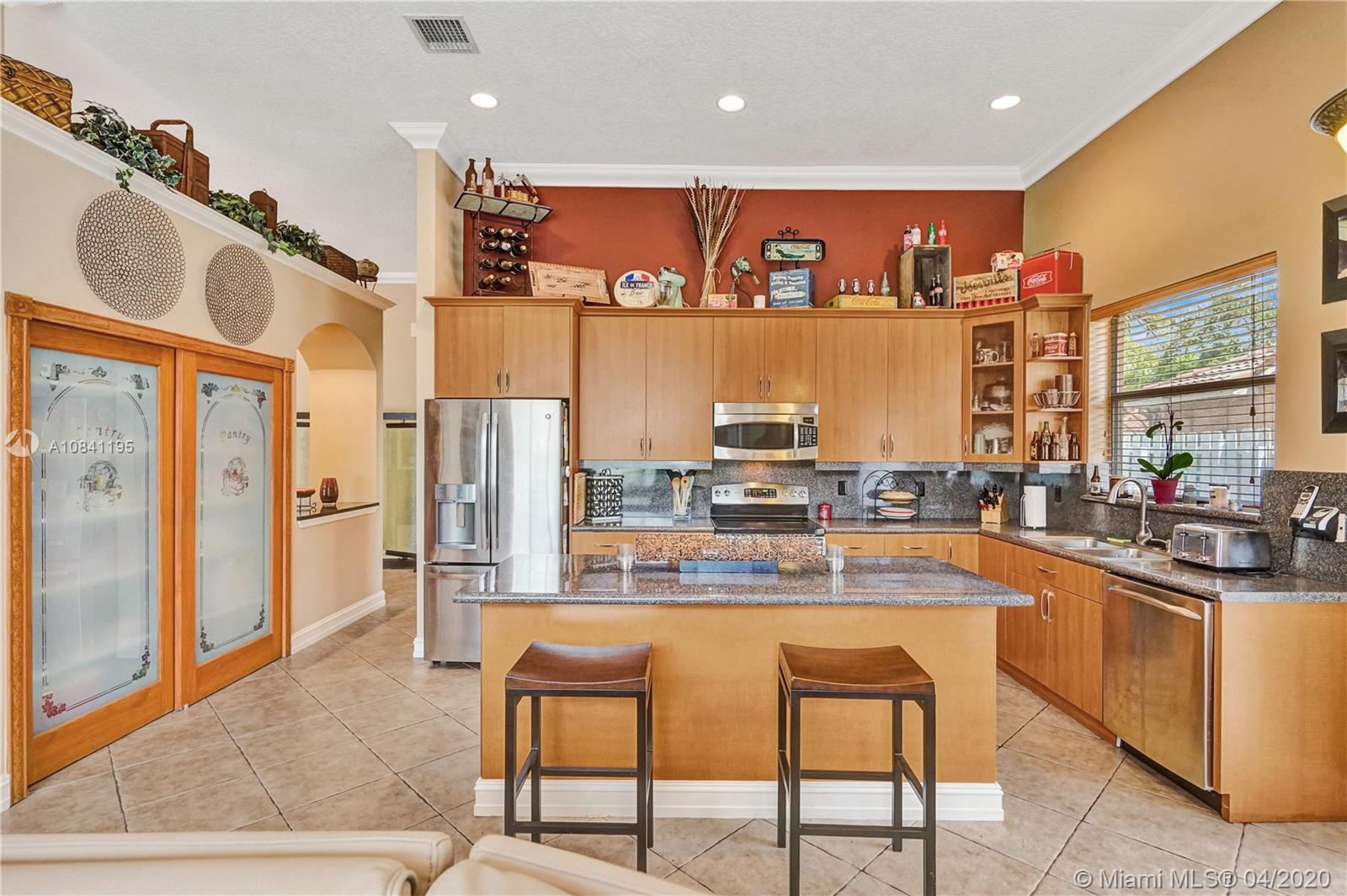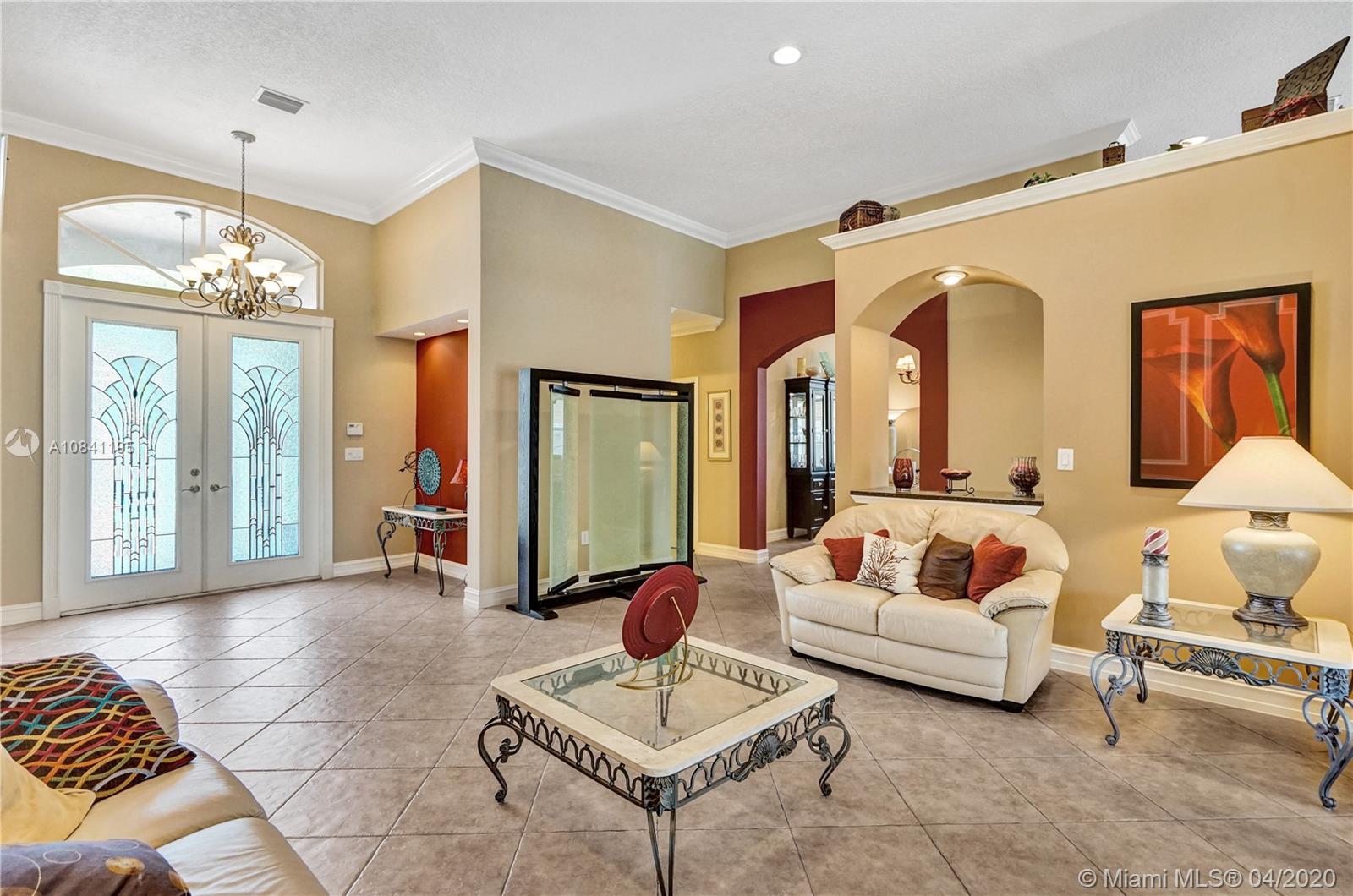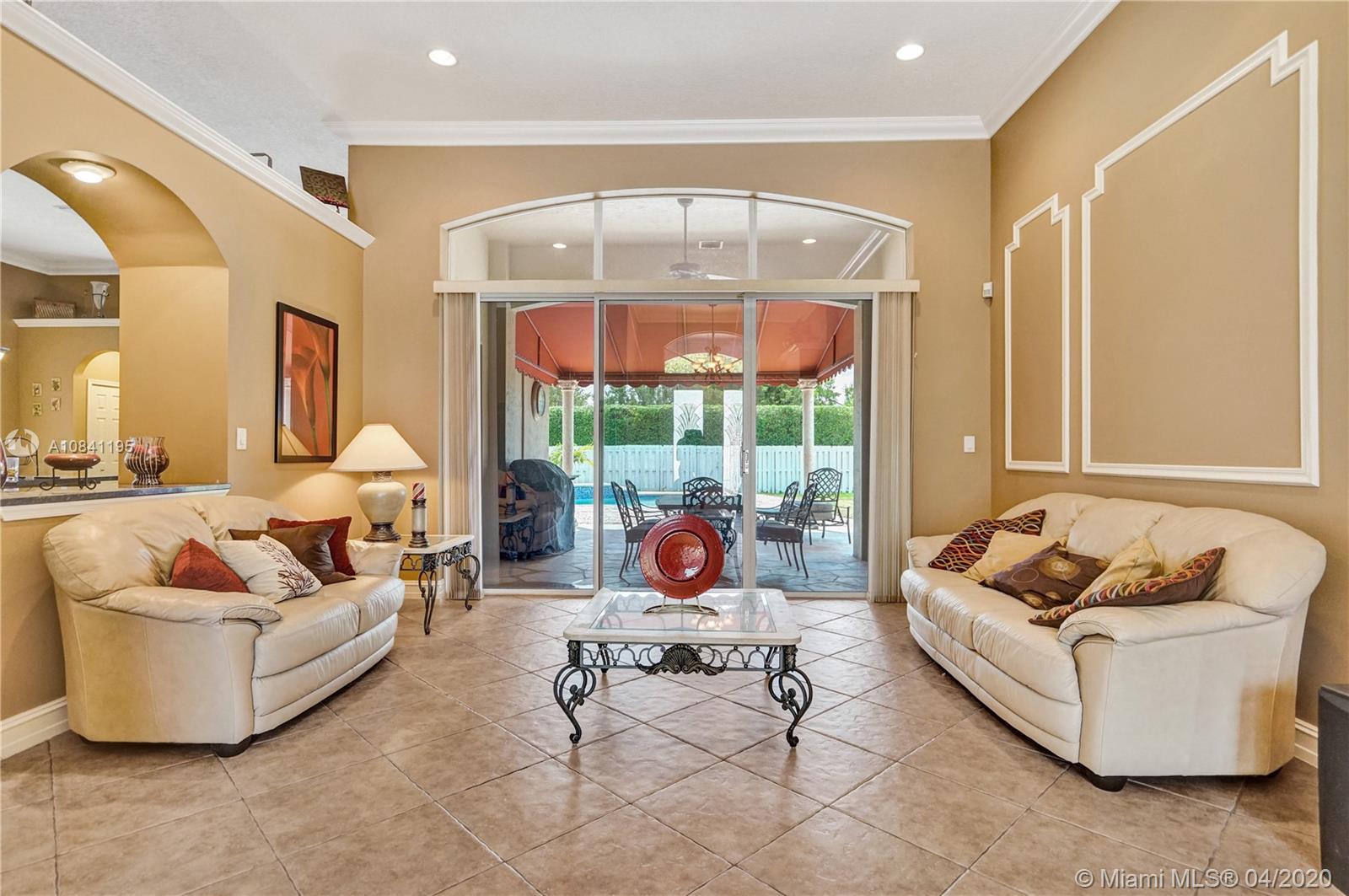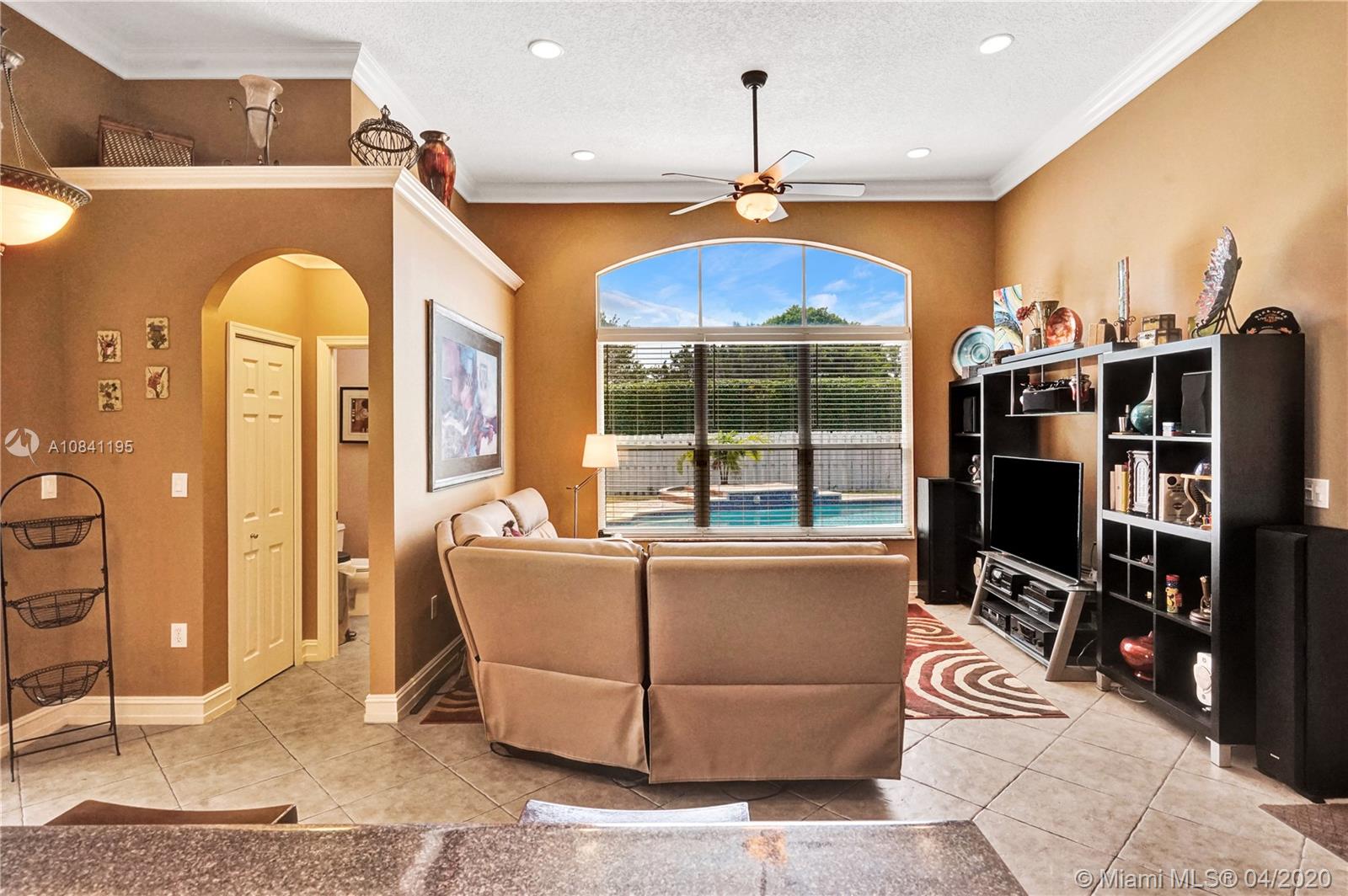 THIS IS A BEAUTIFUL AND SPACIOUS 4/2.5 LOCATED IN THE QUITE COMMUNITY OF HUNTINGTON BRISTOL ISLES, CLOSE TO HIGHWAYS AND POPULAR SHOPS. THE HOME HAS A SPLIT FLOOR PLAN WITH HIGH CEILINGS AND RECESSED LIGHT FIXTURES. THE KITCHEN FEATURES WOOD CABINETS WITH ISLAND AND STAINLESS STEEL APPLIANCES THAT OVERLOOKS THE FAMILY ROOM AND PATIO. THERE IS SEPARATE FORMAL DINING ROOM THAT ACCOMMODATES A LARGE FAMILY. SPACIOUS MASTER BATHROOM WITH ROMAN TUB. THE HOUSE SITS ON A LARGE 10,200 sq ft. LOT AND FEATURES A GORGEOUS SALT WATER TREATMENT POOL. THE PATIO HAS A CANVAS AWNING AND PAVER FLOORS. BEAUTIFUL PAVED DRIVEWAY WITH SPACIOUS 2 CAR GARAGE AND FOYER ENTRY. THE PROPERTY COMES WITH HURRICANE PANELS. THIS PROPERTY WONT LAST LONG!!!