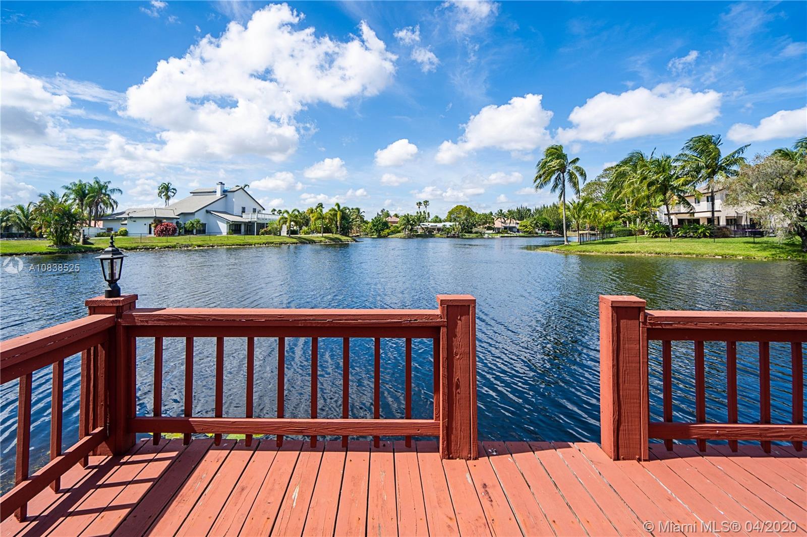 Beautiful 4 bedroom 2.5 bath lake front home in desirable Jacaranda Country Club. Located on a private street this home features large master bedroom with custom walk in closet. Master bathroom features double vanity with lake views. Home was recently painted and has 10 impact windows throughout. Expansive screened in porch leading to large pool that was resurfaced 8 years ago and private boat dock. Family room has stone fireplace and wood ceiling. Huge kitchen with a lot of storage and brand new refrigerator. Conveniently located by 595 and close to many shopping centers. Home has large circular paved driveway and 2 car garage.