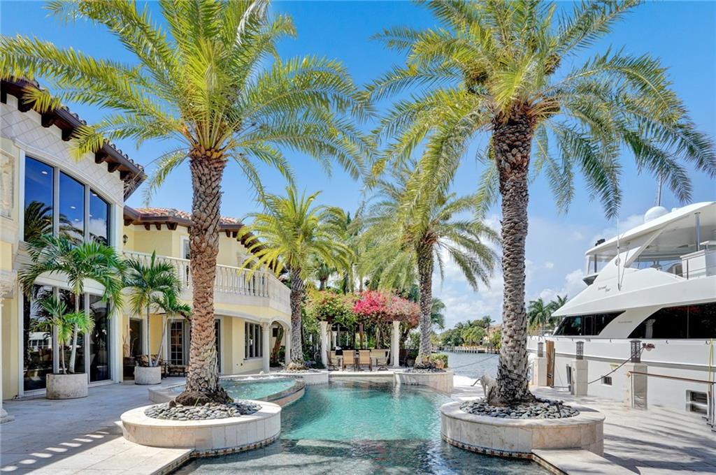 Unique custom home conveniently located on a quite street in one of Fort Lauderdale's finest waterfront communities: only minutes from beaches, Coral Ridge Country Club, Coral Ridge Yacht Club, excellent restaurants, shopping, schools, airports and Port Everglades. Craftmanship details and quality materials. 100’deep water dock, outdoor kitchen, waterfall pool, w/jacuzzi and featuring a chef’s kitchen with high end appliances, complemented by a 850 bottle wine cellar. Quiet, comfortable, perfect for entertaining, indoors and out. Elevator, large master with his and hers areas, morning bar, custom display shelving, electric shades, balcony, 2 large walk in closets, 1 w/updated dressing room. Open, airy, three car garage, and beautifully landscaped 12,004 sq.ft. lot, with circular drive.