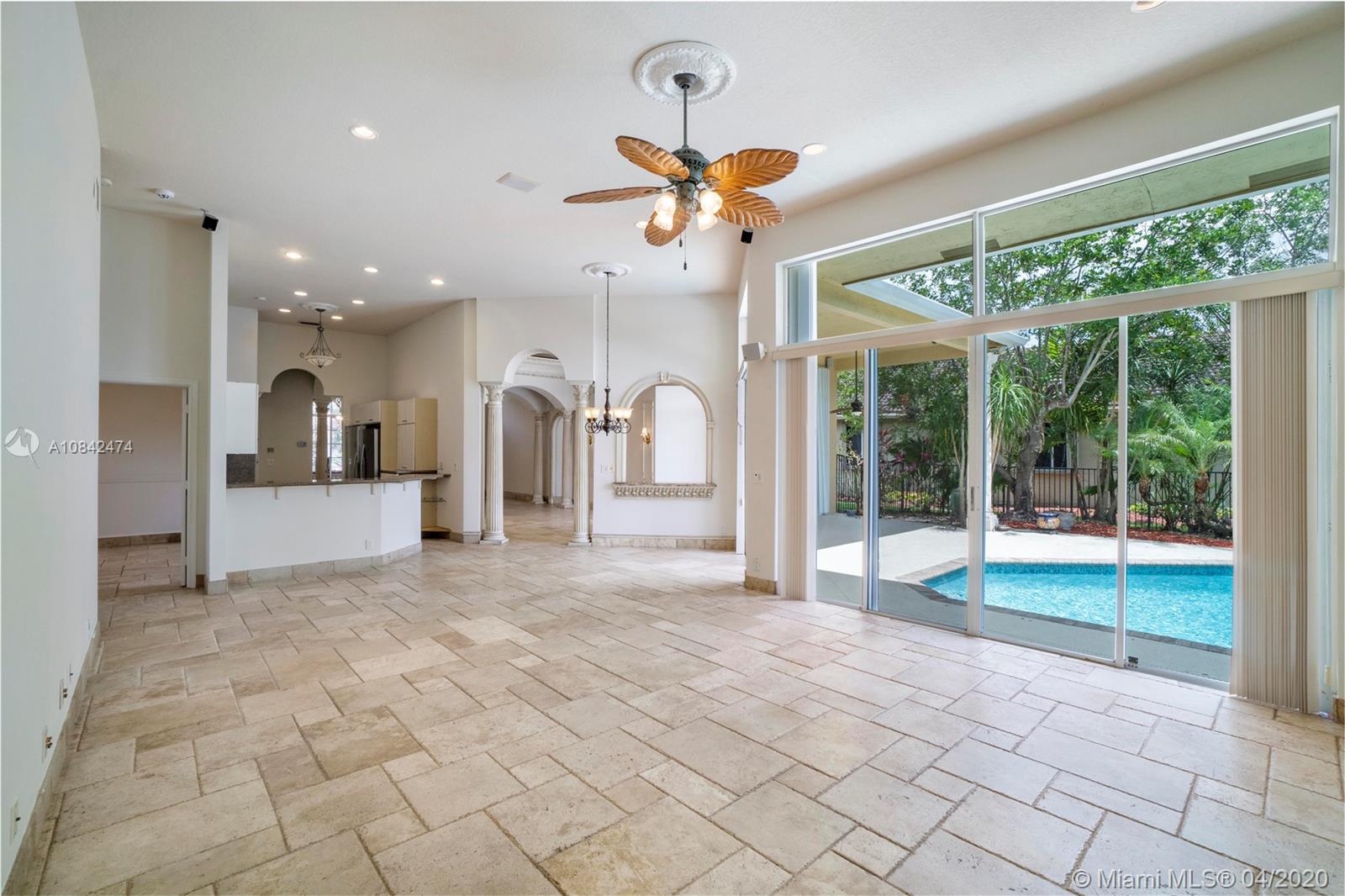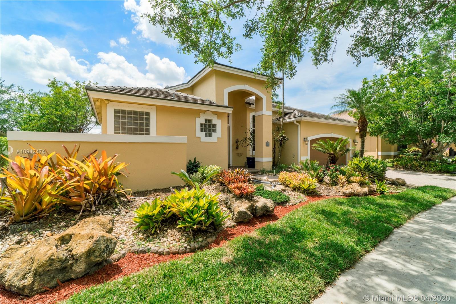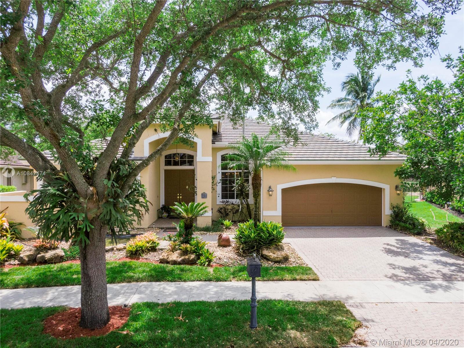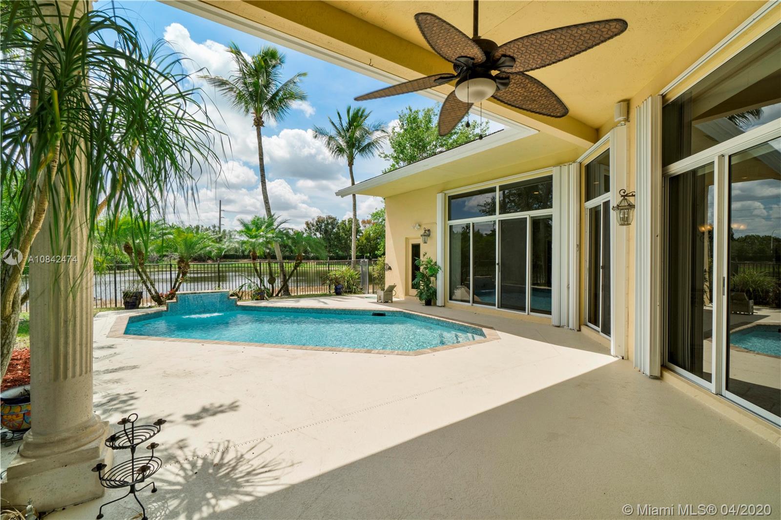 Magnificent designer's home in Weston Hills CC - featuring: dramatic foyer with beautiful marble medallion - 12 ft ceilings in living areas - travertine floors - formal columns leads down grand cathedral style hallway - breathtaking decorative crown moldi ngs - SS KitchenAid appliances - granite counter tops -Freshly Paint- Roof Replace in 2015 in master bed/bath - rainfall shower jets & duel decorator sinks in master bath - private backyard with spectacular wide water views - accordion shutters - 3D Virtual Tour Available please contact for more info