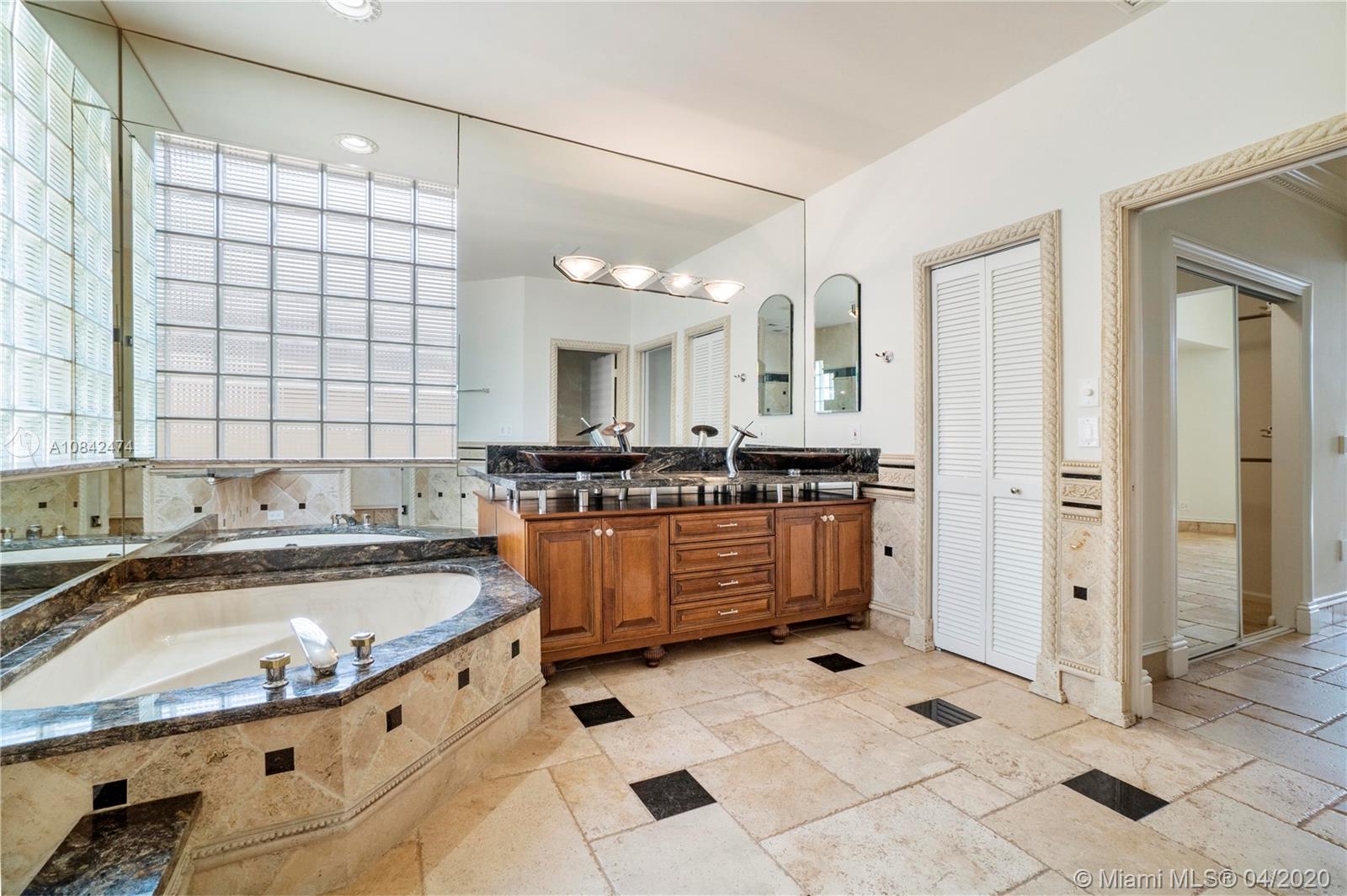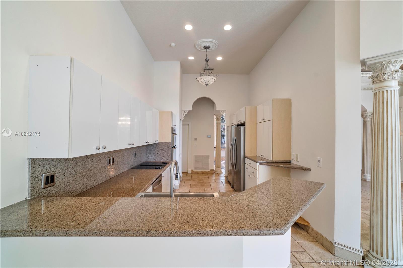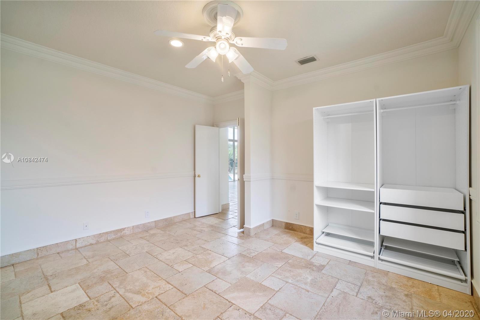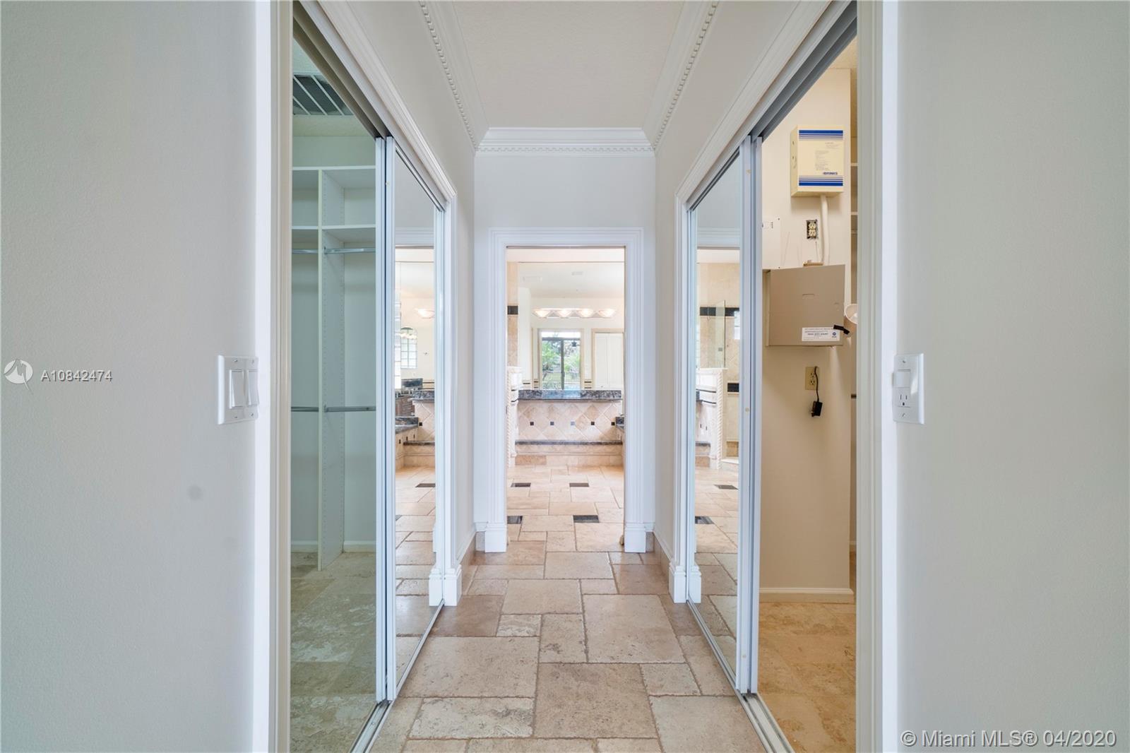 Magnificent designer's home in Weston Hills CC - featuring: dramatic foyer with beautiful marble medallion - 12 ft ceilings in living areas - travertine floors - formal columns leads down grand cathedral style hallway - breathtaking decorative crown moldi ngs - SS KitchenAid appliances - granite counter tops -Freshly Paint- Roof Replace in 2015 in master bed/bath - rainfall shower jets & duel decorator sinks in master bath - private backyard with spectacular wide water views - accordion shutters - 3D Virtual Tour Available please contact for more info