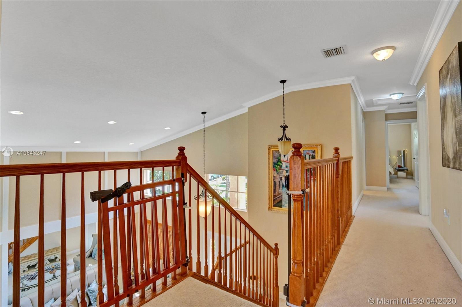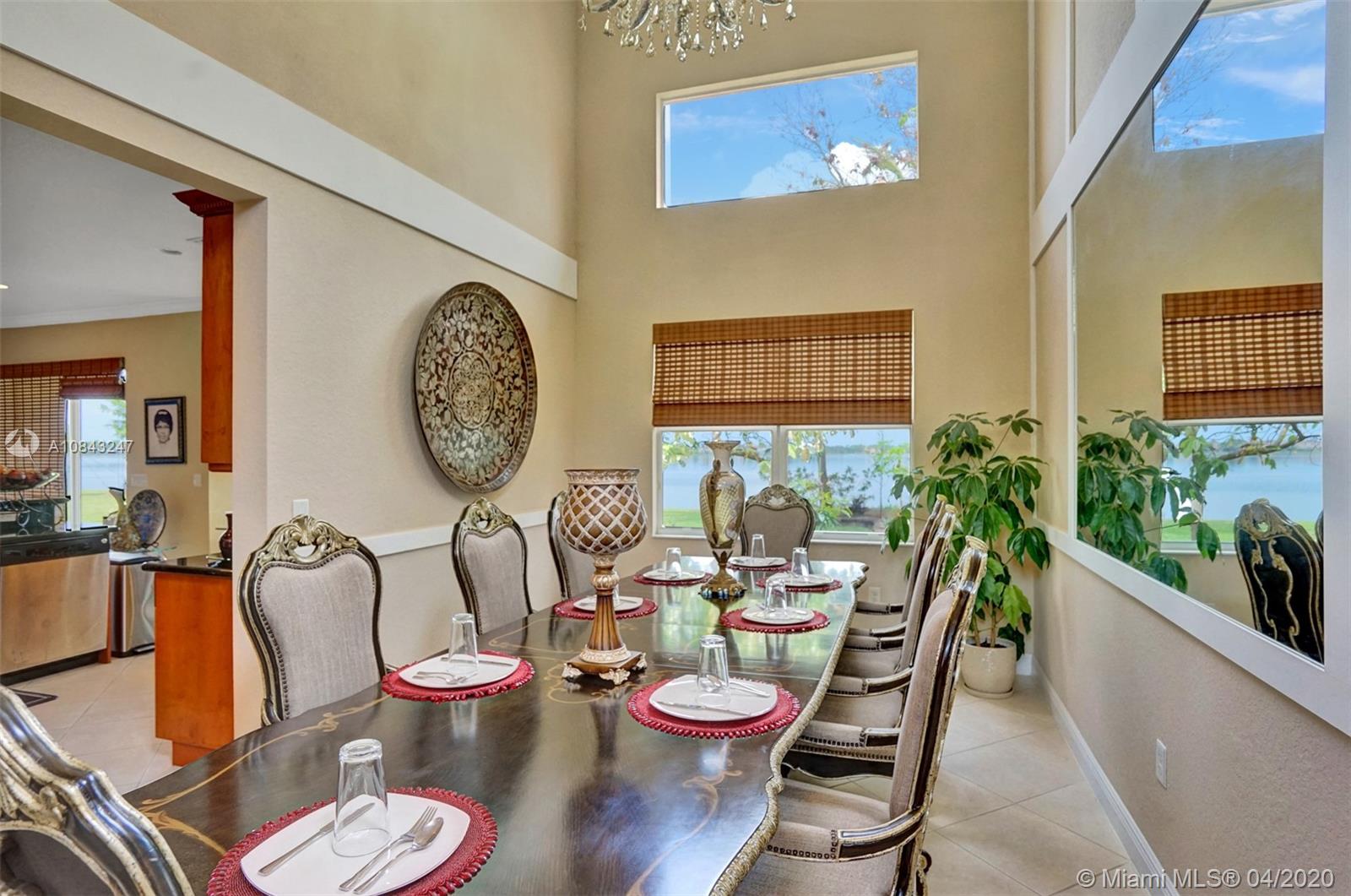 BACK ON THE MARKET Gorgeous 2 story home w/Premium lakefront lot in highly sought after Sunset Falls Community. It features breathtaking panoramic Lakefront views over a mile long. Open floor plan encompasses 5 spacious bedrooms with 3 full updated bathrooms & kitchen. Bedroom & full bathroom downstairs. The vaulted ceilings add to the expansive elegant feel. Balcony off the Master Bdrm great to enjoy entrancing sunsets and sunrises unique to this premium oversize lot. Patio ideal for entertainment or evening dinning al fresco. This home has been meticulously cared for. High tech security system. Smart a/c thermostat. New a/c handler and a/c unit. Crown molding and baseboard throughout, Mirrors and wall décor Victorian style. Formal D.R. Chandelier & Refrigerator are NOT included in Sale.