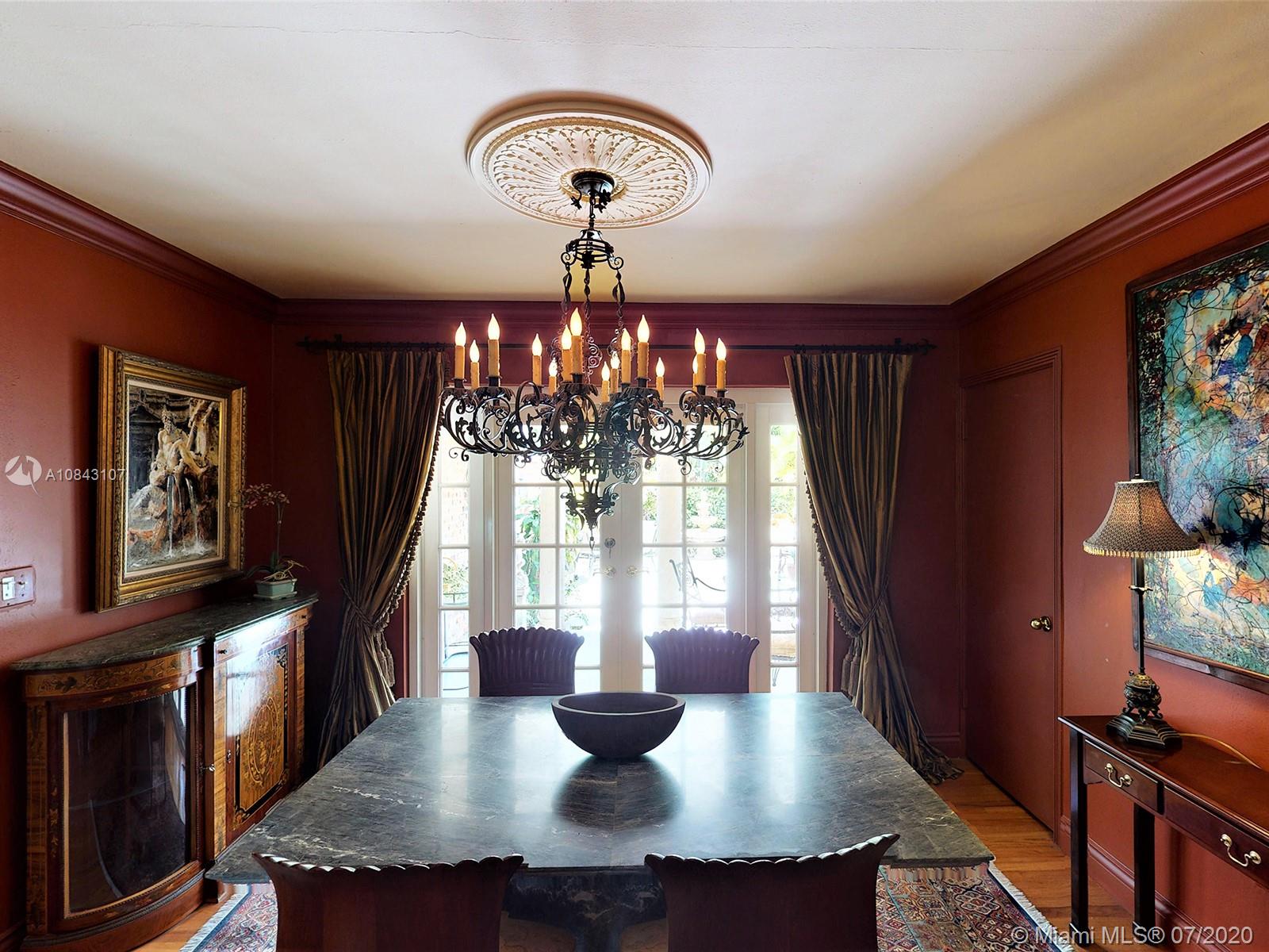 1940's Charm on one of Miami Shores' most beautiful streets! Main house w/two possible master suites, both include sitting areas, plus a third bedroom and attached 1/1 cottage. This home sits on a 17,750 lot & offers plenty of room to expand, build a pool, or enjoy your own private compound. Entry introduces you to a charming living, dining & sun room w/ cove ceilings, f/p & French doors to a large covered patio. Original kitchen can be preserved or renovated to accommodate personal taste. Breezeway off the kitchen leads to the 1/1 cottage. Please view 3-D virtual tour.