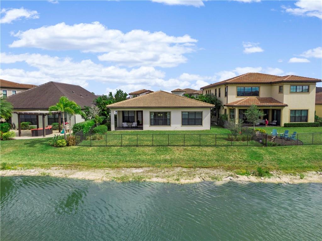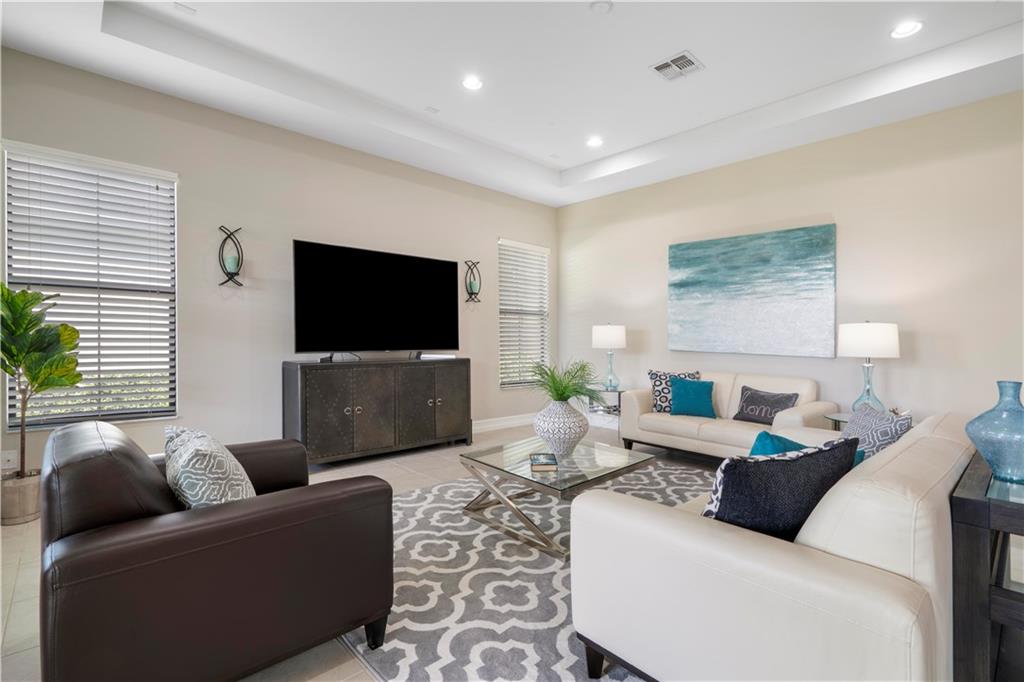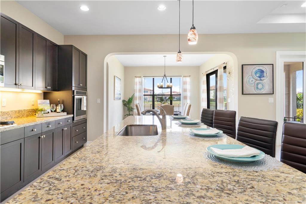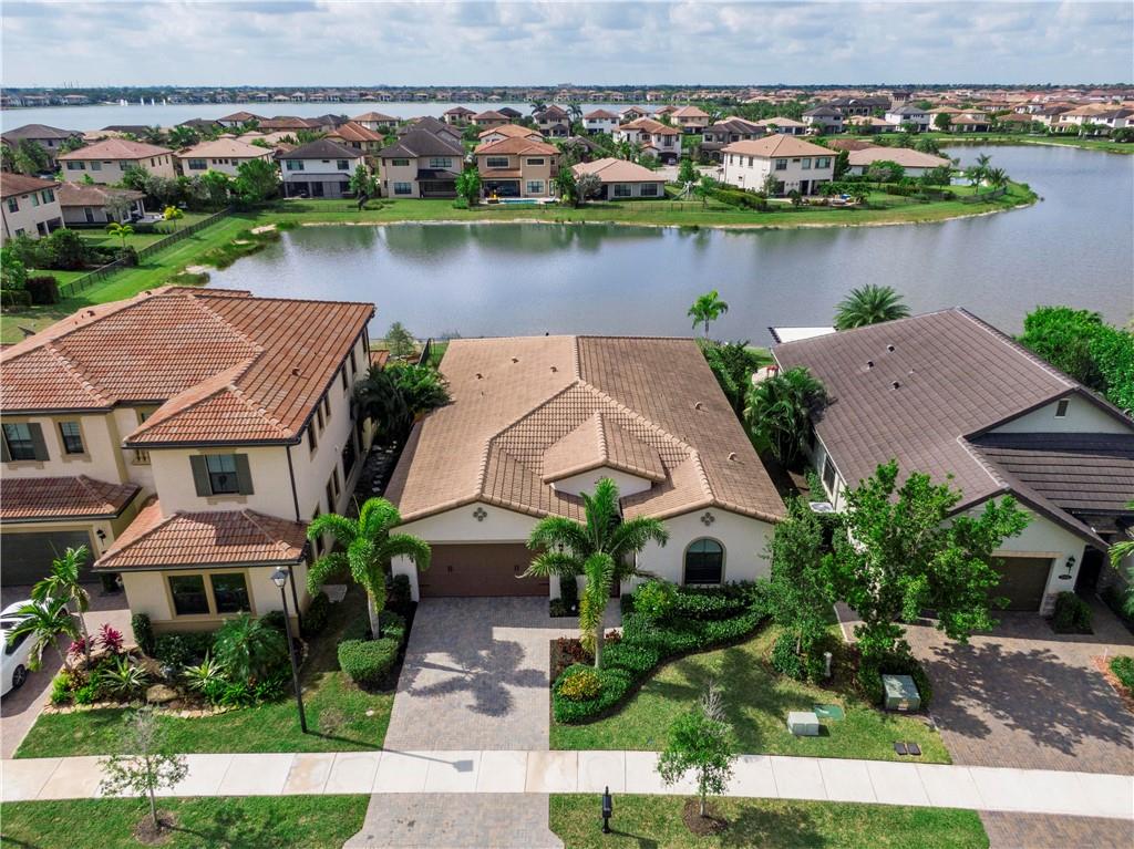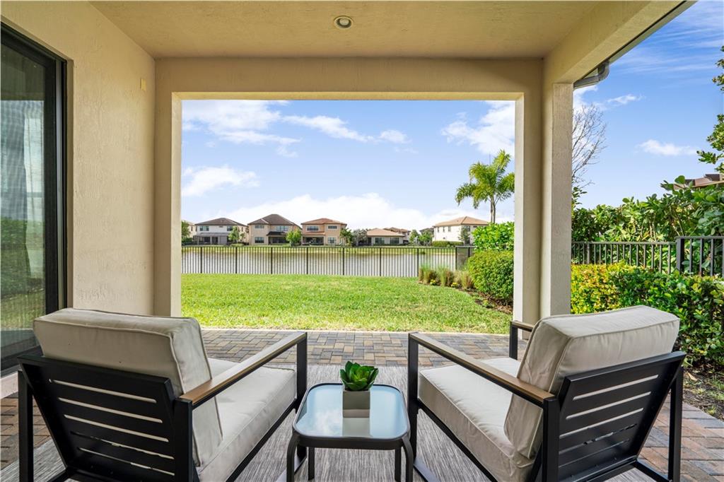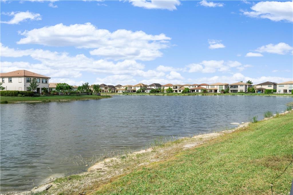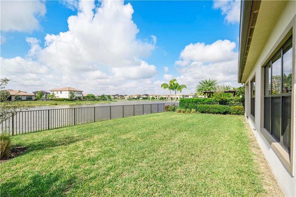 This beautiful Kensington Model is located on a prime lot with tranquil water views! Features include an open floor plan with a foyer entrance, tray ceilings, light grey interior paint, great room, casual dining, tile floors in the main living areas, upgraded carpeting in the bedrooms, wood floors in the den ( 4th bedroom ), smooth walls & ceilings and recessed lighting! The kitchen has espresso wood cabinets, granite counters, under cabinet & pendant lights, pantry, a huge center island & Kitchen Aid stainless steel appliances! All the bathrooms have white vanities with quartz counters and tile to the ceiling with decorative listello trim! Enjoy the covered patio, the fenced landscaped yard & the water views! This gated community has amazing amenities! South Florida Living at its best!