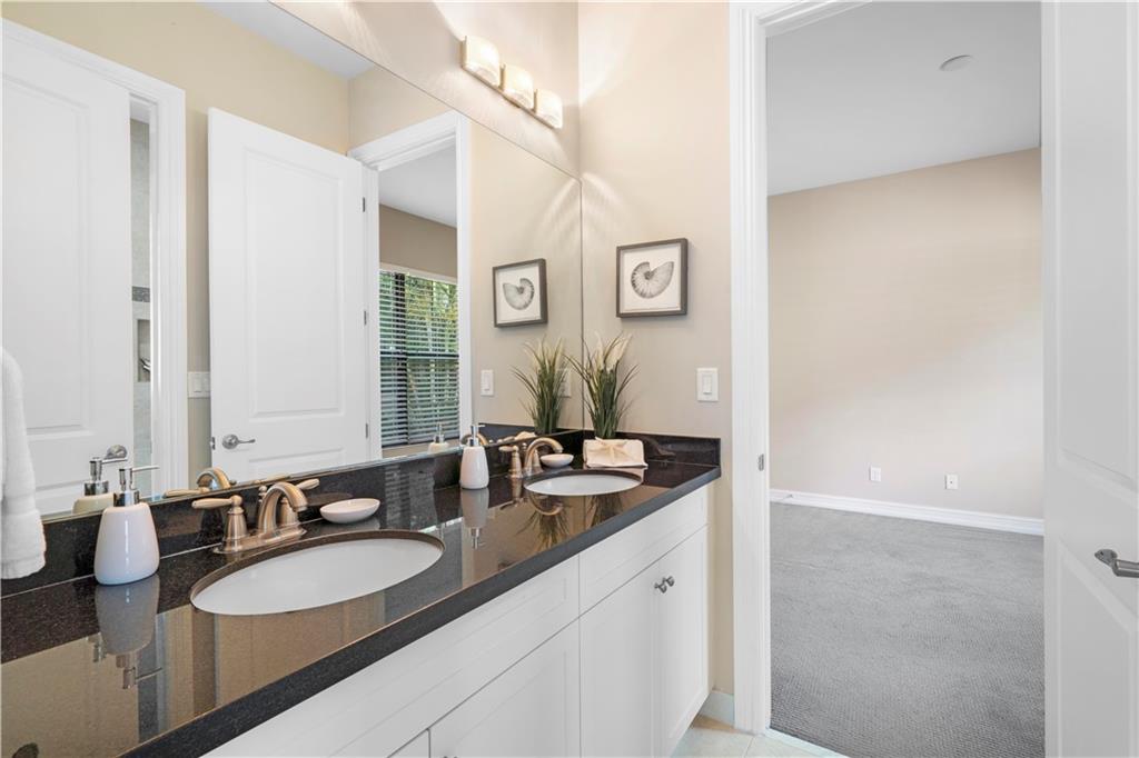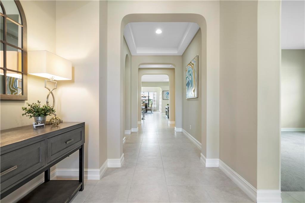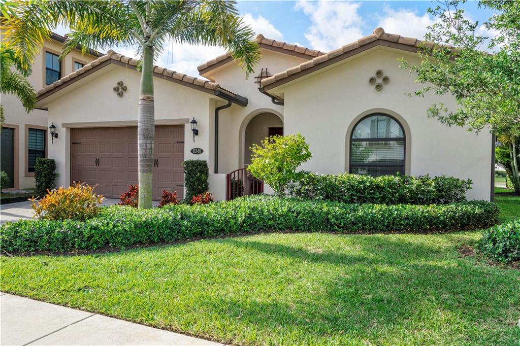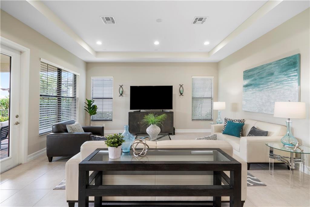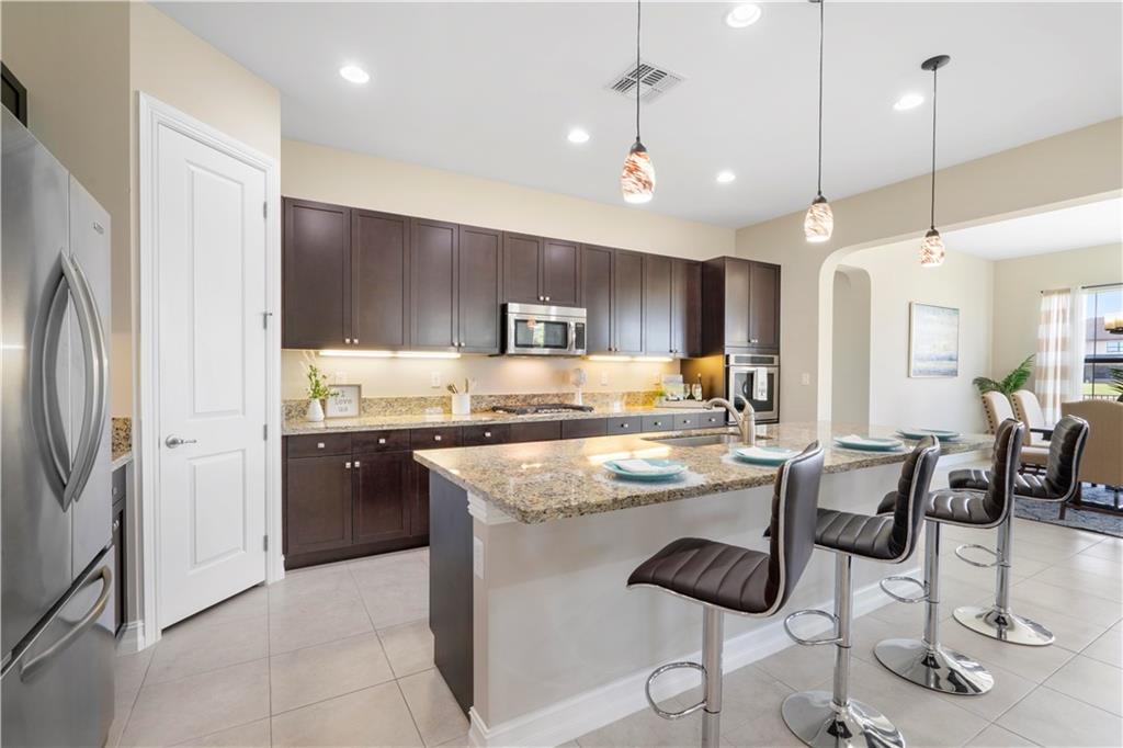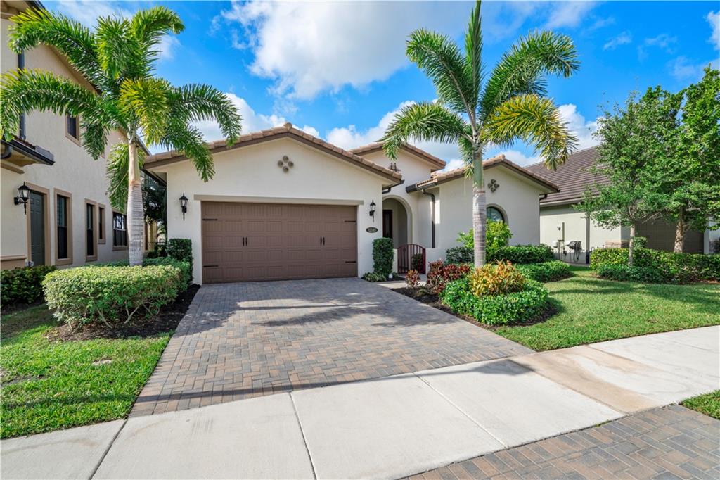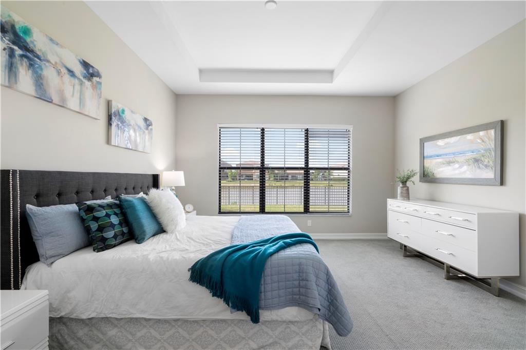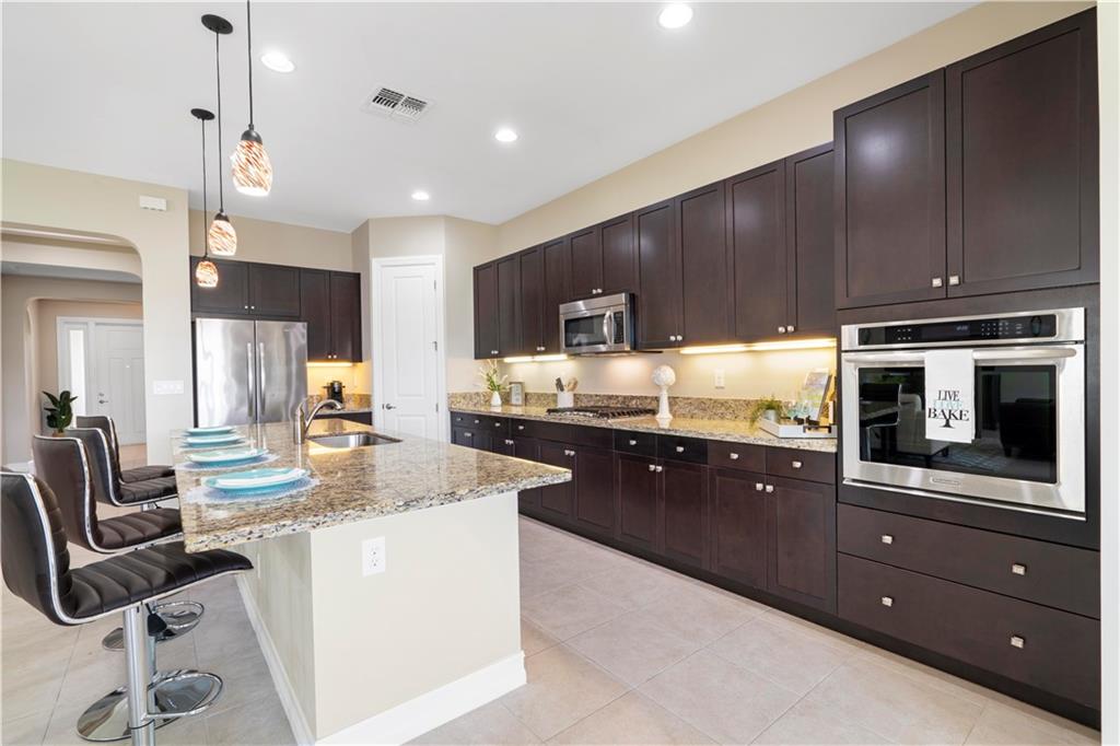 This beautiful Kensington Model is located on a prime lot with tranquil water views! Features include an open floor plan with a foyer entrance, tray ceilings, light grey interior paint, great room, casual dining, tile floors in the main living areas, upgraded carpeting in the bedrooms, wood floors in the den ( 4th bedroom ), smooth walls & ceilings and recessed lighting! The kitchen has espresso wood cabinets, granite counters, under cabinet & pendant lights, pantry, a huge center island & Kitchen Aid stainless steel appliances! All the bathrooms have white vanities with quartz counters and tile to the ceiling with decorative listello trim! Enjoy the covered patio, the fenced landscaped yard & the water views! This gated community has amazing amenities! South Florida Living at its best!