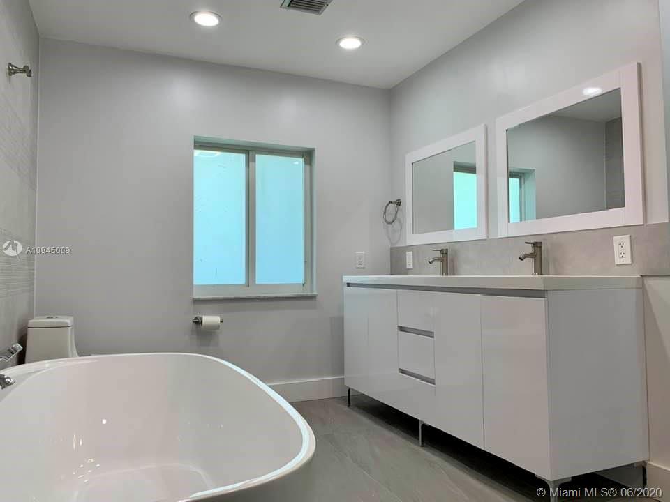 This Miami Shores home has been totally remodeled. There are (4) bedrooms & (3) baths, living room with wood-burning fireplace & formal dining room,huge family room,new large kitchen with plenty of cabinet space,Sub-Zero, wet bar, peninsula, top of the line cabinets,white Calacatta quartz countertops,exhaust fan, farmhouse kitchen sink, and electric LG double oven range.New master bedroom with a large walk-in closet and a beautiful new master bathroom with a double sink vanity, free-standing bathtub, and a 3’x6’ beach entrance style shower.There are (2) Master bedrooms. The new deck opens to the backyard from the family room. There is new plumbing,new electrical,new septic tank,new flat roof,new CGI impact-resistant windows,and French doors. New driveway and entrance steps. One car garage