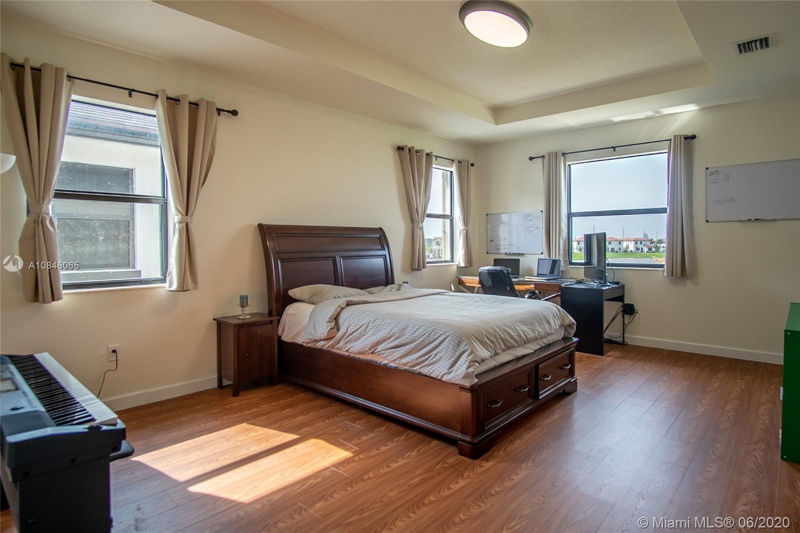 Lake View 2 story Home with 4 Bedrooms and 3 Ba. in Aquabella Community of Hialeah Gardens. This is one of only 30 homes by the lake, featuring upgrades through; Kitchen with open space, granite countertop, and SS appliances, a 2 car garage, and a brick-paved driveway that can park up to 3 cars; general water filter for the entire house. Inviting back yard, with brick pavers, avocado, and coconut trees, and professionally designed landscaping. This house has been designed to be enjoyed comfortably by the entire family. The Community offers a resort-type Club House with 2 pools and many amenities. Located in an A-rated school district.