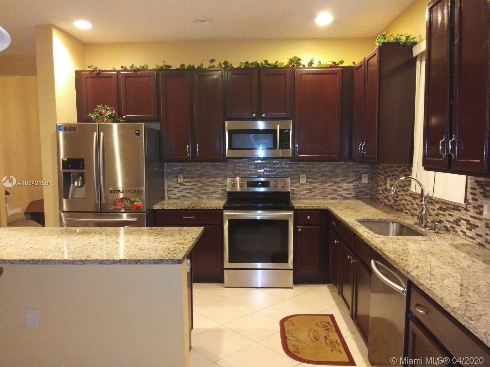 A beautiful home located in the upscale, Pembroke Falls gated community. It features 4 bedrooms and 3 full baths, a 2 car garage, open floor plan w/upgraded kitchen, granite tops, and stainless steel appliances. There are ceramic tiled floors throughout most of the home, LED lighting, a very spacious family room, and master bedroom suite. One of the bedrooms/a bathroom is downstairs. There is a large, open backyard with fruit trees. Accordion shutters are on all windows. The community center has amenities which include: exercise room, large pool, basketball and tennis courts. There is also a 24 hour guard gate, and community is centrally located in Pembroke Pines; with close proximity to schools, malls, parks, major highways, hospitals, restaurants, and golf courses!