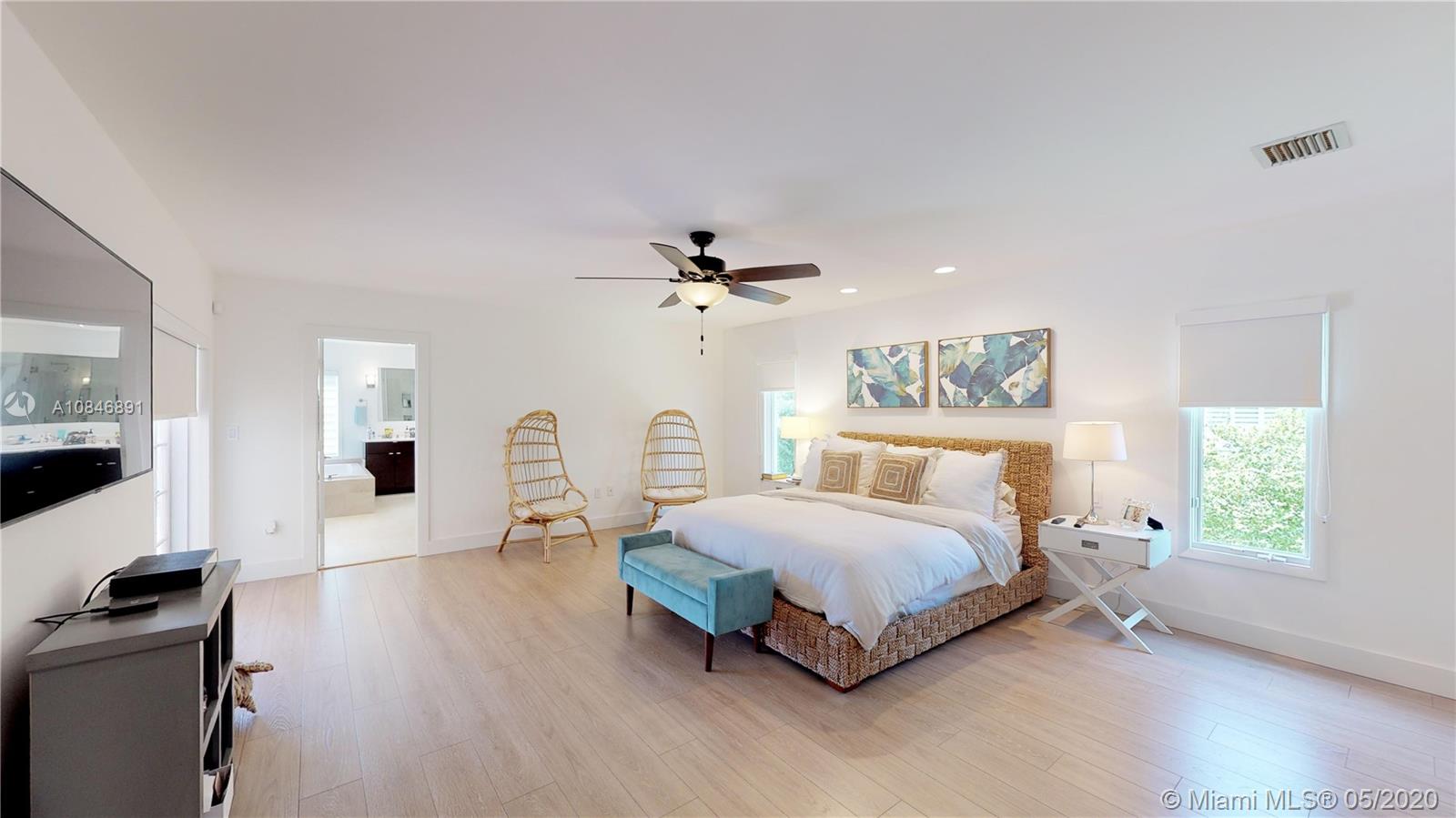 Tucked away in a small, exclusive gated community in the Village of Pinecrest, this 4-bedroom, 3-bath home was tastefully updated. The spacious living area boasts a large formal living room, formal dining room, and wonderful family room that leads out to the screened-in pool and outdoor entertaining area with BBQ. ShellStone floors are found throughout the living space, and durable wood-look vinyl flooring in the bedrooms. The modernized kitchen features a porcelain farmhouse sink, stainless steel appliances, white quartz countertops, and adjacent breakfast room. The sumptuous, oversized master suite was updated with modern finishes. Other notable features of the home include full-size laundry room, 2-car garage, and the best Pinecrest schools. Competitively priced.