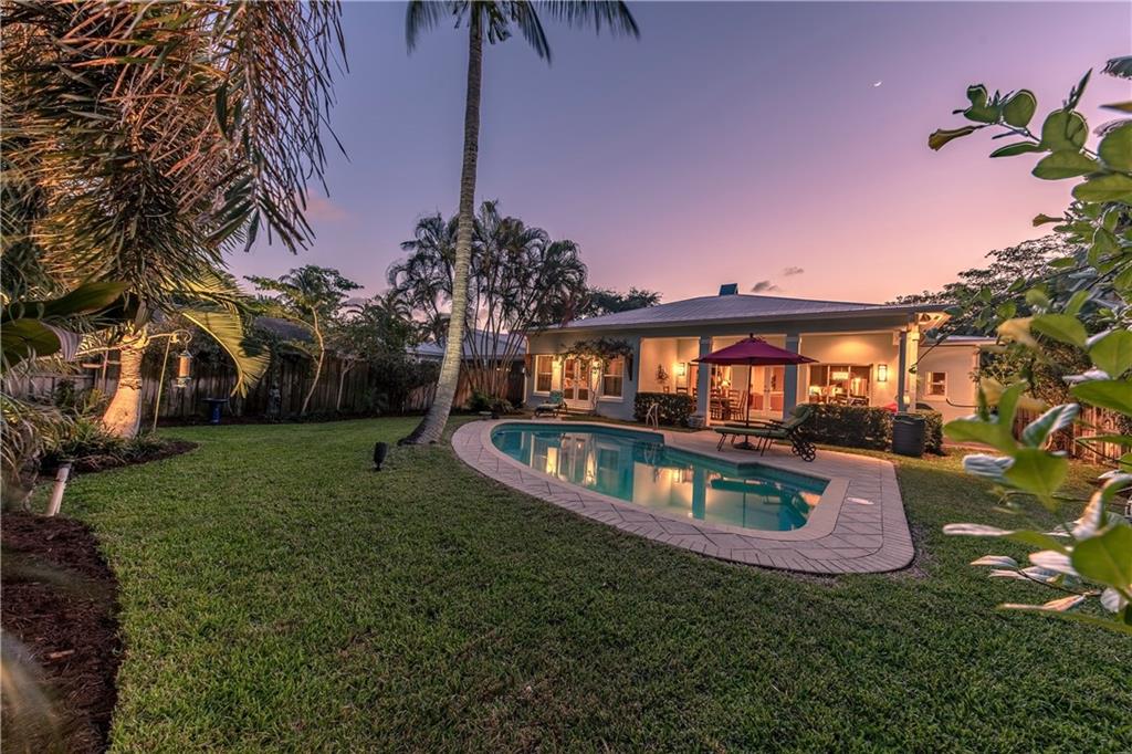 All Dressed Up and Ready to be Seen! Easy one story living in this (2012) 3BR/2BA offering all the benefits of a newer house; open plan, volume ceilings, hardwood flooring, a wood burning fireplace, a Chef's kitchen, a poolside Master w/luxury bath and spacious walk-in closet, whole house generator, attic storage and a covered loggia overlooking a resort style pool and private gardens. The professionally designed cooking center boasts quartz countertops, custom hardwood cabinetry, stainless appliances and a huge preparation island and has an additional breakfast bar providing extra seating. The laundry is located off the kitchen with access to the garage and provides added storage. The foyer entry gives way to contemporary sunlit interiors with most rooms offering pool and garden views.