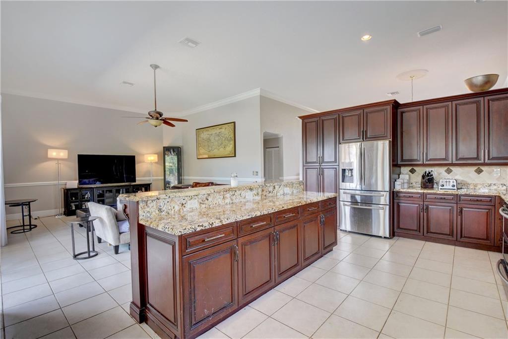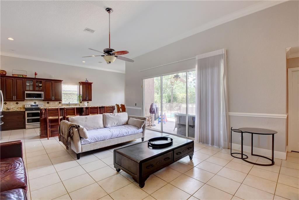 Stunning Coral Springs home in Kensington North. Home features an open, updated, eat-in custom kitchen with Granite counter tops, tumbled marble back splash, under mount sink, 42" real wood Cherry Cabinets, Island breakfast bar, Stainless Steel appliances (double oven). Ceramic tile throughout all the common areas with laminate in the bedrooms. 12' Volume ceilings, Plantation shutters & custom drapes, crown moldings, knockdown walls & ceilings, smart thermostat, and surround sound. Huge master bedroom with tray ceiling and huge California closet. AC and duct work is 3 years old. Built-in, California closets in 3 bedrooms. Front loading washer/dryer under air off of garage. Relaxing patio/pool area with child safety fence. Professionally landscaped with tropical palms. Hurricane panels.