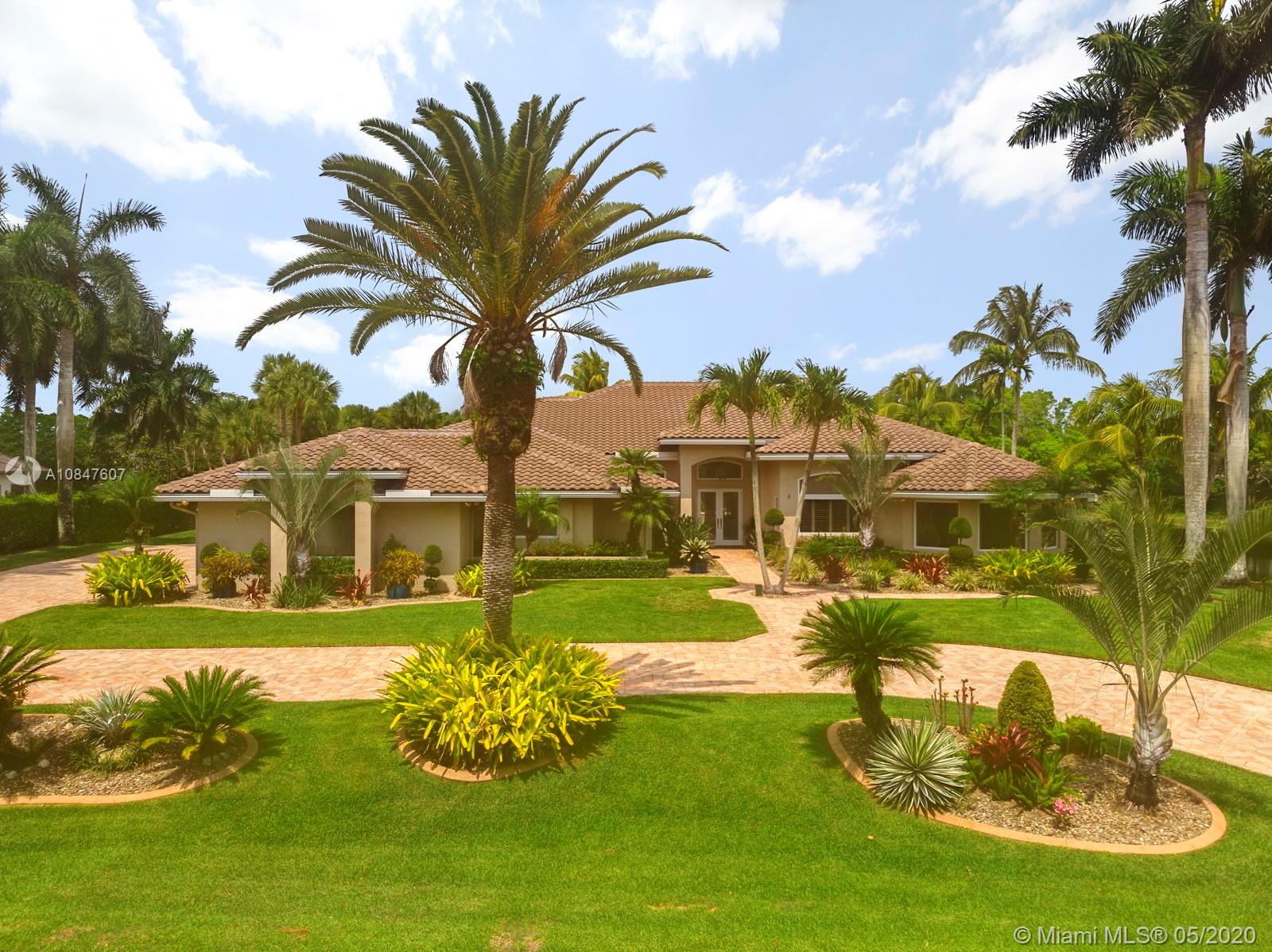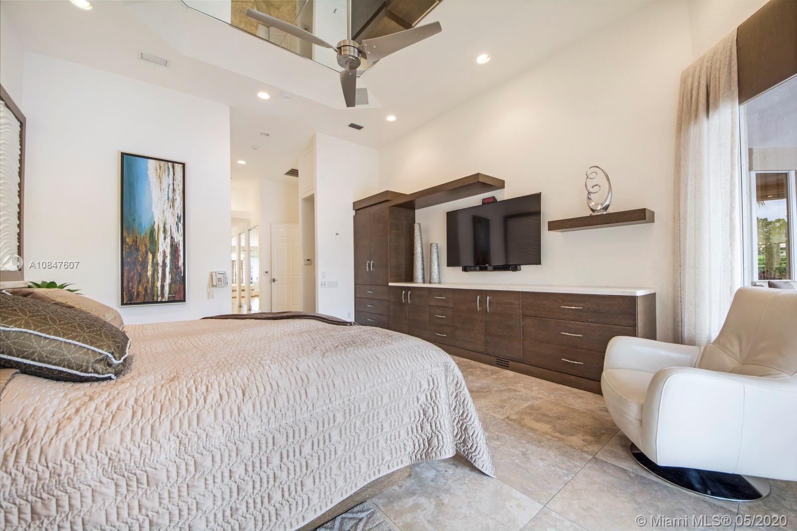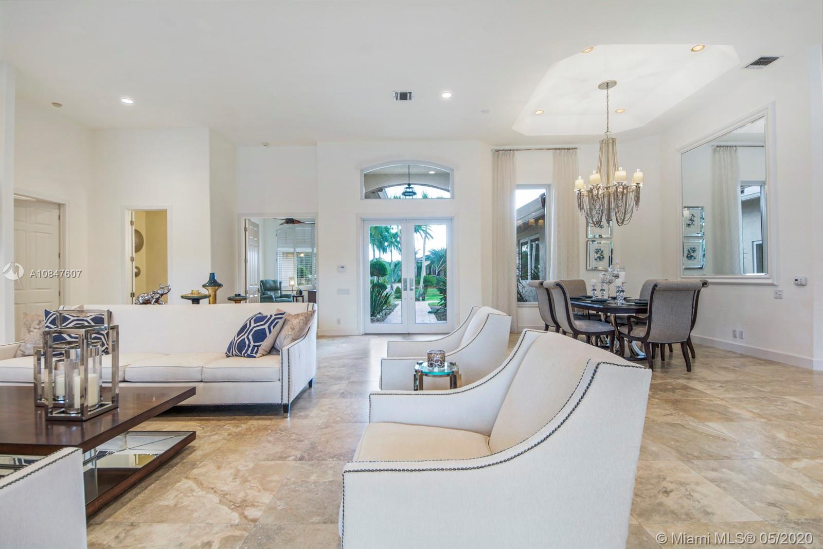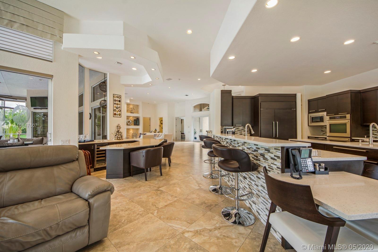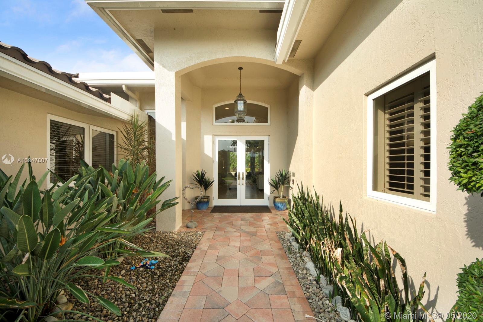 Bright and spacious newly remodeled four bedroom plus office home in the exclusive neighborhood of Windmill Lakes Estates, on a private corner lot with lake views. Entrance with circular driveway and lush landscape. Newly renovated kitchen with wood cabinets, new appliances and quartz counter tops, two sinks, beverage cooler, and walk-in pantry. Swimming pool and spa connected with Aqualink system. Master bedroom with large walk-in closet. Bathroom has separate sinks, tub and walk in shower. Large laundry room. Three A/C units, impact windows, new roof and over sized gutters, 13 foot ceilings and was recently painted on the outside. Wired for sound, with speakers throughout. House and landscape were designed with extra features to minimize regular maintenance.