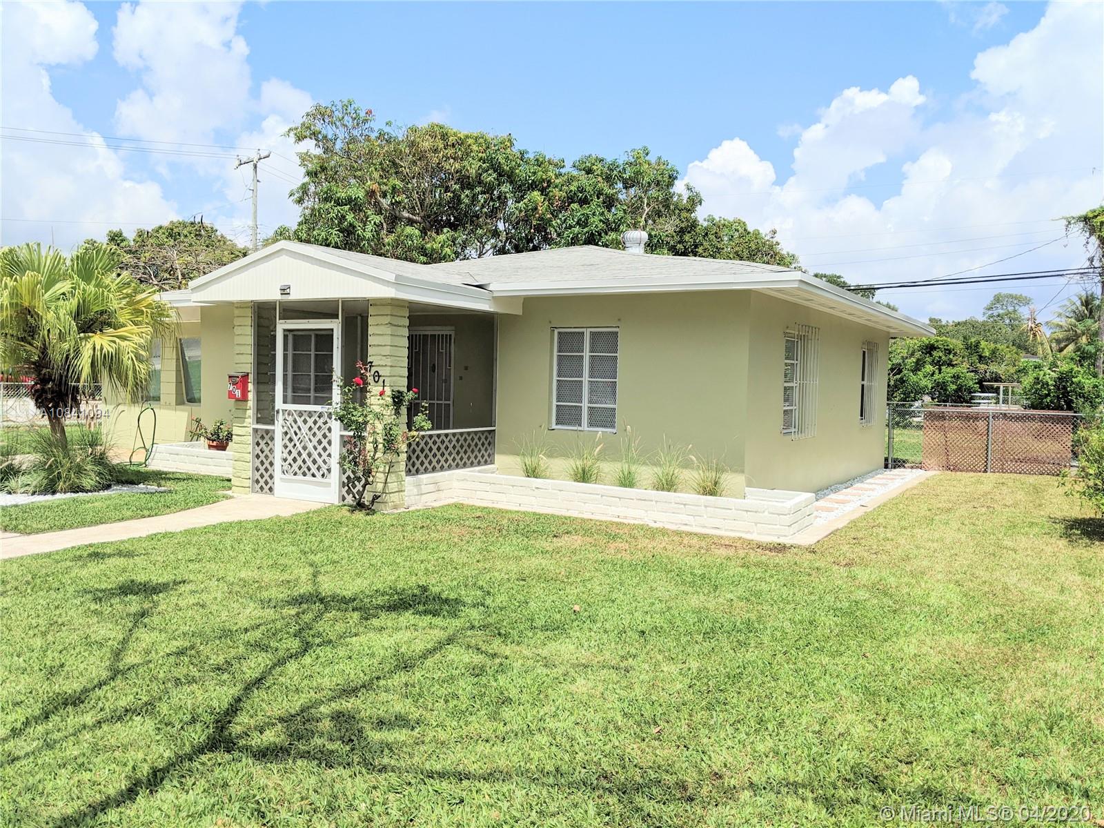 Charming North Miami home on a corner lot with wraparound green landscape. Featuring 3 Bedrooms & 1 Bathroom with 1135 sqft. Walking through a foyer with lots of natural light in living room/family room. Enjoy cooking and entertaining guest in a custom kitchen featuring a rolling island, and lots of storage/cabinets with dining area adjacent. Spend time and relax in your own screened patio that oversees all of the back patio and large mango tree. Home includes 2 sheds for tools or equipment. Minutes from Schools, Parks, Shopping & I95.