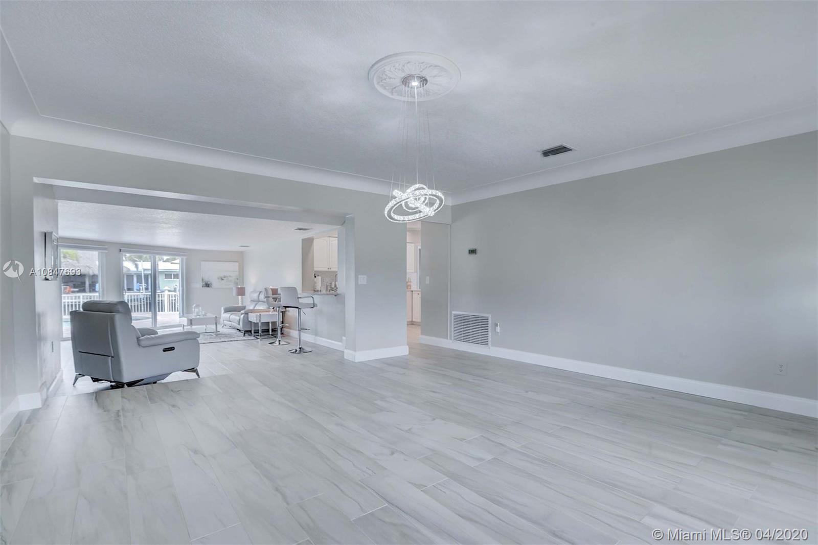 **Gorgeous Complete Modern Renovation in Garden Isles on 70 feet of water. All Impact Windows, New porcelain Tile, Big Bright Open Floor Plan, Spacious Living Room, Open New Quartz Kitchen, New Quartz Baths. Master Suite has attached Den / Office (easily converted to 3rd Bed), Guest Suite has full bath and walk in closet. Roof 2002, AC 2017, New Tankless Water heater 2019, You will love the backyard w/pavered Pool, fence, fountain, Summer Kitchen w/fridge, ice drawer, Side Patio, new Composite Dock w/ power, new footings, 2 Car Garage, Circular Driveway. Quiet dead end street. Federal Highway is the only fixed bridge, close to the revitalized Pompano Beach Pier, restaurants, shopping. Owner has equity, not a short sale or foreclosure.