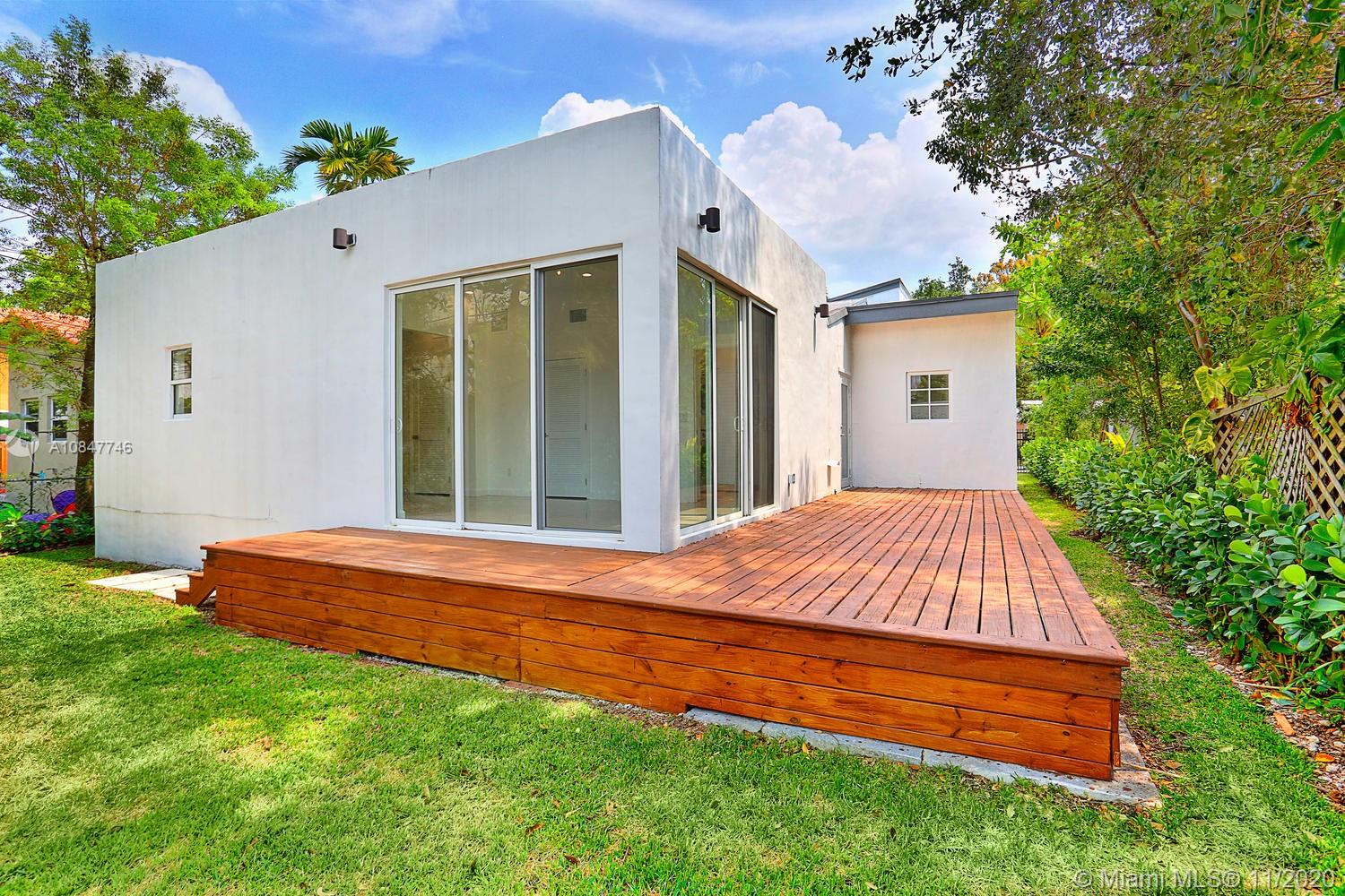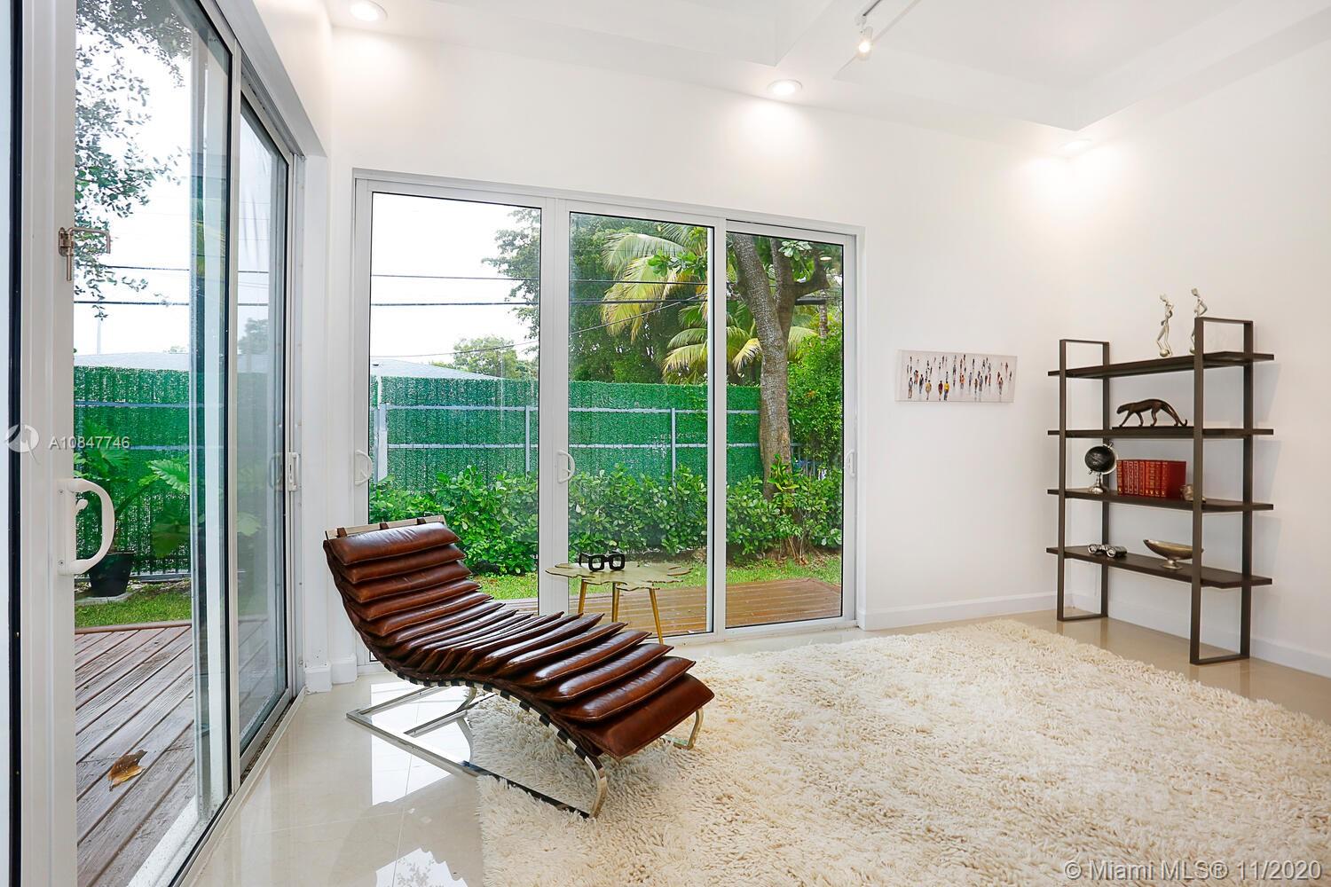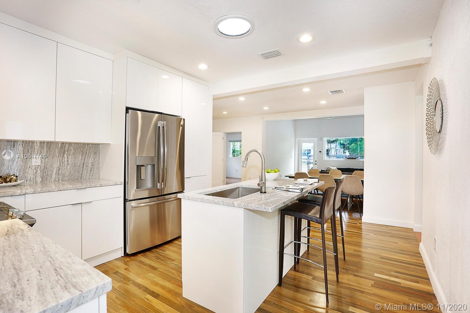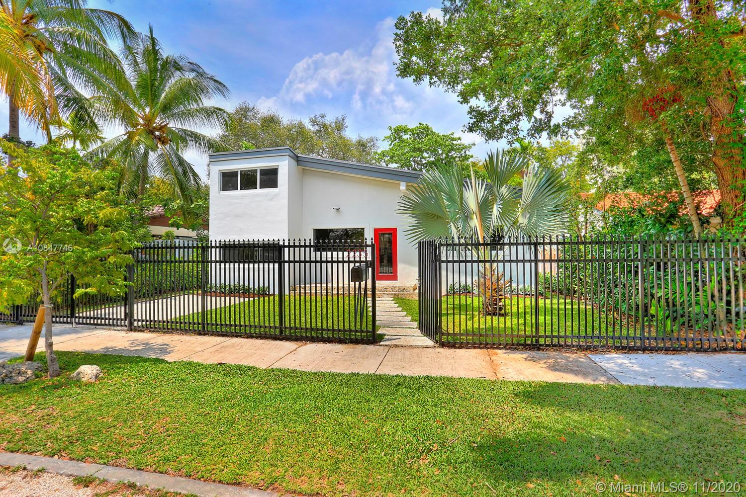 Modern-style gated home on a tree-lined street in prime North Grove location. Just a short walk to bayfront parks & marinas and close to the Grove village center’s boutiques & cafes. Recent total renovation + major addition & structural remodel in 2013. Light-filled living spaces (formal living/dining + den) with vaulted exposed beamed ceilings & wood flooring. Stunning new kitchen with center island, white high-gloss cabinetry by Eucucina, stainless GE appliances & stone countertops. 4 BR’s (1 with unique sleeping loft). Expansive master suite featuring 14’ ceilings, porcelain tile flooring, separate office/sitting area, two custom walk-in closets and spa-like bath w/jacuzzi tub. 2013- new roof /electrical /plumbing & HVAC systems. Minutes to downtown, MIA, Key Biscayne & the Beaches.