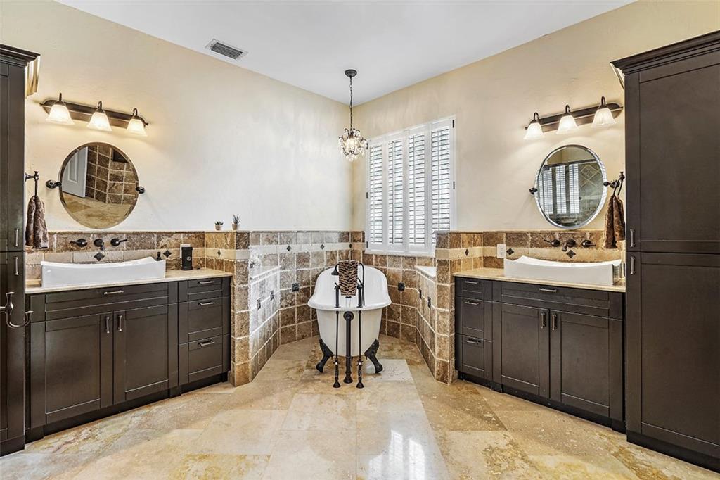 This Big & Beautiful Home is situated on a oversize corner lot & offers a 2019 Roof. Impressive Curb Appeal w/sprawling front lawn, 3 car garage, manicured landscape & large paver driveway. Once inside you are greeted by soaring ceilings, 2 Story High Wall of Windows & grand staircase. Luxurious Master Suite w/a new "jaw dropping" bath featuring a free standing clawfoot tub, chic his & her vanities & huge shower! Open family room/kitchen area offers a sophisticated Stack Stone Accent Wall, spacious island kitchen w/fine wood cabinetry, granite, breakfast area & serene views of the pool area. The stunning outdoor living spaces are private & include a pool w/fountain, fireplace, summer kitchen & marble pavers. Other offerings: wood flooring/gorgeous large "marble like" tile floors/large loft