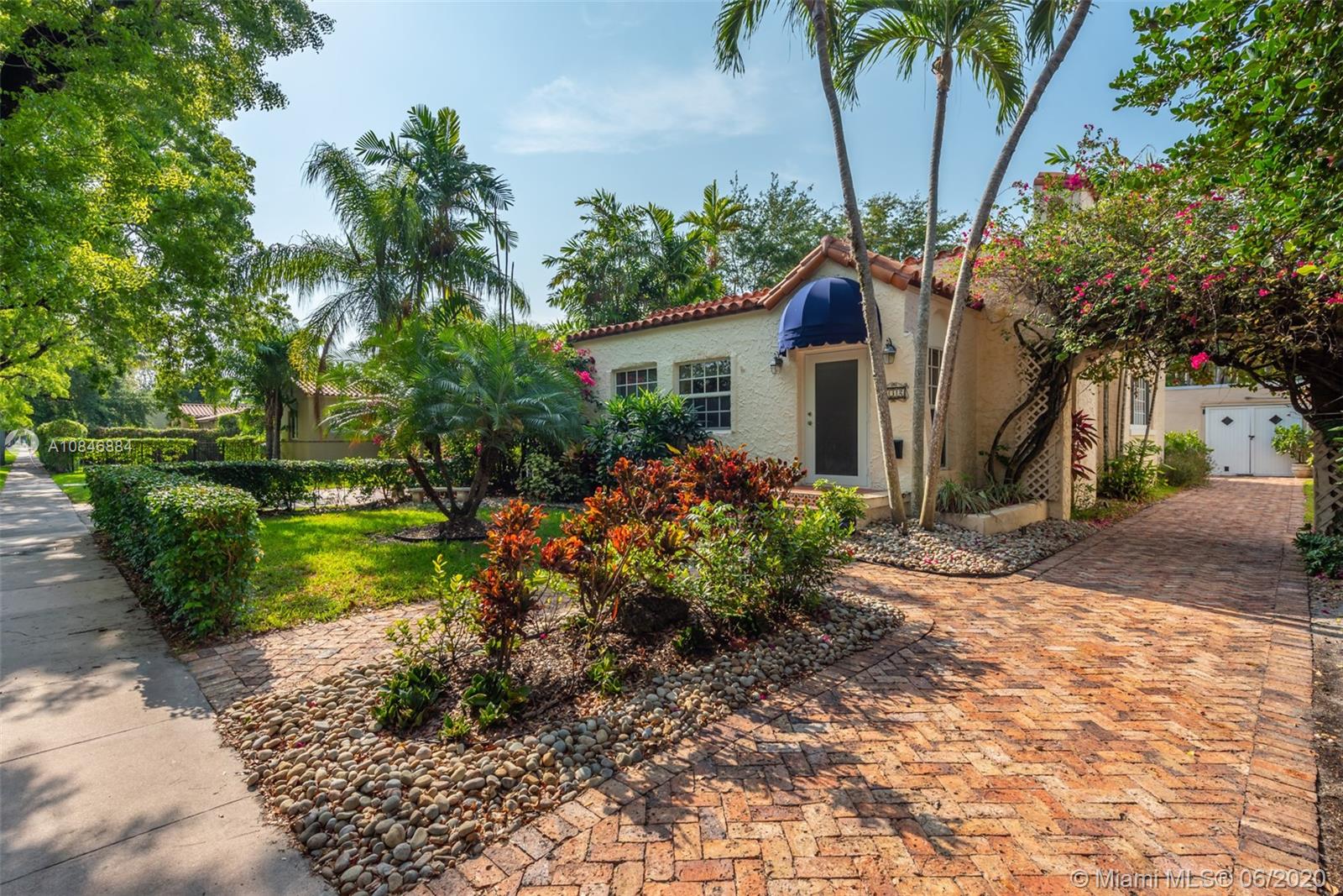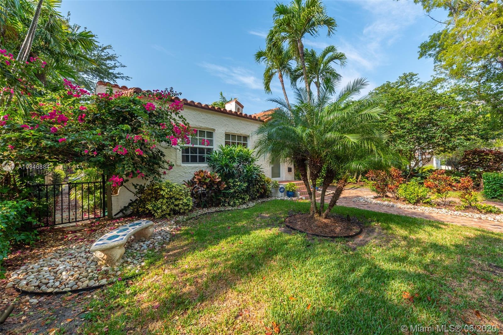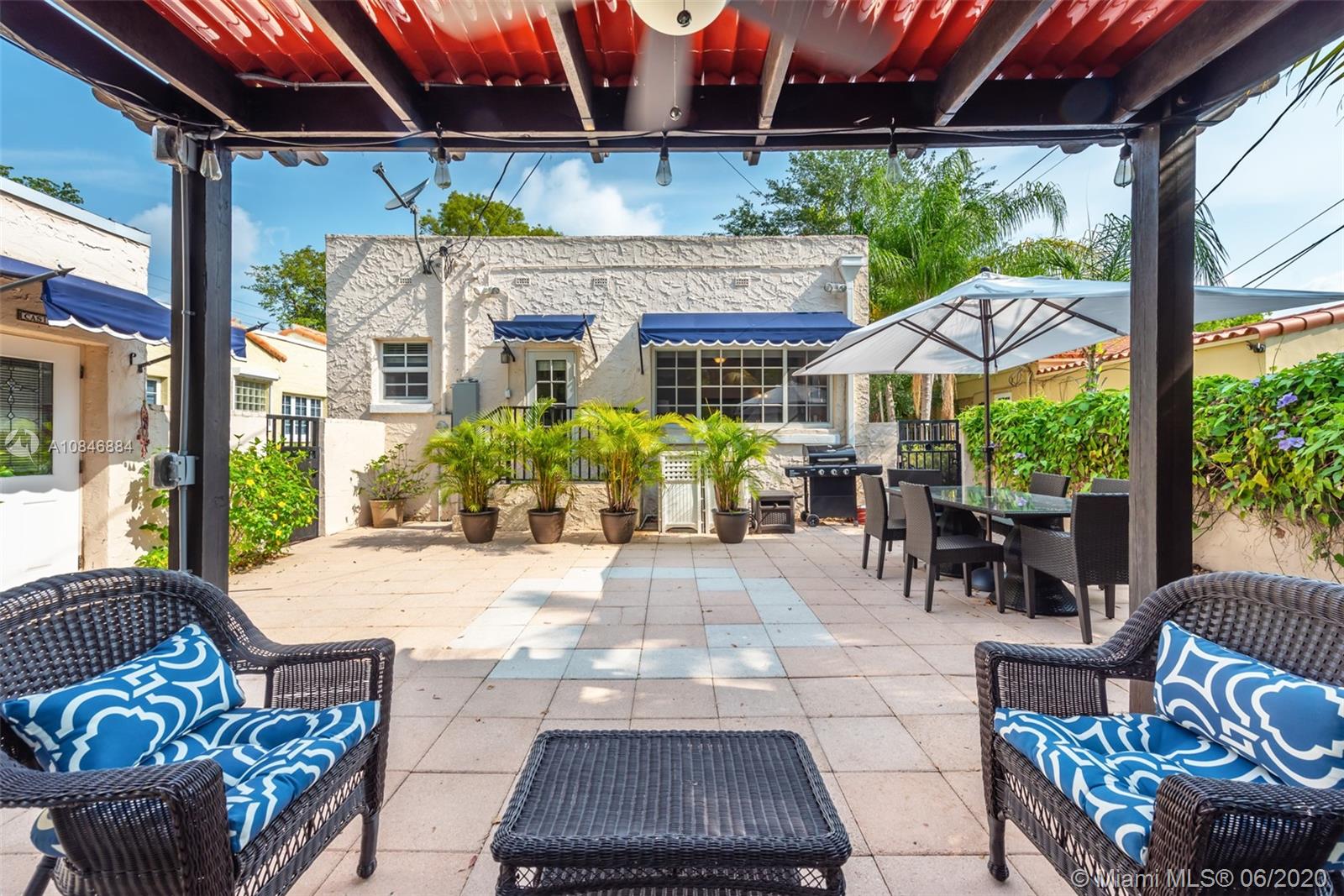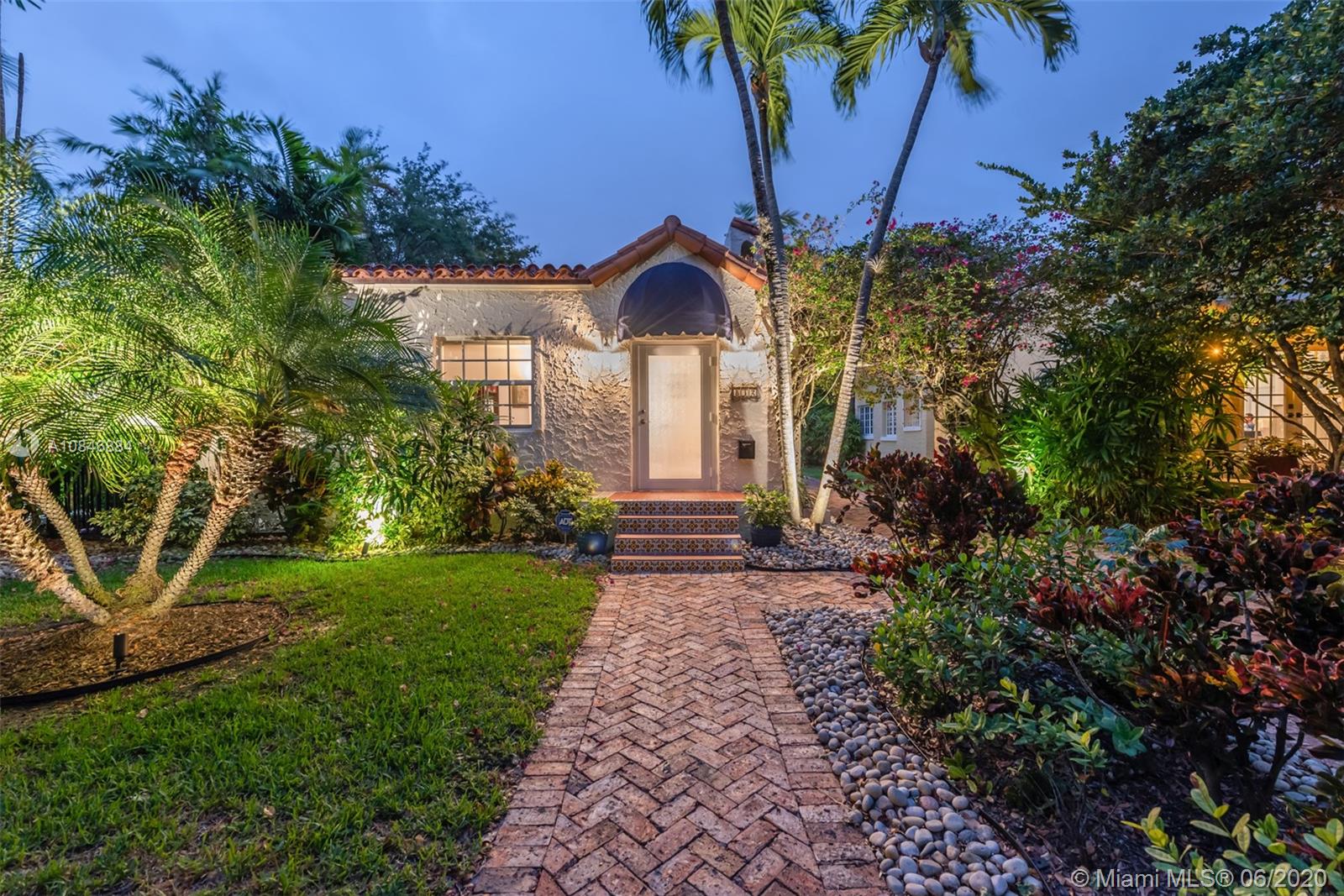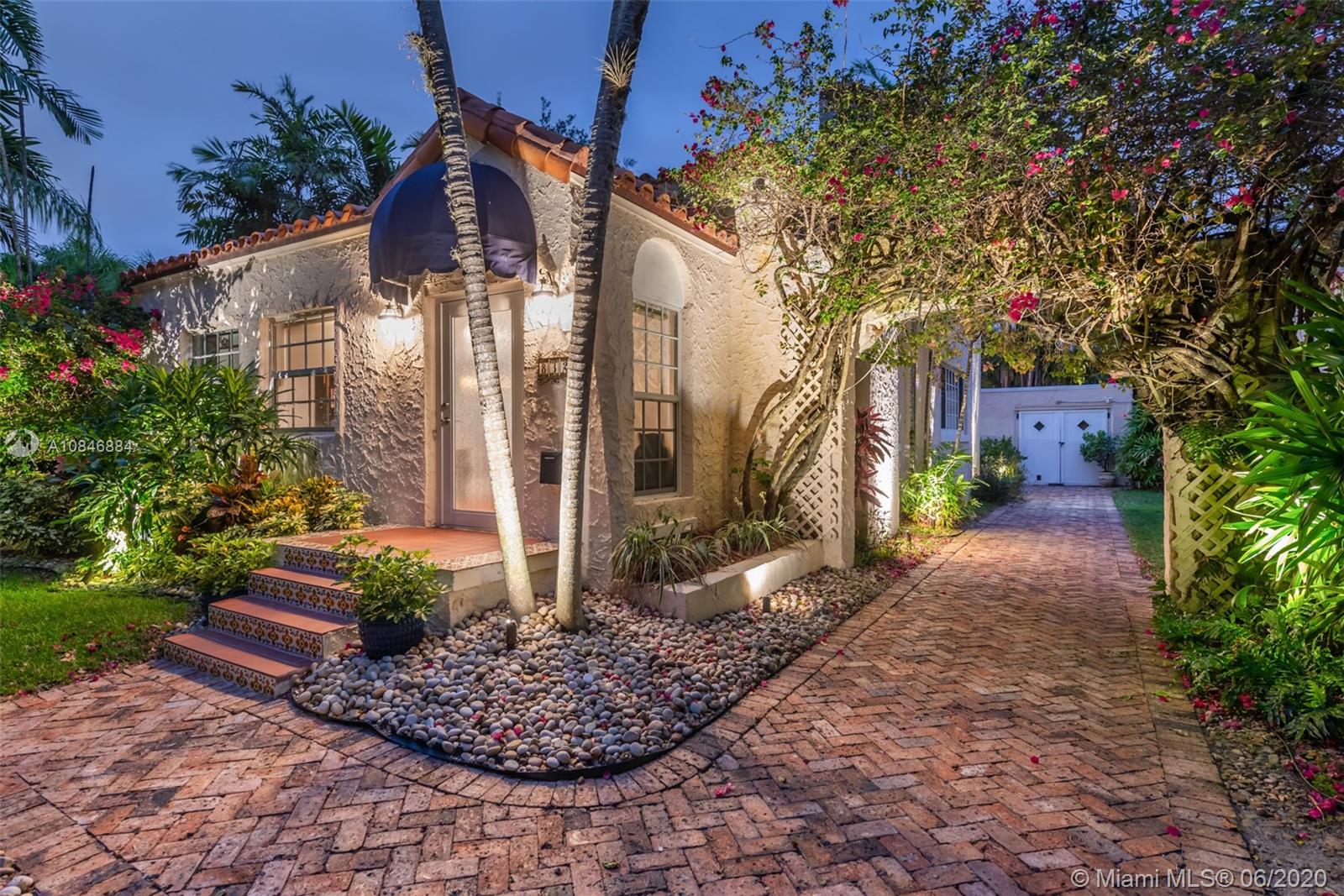 Undeniable Coral Gables charm. Steps from the Granada Golf Course, this beautiful 2/2 home with 1/1 guest cottage offers oversized impact windows and doors, Brazilian cherry wood floors, custom cabinets, and built-ins throughout, updated electrical and plumbing, sewer, new tankless water heater, new roof and completely re-built guest house. Historic arches, French doors and wood-burning fireplace have been perfectly preserved. Inviting backyard patio includes pergola with outdoor fan, cafe lights mature landscaping and lighting, and iron gates. Guest cottage has full bath and own A/C unit.