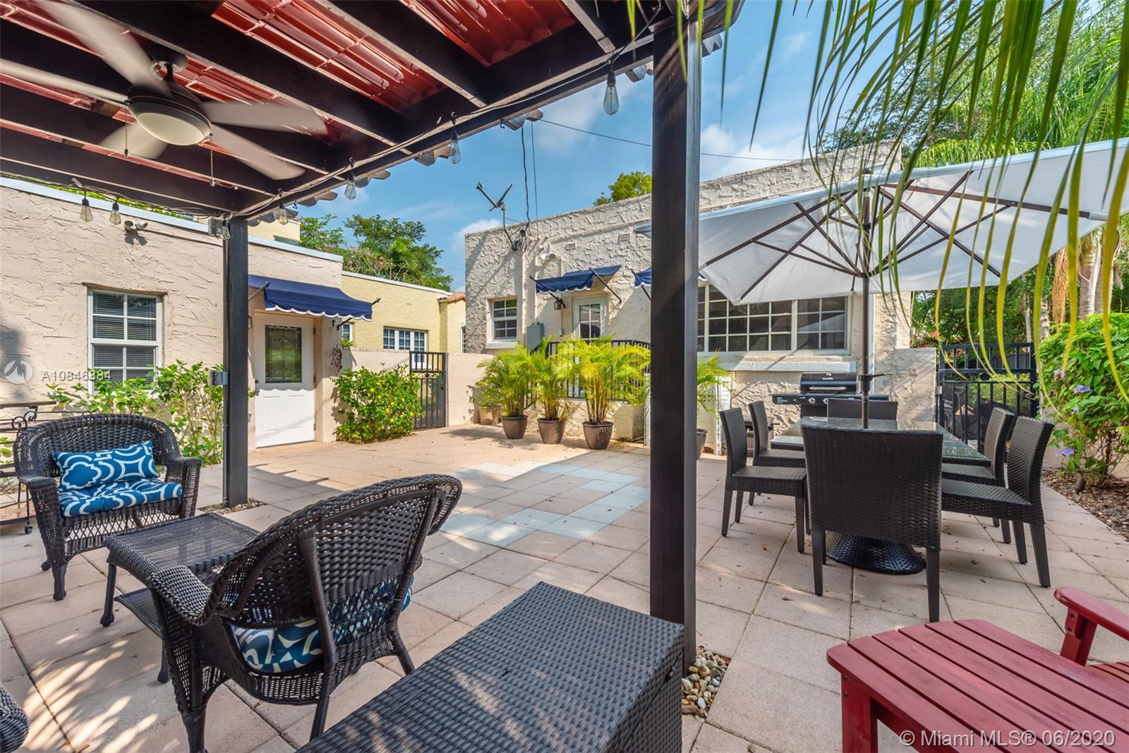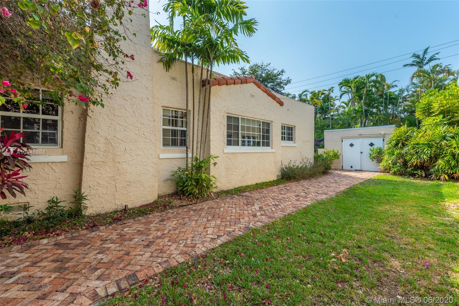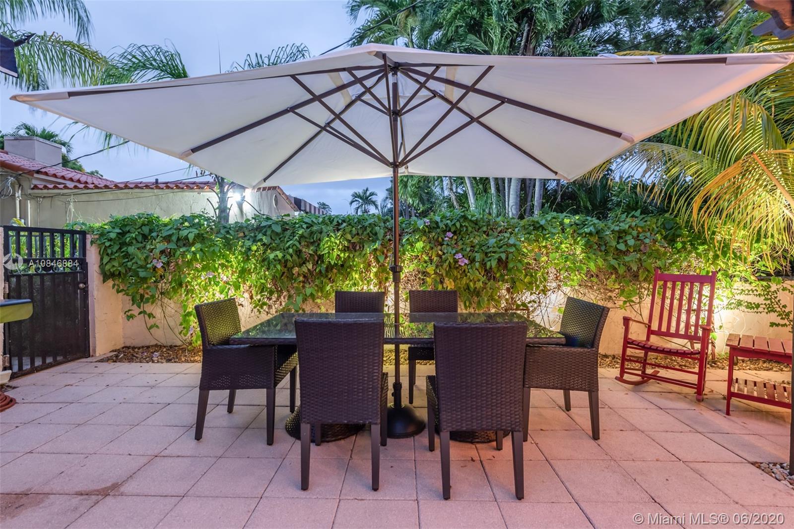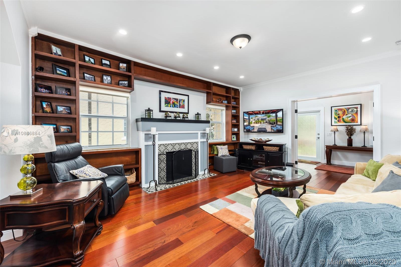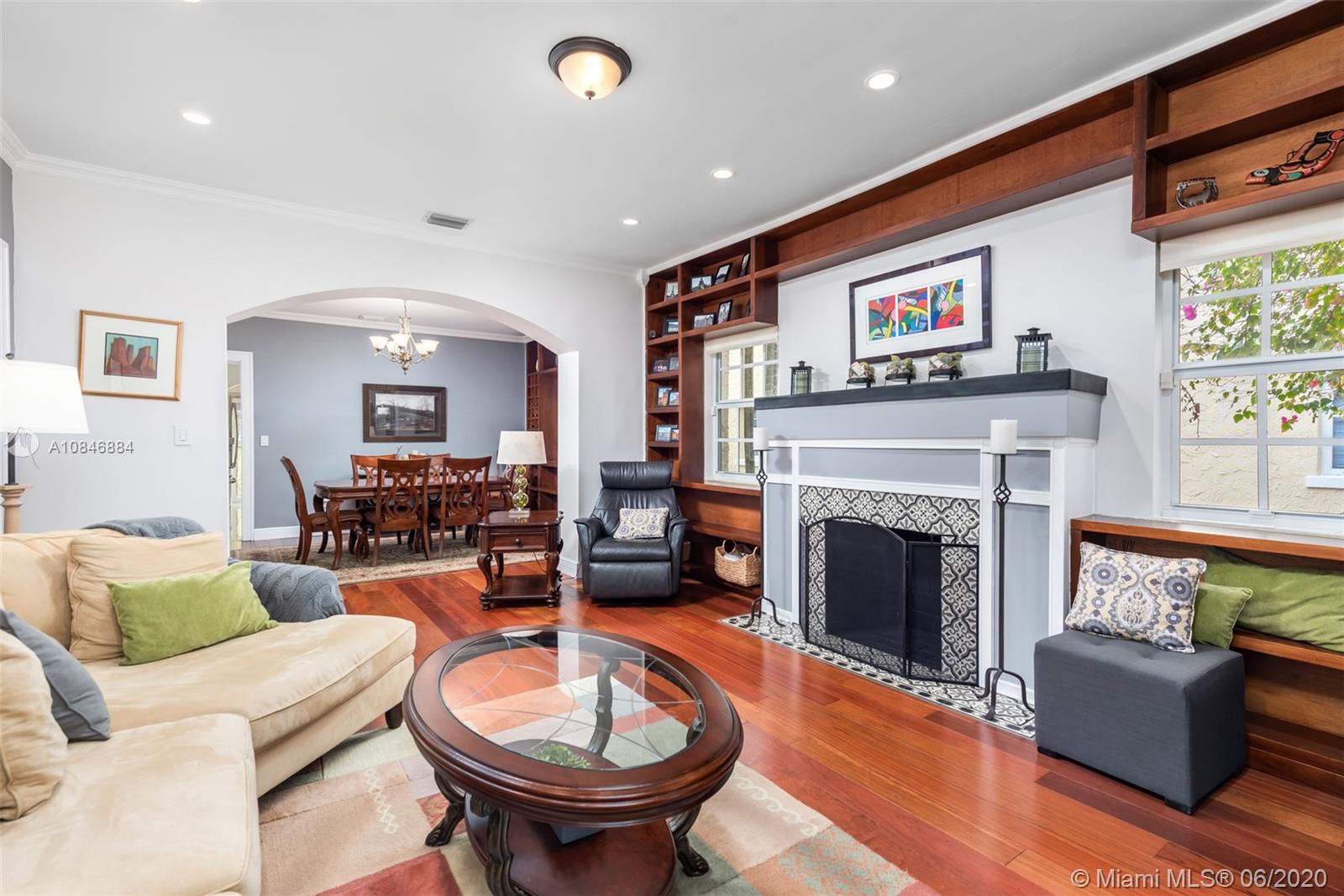 Undeniable Coral Gables charm. Steps from the Granada Golf Course, this beautiful 2/2 home with 1/1 guest cottage offers oversized impact windows and doors, Brazilian cherry wood floors, custom cabinets, and built-ins throughout, updated electrical and plumbing, sewer, new tankless water heater, new roof and completely re-built guest house. Historic arches, French doors and wood-burning fireplace have been perfectly preserved. Inviting backyard patio includes pergola with outdoor fan, cafe lights mature landscaping and lighting, and iron gates. Guest cottage has full bath and own A/C unit.