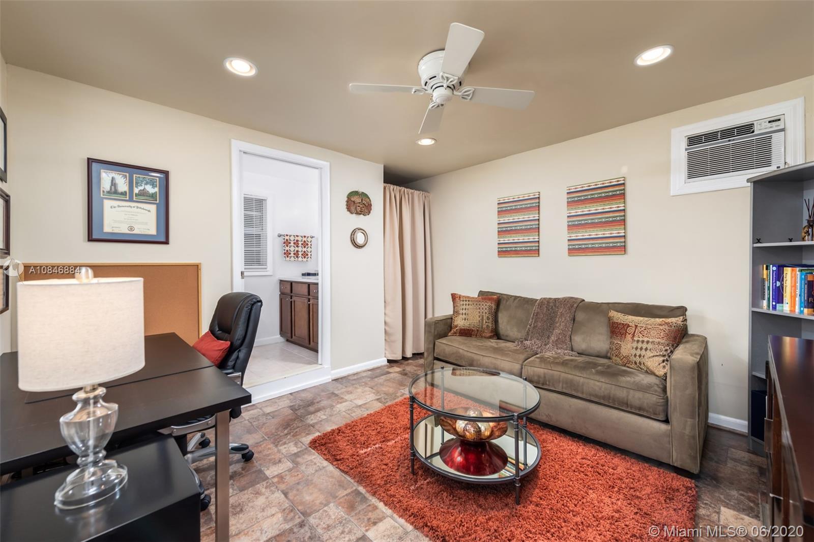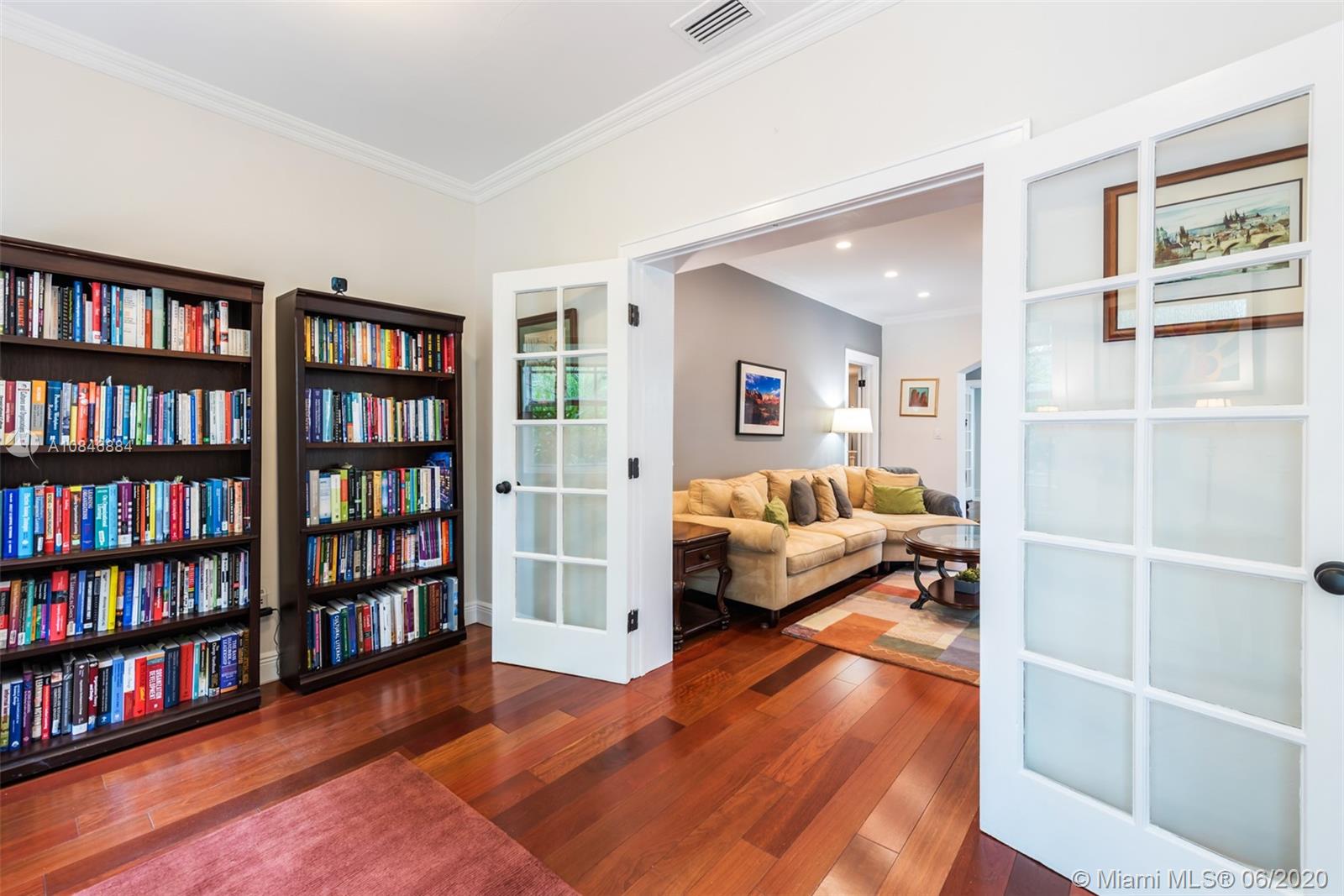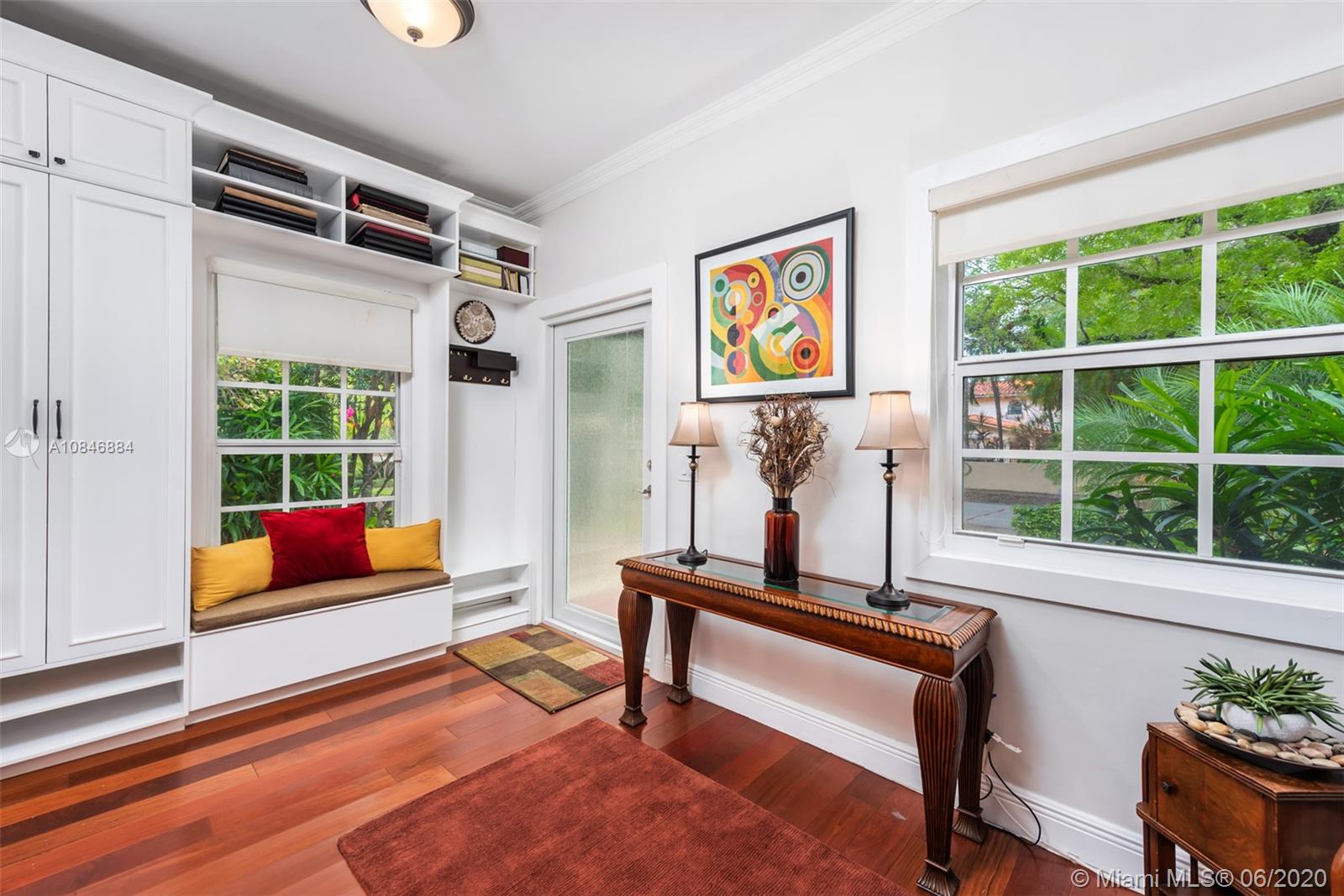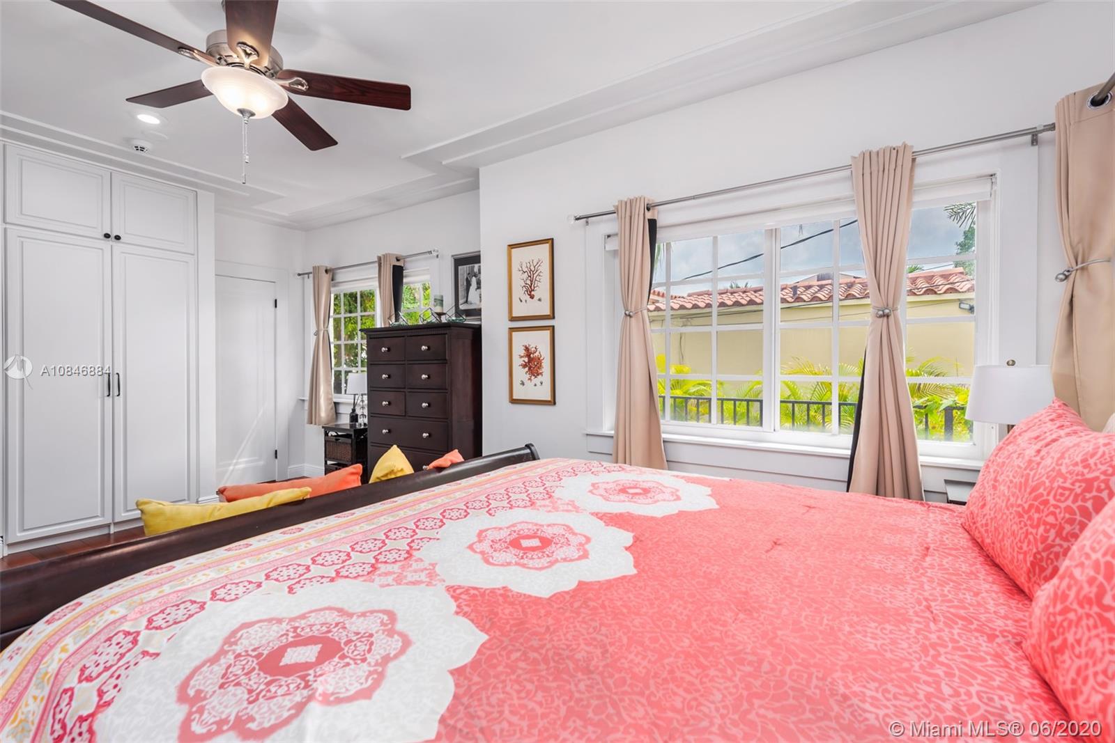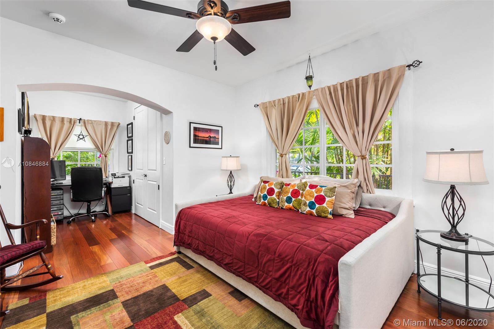Undeniable Coral Gables charm. Steps from the Granada Golf Course, this beautiful 2/2 home with 1/1 guest cottage offers oversized impact windows and doors, Brazilian cherry wood floors, custom cabinets, and built-ins throughout, updated electrical and plumbing, sewer, new tankless water heater, new roof and completely re-built guest house. Historic arches, French doors and wood-burning fireplace have been perfectly preserved. Inviting backyard patio includes pergola with outdoor fan, cafe lights mature landscaping and lighting, and iron gates. Guest cottage has full bath and own A/C unit.