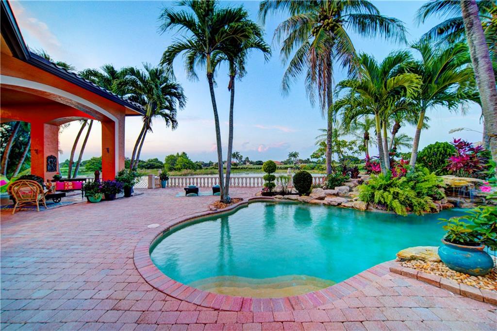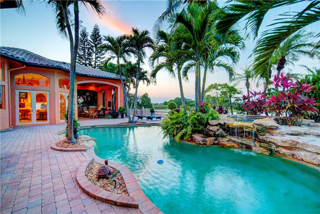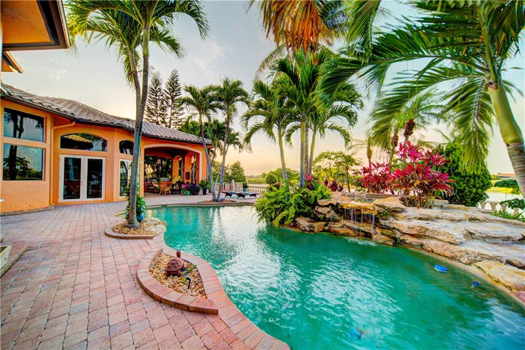 Welcome To The French Chateau In The Falls At Heron Bay! Luxurious European Style Home In The Exclusive Double Gated Community. This Grand Home Features 4 Bedrooms + Office, 3 Full/2 Half Baths, Impact Windows & A Custom Pool w/Rock Waterfall Overlooking 110 Feet Of Amazing Golf & Lake Views! An Architectural Masterpiece w/Marble & Wood Floors, Crown Molding, 20 Foot Trey Ceilings, Wood Burning Stone Fireplace & A Custom Wet Bar w/Wine Fridge. Downstairs Master Suite w/Built-In Closets, His & Her Vanities, Walk-In Shower, Whirlpool Spa Tub. Open Kitchen w/New Viking Appliances, Farmhouse Sink, Walk-In Pantry, Refinished Wood Cabinets & Granite Countertops. Breathtaking Views, Extended Lanai, Summer Kitchen, Custom Stone Balustrade & New Landscaping, & Resort Amenities & A-Schools.