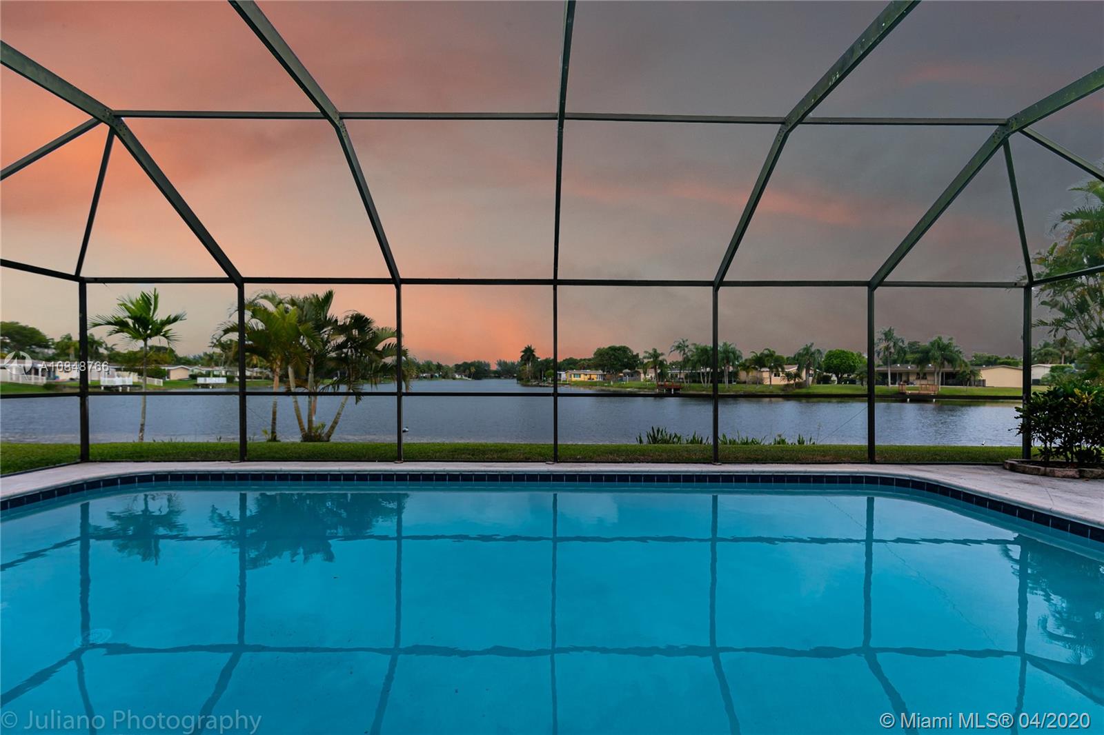 Captivating Ranch Pool Home with breathtaking lake views located in the desirable Pembroke Lakes, this home features 3 bedrooms and 2 bath, formal dining and living area overlooking the pool and beautiful lake. The ample kitchen has a built-in microwave, double oven and gas stove, all appliances are under a transferable home warranty. ROOF was recently replaced in 2017, air conditioner and water heater from 2010. Home protected with impact windows and sliding doors. Inviting family room with a real fire place, perfect to relax or for family gathering.
