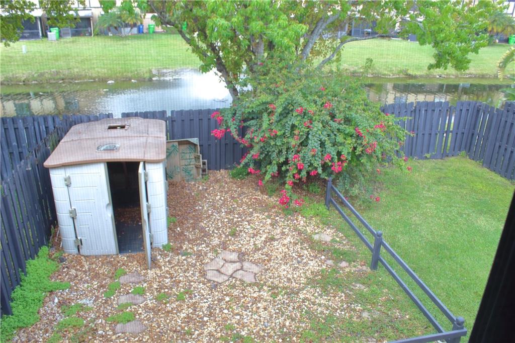 Rarely Available 3 Bedroom, 2.5 Bath end unit in Kingsley Commons. Exterior features include a tiled patio, an oversized fenced backyard facing the water, (2) storage sheds, (3) designated parking spaces, accordion shutters on all windows/sliding glass doors and a hard-wired color video surveillance system with 4 cameras covering all sides of the exterior of the home as well as the front door. The exterior of the home, fence, and portions of the interior have been recently painted. Interior features ceramic tile throughout, separate laundry room, a Nest thermostat, and a peaceful fountain view from the master bedroom. Low HOA of $120/month. Only 5 minutes from the Sawgrass Mall & all that it has to offer and just 10-15 minutes from the Sawgrass expressway, the turnpike, and I-595.