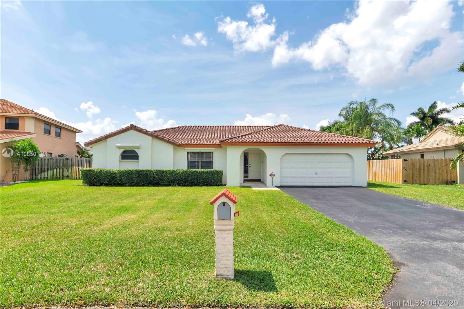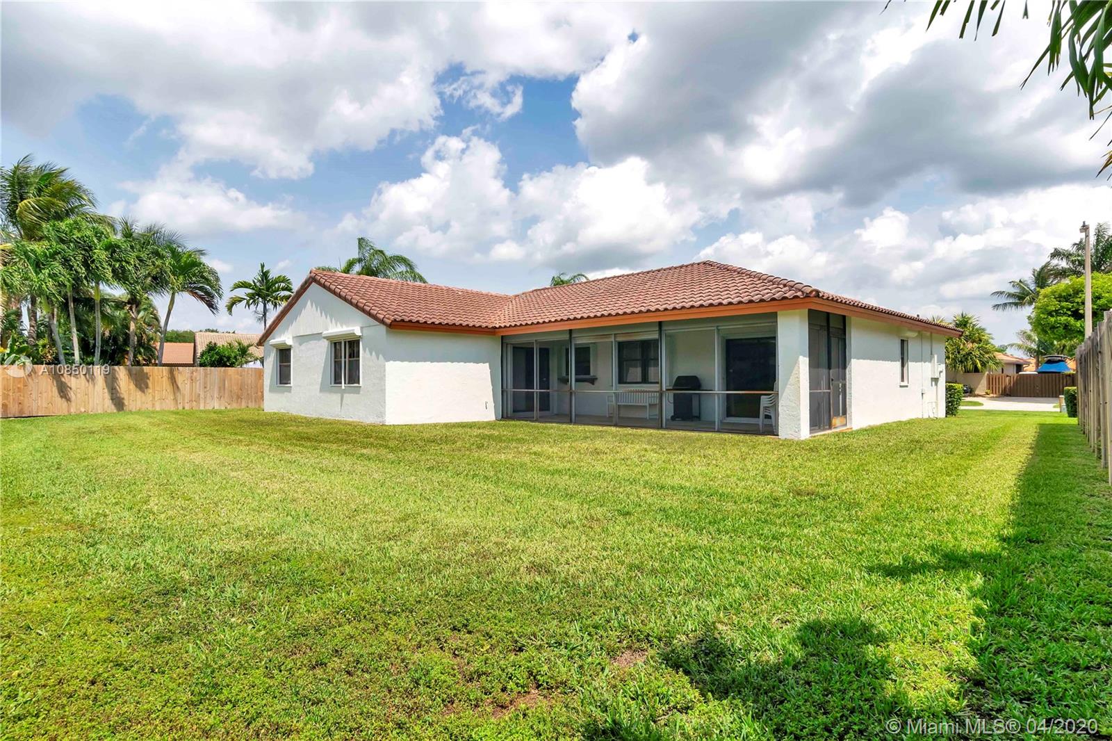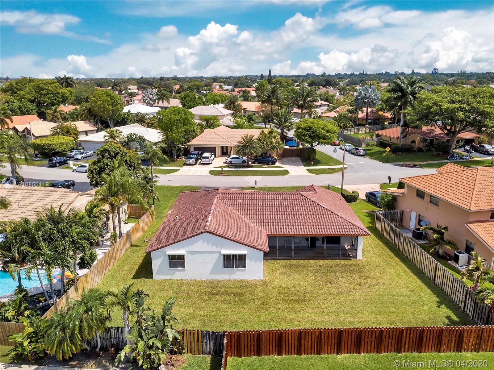 EXCEPTIONAL move-in ready 3 bedroom/2 bath home with vaulted ceilings, split bedroom plan, walk-in closet in master and deep closets elsewhere, spacious master bedroom, accordion shutters in back of house; dual sinks in master bath; entertain easily in the screened-in patio & large family room; deep driveway has space for several vehicles; the oversized lot has plenty of room for a pool, garden and/or children's playground; yard sprinkler system uses well water for water bill savings; PREMIER address within the quiet & HIGHLY DESIREABLE Falcons Lea-Ivanhoe neighborhood, served by A rated schools; located near I-75, for easy commuting to shopping, entertainment venues & employment centers in Miami, Ft. Lauderdale and so much more. Low homeowners' fee of $355 annually.