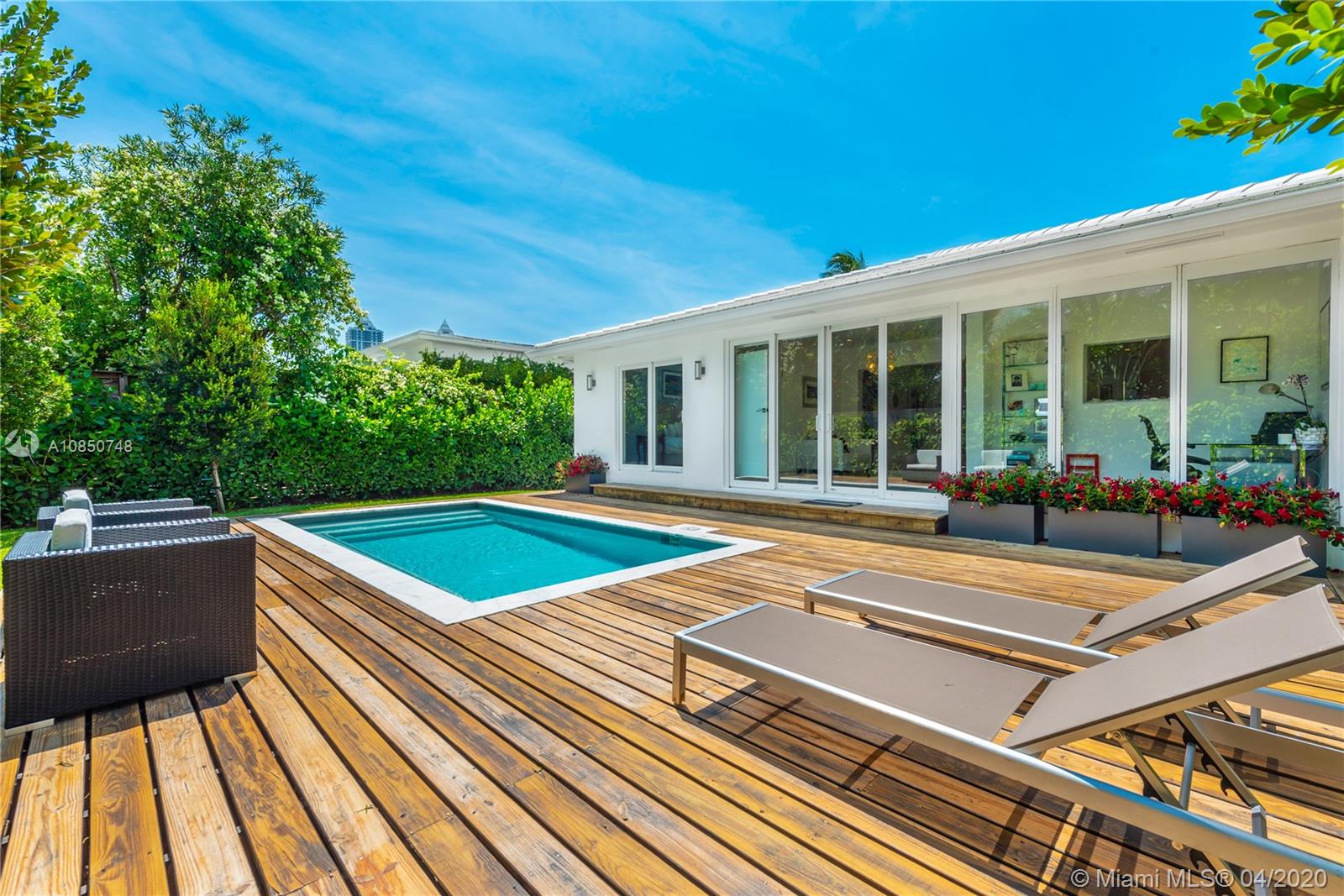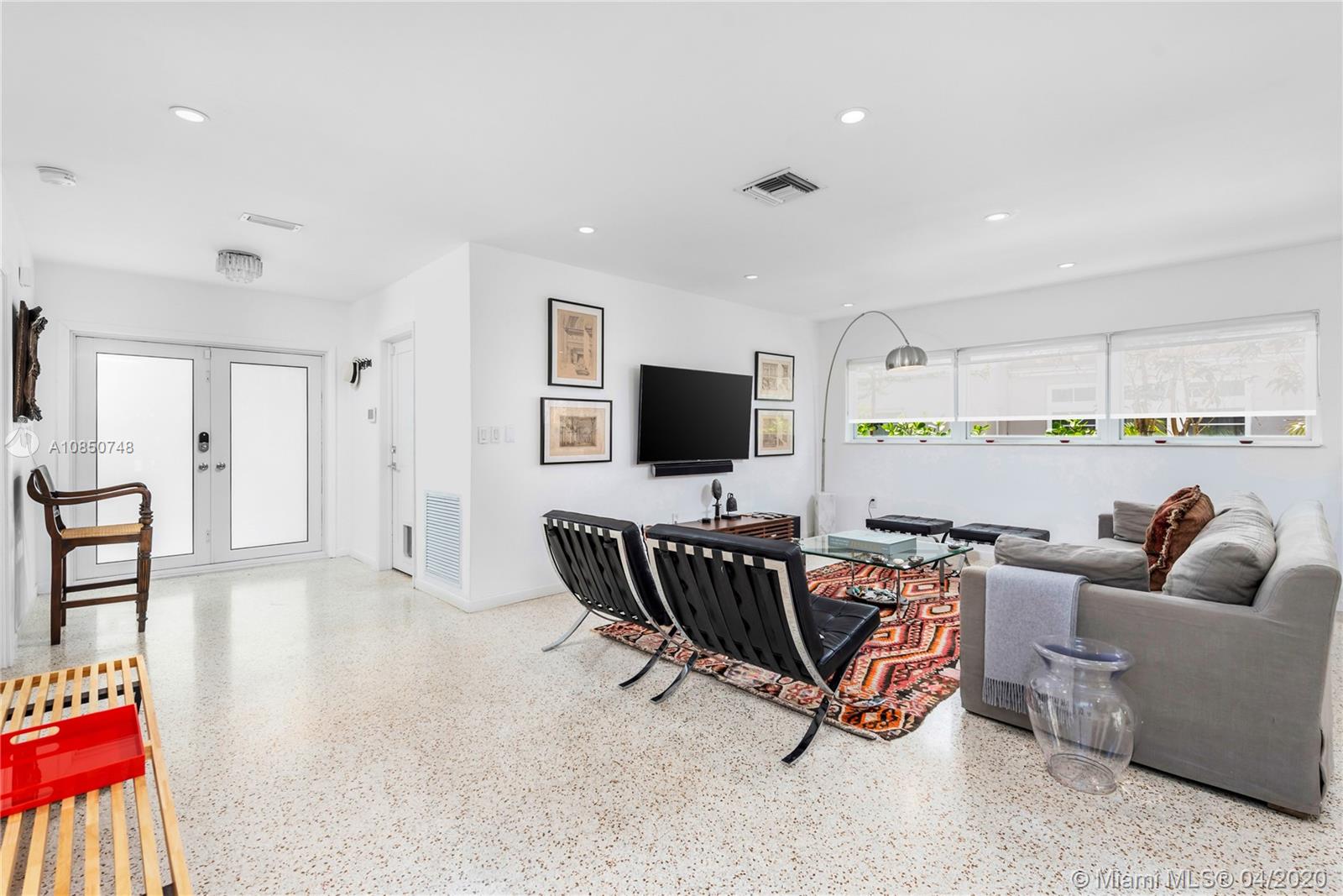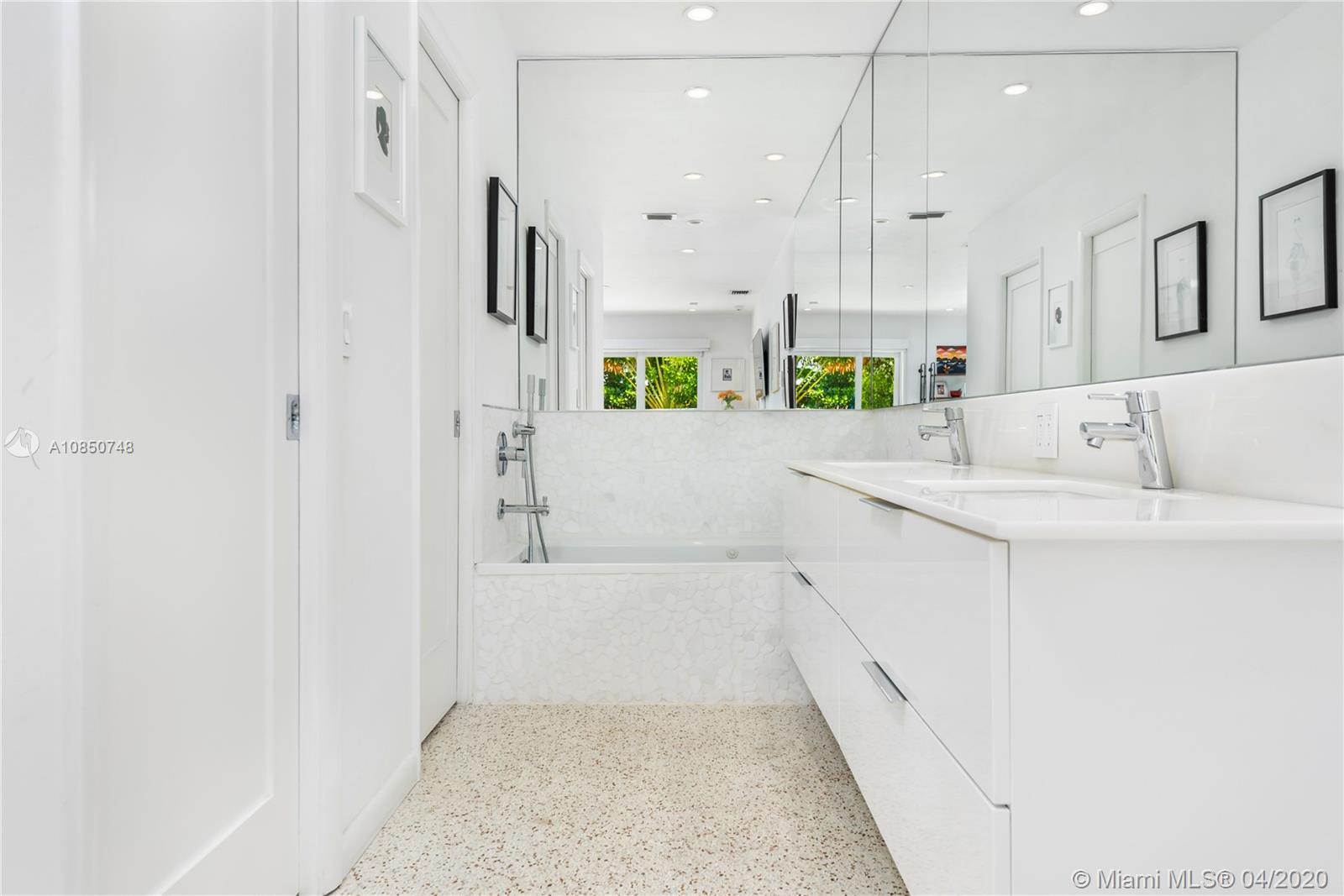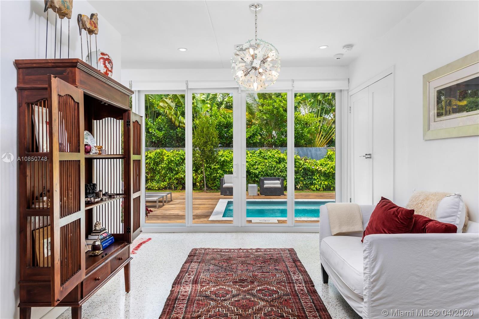 Contemporary Mid-Century pool home features light filled open-concept living with a museum-like aesthetic that resonates throughout. Flowing grand living spaces showcase the ultimate curated gallery wall. Brilliant terrazzo floors throughout contribute to the airy ambience. Modern eat-in kitchen offers Carrera marble counters & S.S. appliances w/ gas stove & custom cabinetry. Tropical landscaping hedges a private & tranquil backyard oasis w/ pinewood deck & white Thassos Marble Pool. Family friendly split floor plan + separate office/den. 1 car garage offers built in storage & laundry. Other features include, new roof, high impact glass windows & doors. Located on the best street in coveted Lakeview neighborhood.