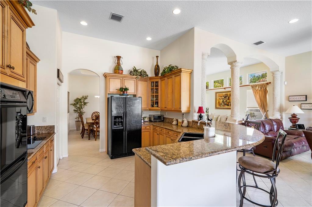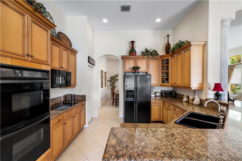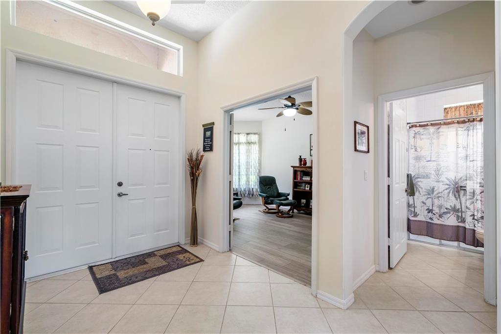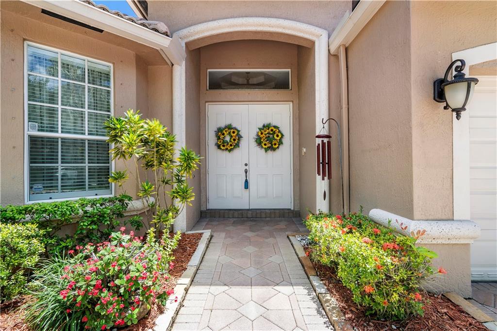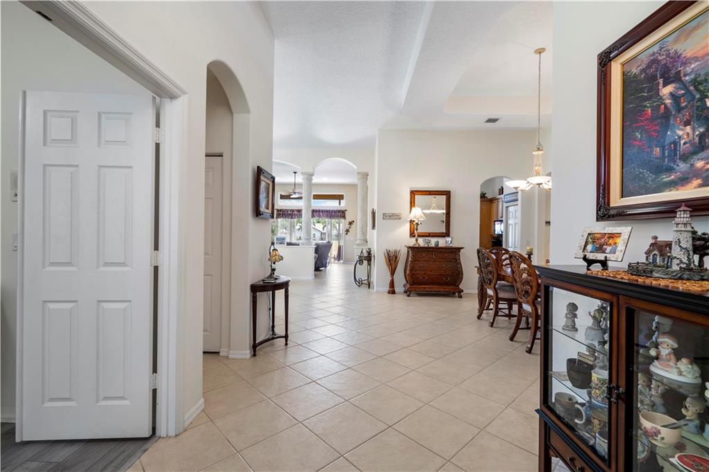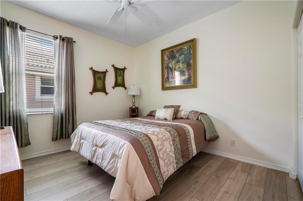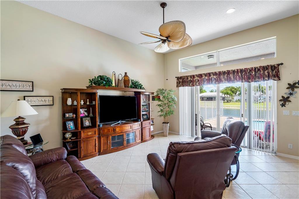 Beautiful and meticulously maintained home in Prestigious Grand Reserve on a waterfront lot. This home could easily be a 4 bdrm, converting the large den w/bay windows which makes it a triple split floor plan...brand new laminate wood floors in all bdrms, 3 full baths, open living area & spacious ,w/volume ceilings, kitchen has granite, double oven and overlooks peaceful pool area & lake, patio is shaded, fenced backyard, sprinklers pull from the lake, circular driveway, plenty of rm in the 3 car gar., can even fit a boat! hurr shutters, Resort style comm w/guard gate, clubhouse, pool, and centrally located.