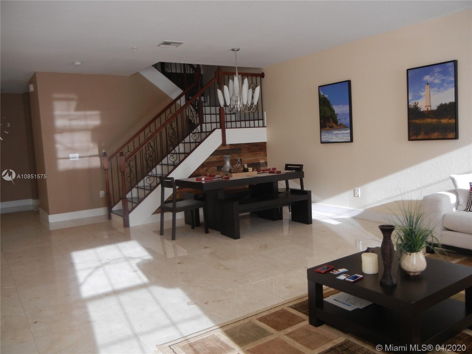 Beautiful Townhouse in Cobblestone, Pembroke Pines, 3 bedrooms 3 bathrooms. One bedroom on first floor. Totally upgraded. Wood kitchen cabinets. Marble floor throughout the house. High impact windows. Two car garage and street parking for guests. Gated Community with guard. Closed to restaurants and stores. Very well maintained house, you must see!!