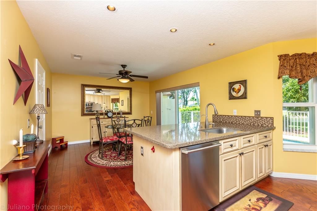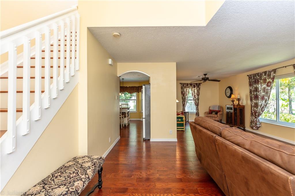 SEARCHING FOR THAT OVERSIZED WATERFRONT LOT? Well then look no further! At over 10,000 sq. ft. you will certainly have plenty of space to play! It doesn't end there, as you will be impressed from the moment you enter this immaculate & move in home. You will be instantly greeted w/ beautiful engineered hardwood floors throughout the downstairs. Like to cook? Well then no need to update the kitchen as it has already been done for you with high quality wood cabinets, stainless steel appliances, quartz countertops & a glass tile backsplash. Ready to relax then take a step out to the new paver patio, take a dip in your splash pool & enjoy the open space & lake views! If that is not enough the entire home has impact windows & doors plus accordion hurricane shutters. All 4 bedrooms are upstairs.