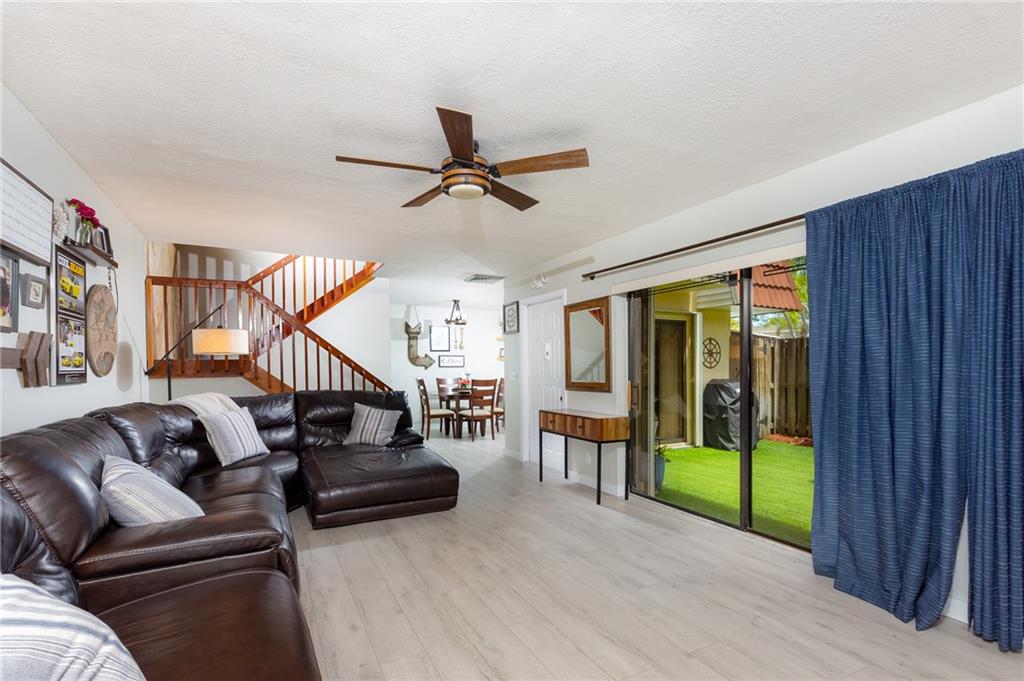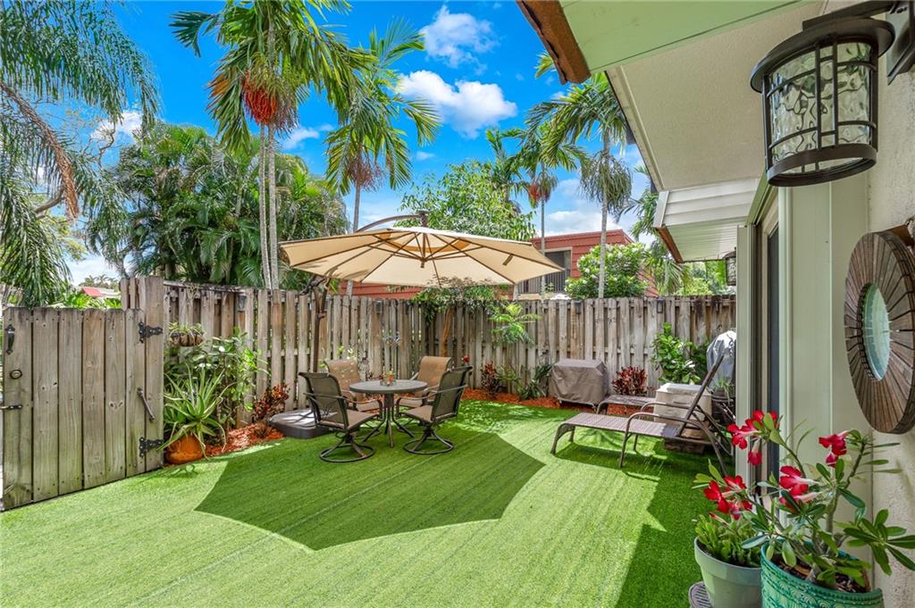 Bring your toothbrush and you are set to move into this tastefully appointed 2 bed 2.5 bath townhouse in the Waterford Courtyards in Plantation. This unit has been impeccably maintained and partially updated and features beautiful new laminate flooring on the ground floor, carpeted stairs and bedrooms on the second floor. Beautiful courtyard with an easy to maintain and very comfortable artificial lawn covering. Accordion shutters for all windows and doors and a NEW ROOF in 2020 HOA includes Building Exterior, Fence, Pool, Basic Cable, and all common grounds. Great location in central Plantation, close to shopping, major highways, Central Park and a variety of dining options.
