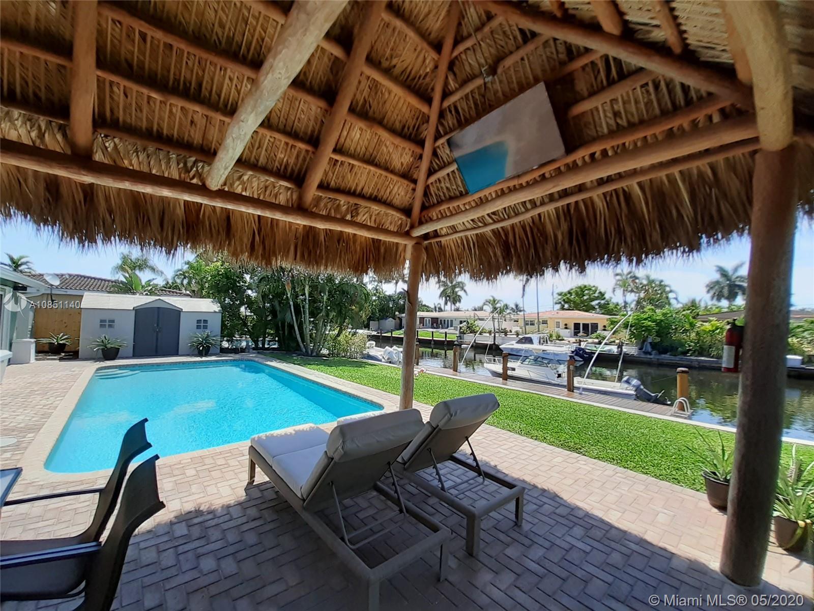 Boaters dream home! Perfectly priced with breathtaking water views and your own luxury dock for fishing. Huge pool and a lovely cypress log Tiki Hut, featuring a large screen tv and a full Bose surround sound system, perfect for entertaining! Move-in ready, this well-maintained home features new impact sliding doors and a beautiful open floor plan. Master bedroom oversees the pool and the dock. Tankless gas water heater for the entire home. Full house gas generator installed. The dock has water & 30 amp service, and a commercial ice machine. LED lighting along seawall. Beautiful large pool with saltwater system. Two sheds for plenty of storage, both sides of the house have a wooden closed fence for total privacy. Kitchen and bathrooms have been upgraded. No HOA for this beautiful property.