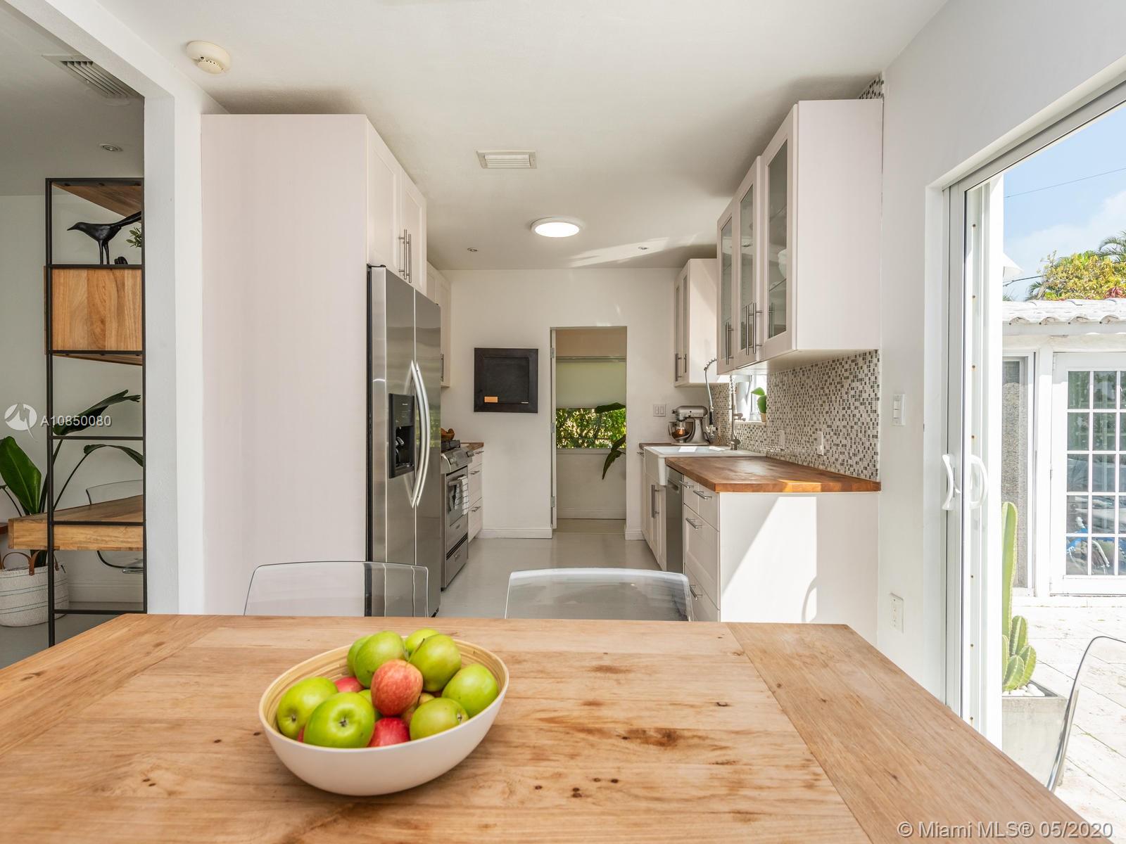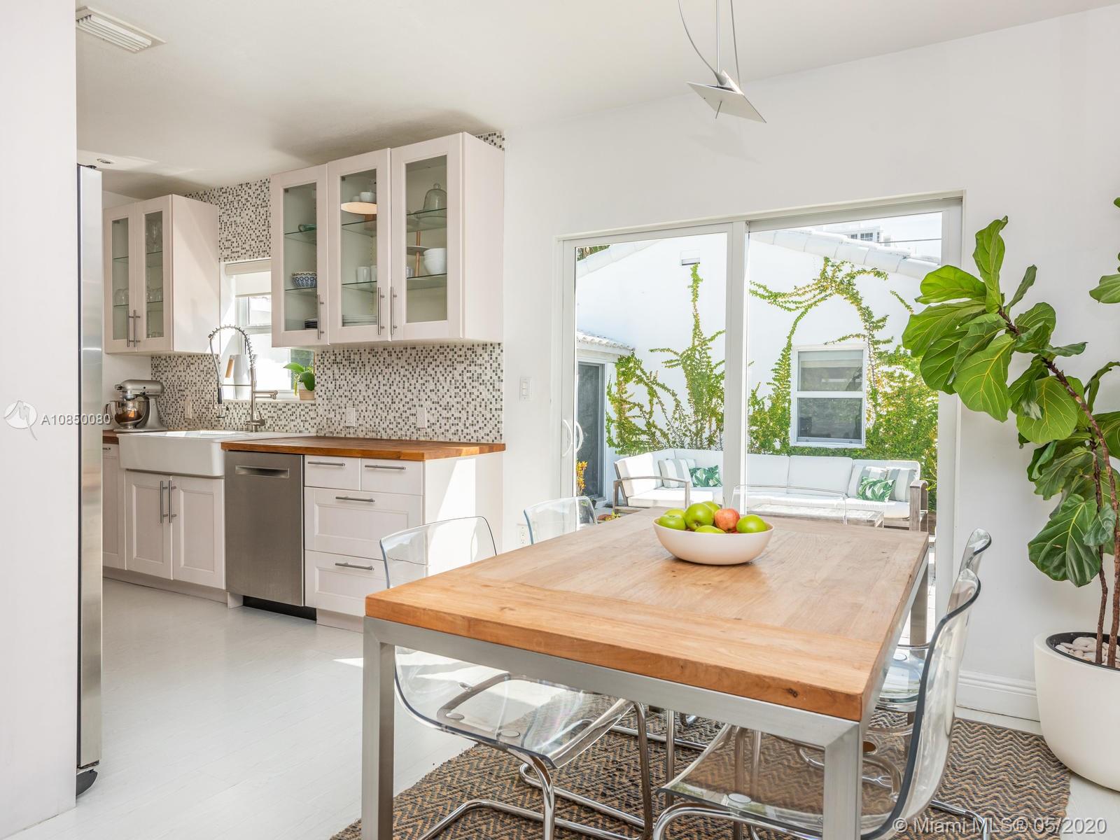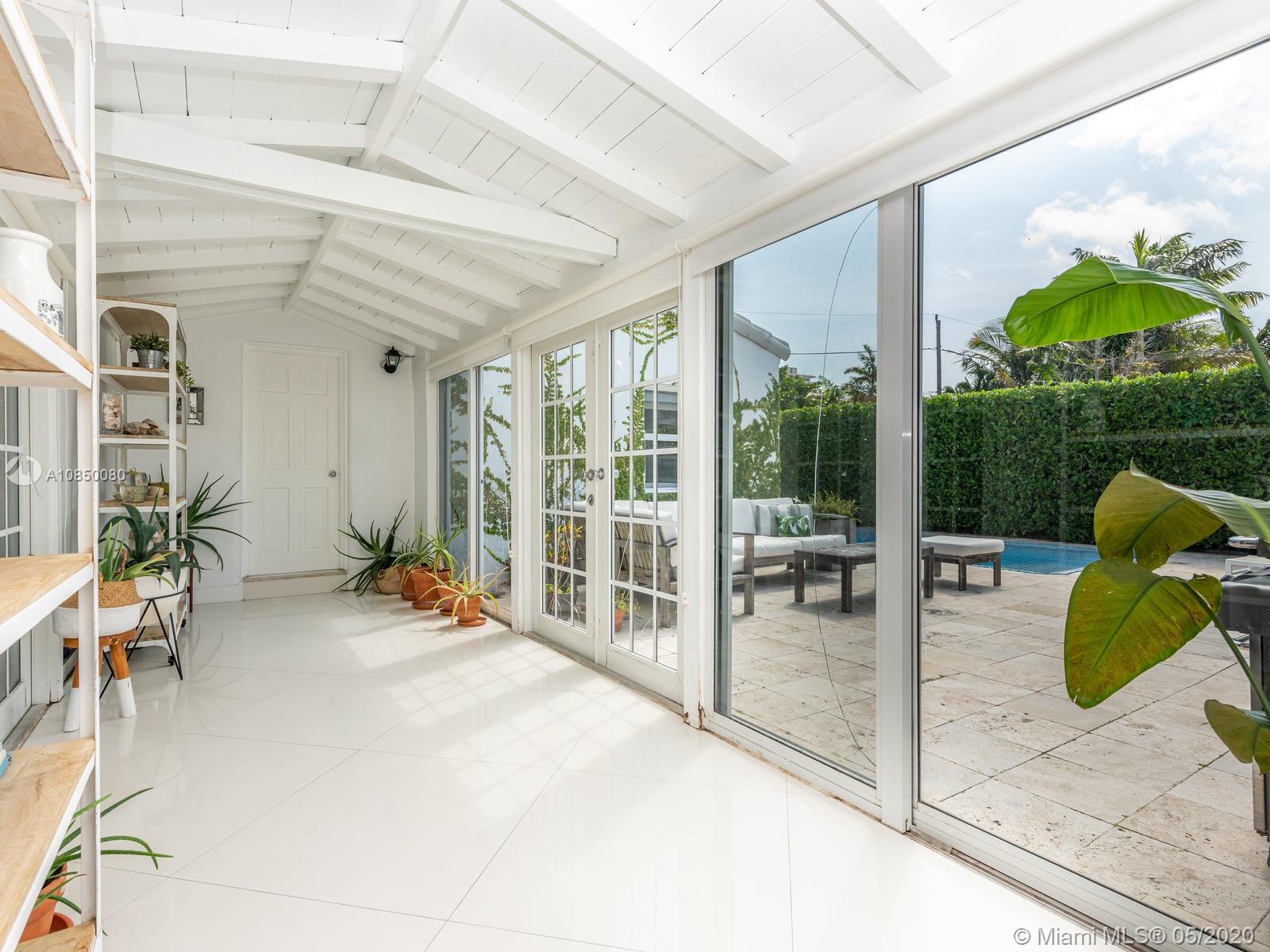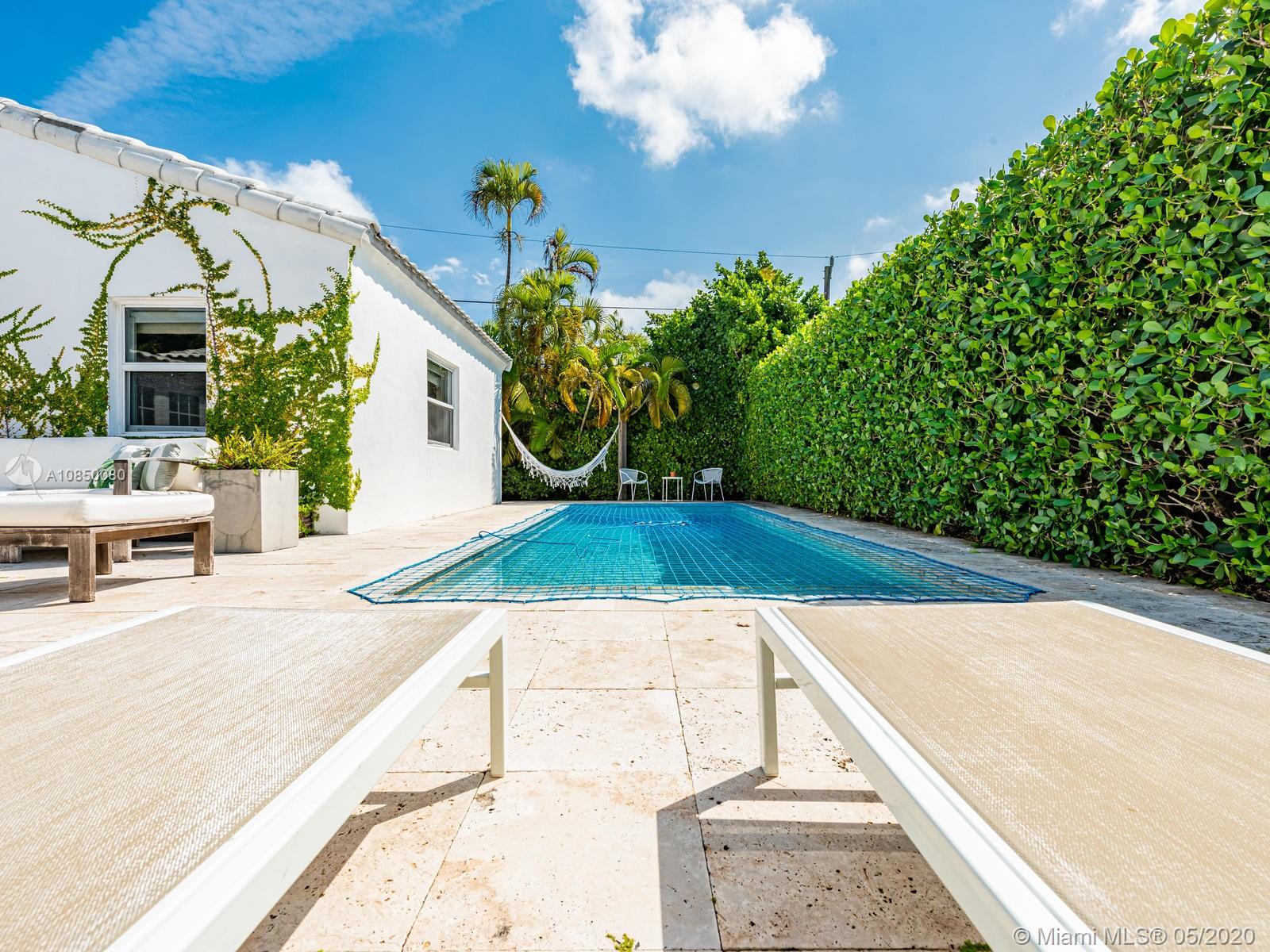 Renovated 3/2 beach home + converted garage. Tons of storage. Open kitchen w/Kitchen Aid and Bosch Stainless Steel appliances, gas stove, 2 updated bathrooms. Very large master bedroom with en suite bathroom and walk in closet. Master bath has separate tub & shower. Impact windows through out, dedicated laundry room, new central 3.5 ton A/C installed in 2018 with 7 years of warranty remaining . Enclosed private backyard with pool and mature lush landscaping. Outdoor shower. Most desirable block in Surfside: dead end street, 1 block away from Publix, and Harding Ave shops and restaurants, 1 block from Town Hall and police station, 2 blocks from Community Center and beach. Walking distance to Bal Harbour Shops and Restaurants.