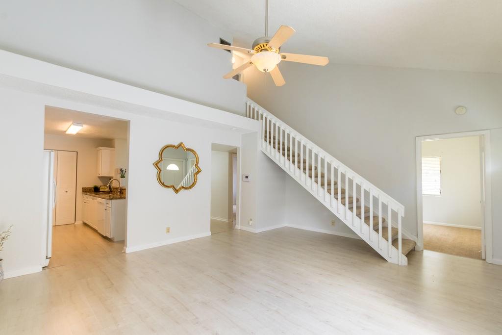 Beautiful townhome fully cleaned and sanitized ready for a new buyer to make this townhouse their home. View this home virtually in 4k video wide view or in person as a private showing! Enjoy your open floor plan, vaulted ceilings, perfect for entertaining with a gorgeous remodeled kitchen with granite counter tops, newer appliances, breakfast area and formal dining room. NEW interior painting throughout the home, AC unit 2014, NEW carpet in bedrooms, NEW beautiful laminate flooring, HUGE master bedroom and closest. Conveniently located within minutes from Publix, swagrass expressway, Swagrass mall, Civic center, police department, Aquatics Complex, Library, and walking distance from Welleby, community pool recently resurfaced! Low HOA $135/month, FHA, VA, and Conventional loans