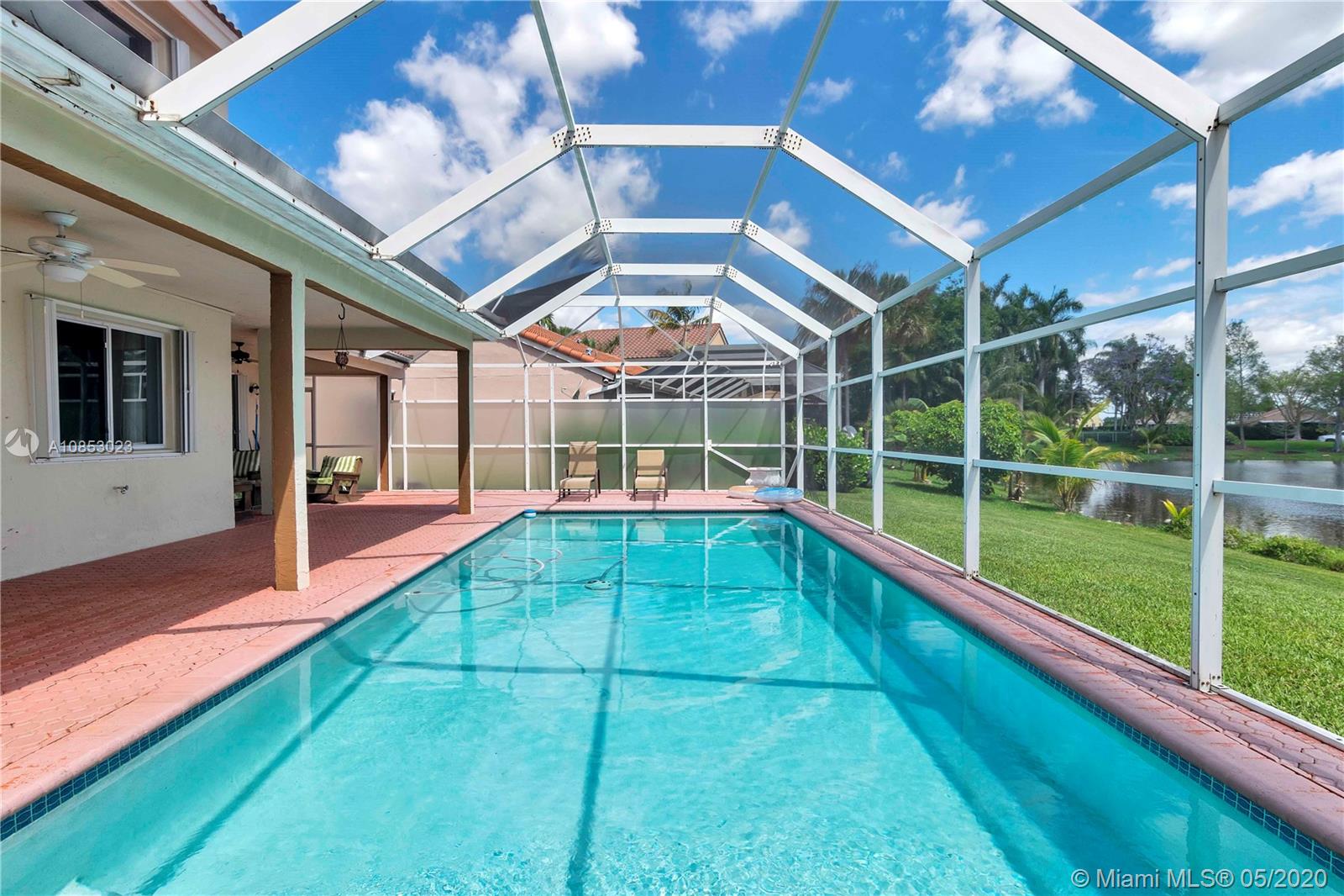 Superb 5 Bedroom, 3 Bath, waterfront pool home in gated Chapel Trail Estates. Gorgeous pool, lake views from almost every room, partially covered, fully screened patio, pool, tropical paradise. Remodeled kitchen, baths, premium flooring, lighting. Huge kitchen, quartz counters, newer stainless steel appliances, walk-in pantry, lots of storage. 1 bedroom/office and full bathroom downstairs. 1 car garage converted to extra storage rm, easy convert back to 3rd car garage. Solar pool heating system keeps pool warm and comfortable all year around and saves thousands on energy bill. Very quiet and safe neighborhood. Newer dual zone A/Cs. A+ Pembroke Pines schools, walk/bike to superb Chapel Trail Elementary. Close to shopping, dining and to I-75 and Hwy 27 for easy commutes in every direction.