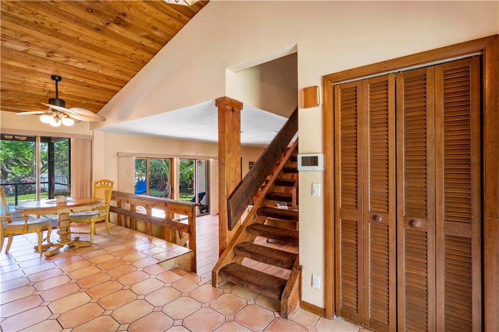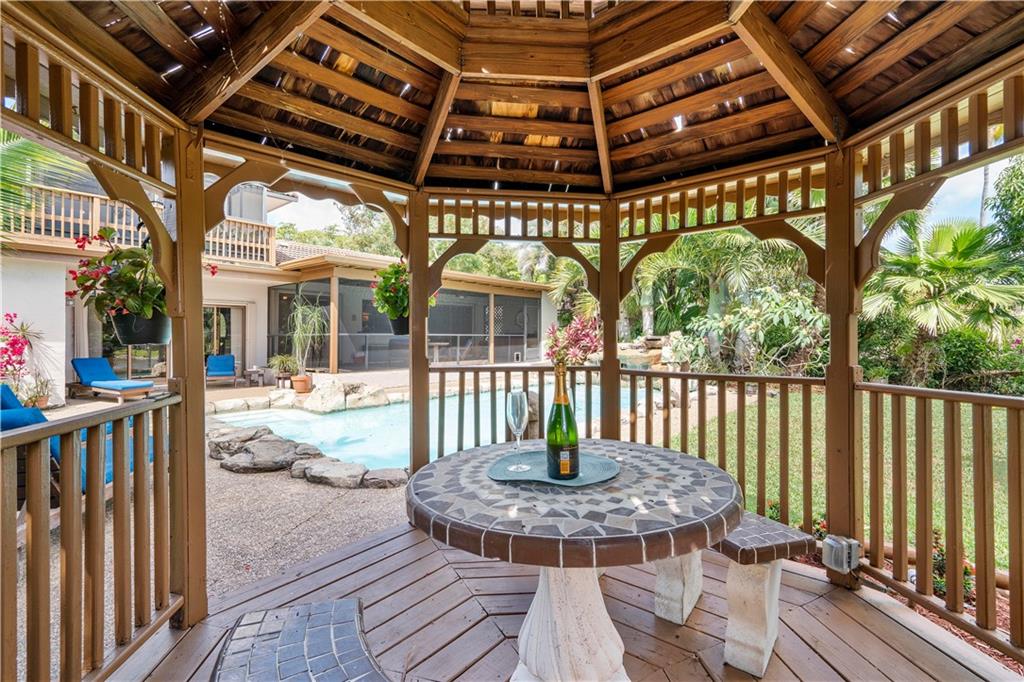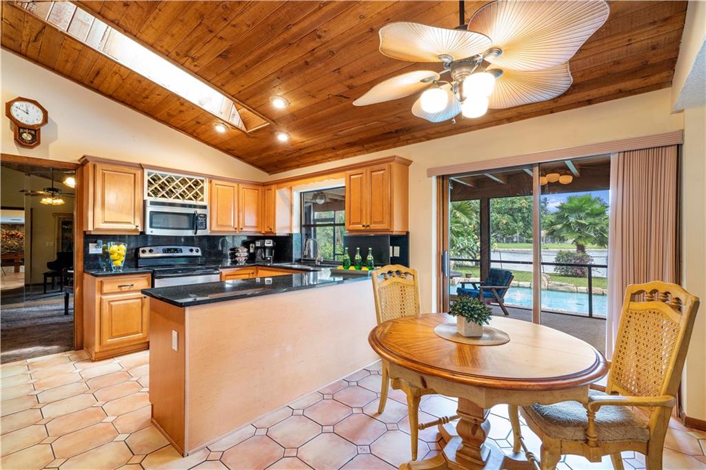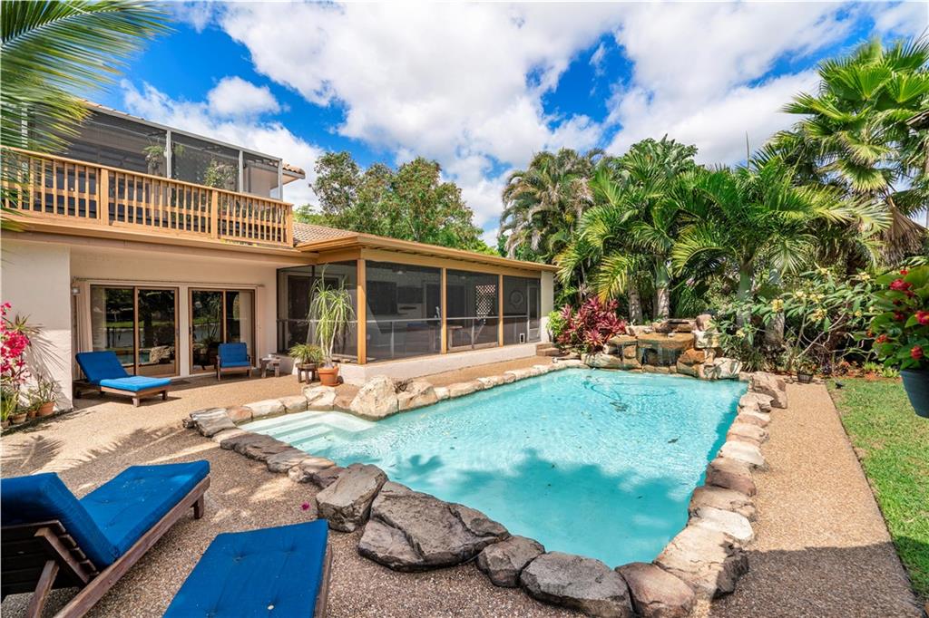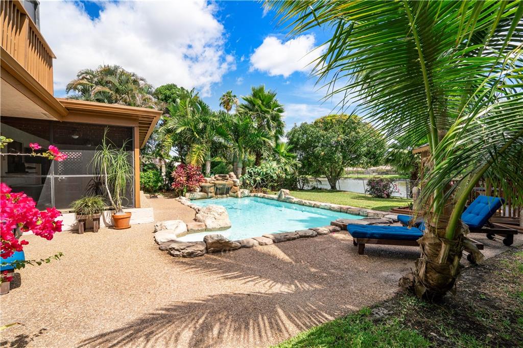 Welcome to your own tropical oasis! Custom-Built 2-Story waterfront home w/ Northern Charm in highly sought after Oak Wood! This 4 BR/3 BA/2 Car Gar, Pool Home on 10,000+ SF lot feat: Expansive Lake Views, 2008 Roof, Newer A/C, Open Floor Plan, Beautiful Wood Vaulted Ceilings, Stone Wood Burning Fire Place, 1 Guest BR/1 BA on 1st Flr. Lrg master suite w/ private balcony overlooking the rock pool/waterfall, lake, & Fenced Backyard on 2nd floor w/ 2 add'l BRs. Remodeled Kitchen w/ SS Appliances, Wood Cabinetry w/ pull-outs, & lots of light. Bathrooms are tastefully redone. Wide-plank wood-look Tile on 1st flr. Carpet on 2nd Flr. Custom Gazebo & Huge covered screen Patio w/ outdoor kitchen offers plenty of room to entertain. Accordion Shutters, Circular DW, lush landscape, NO HOA Fee.
