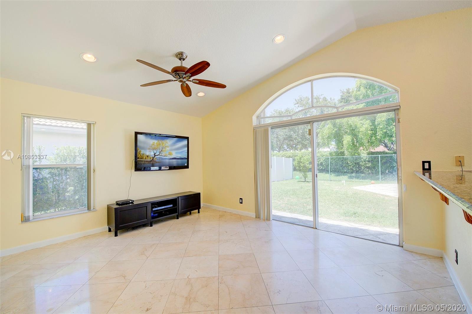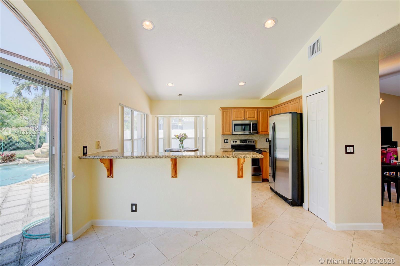 Highly Desirable 3 bedroom/2 bath Home w/Swimming Pool and 2 Car Garage In a Great Neighborhood with Top Schools in Pembroke Shores. Designed As a Split Bedroom Floor Plan w/Vaulted Ceilings, a Formal Living, Dining Area & Family Room. Kitchen is Open to Family Room w/Pool view. Foyer Entry, New Washer/Dryer, Accordions Shutters Protection, Stove Pavers on the Driveway, Walkway. Gated community w/Security, low association fee $154/month includes the Comcast Cable. 1854 sq ft adjusted & 1621 sq ft living area. Easy to show, make your appointment today.